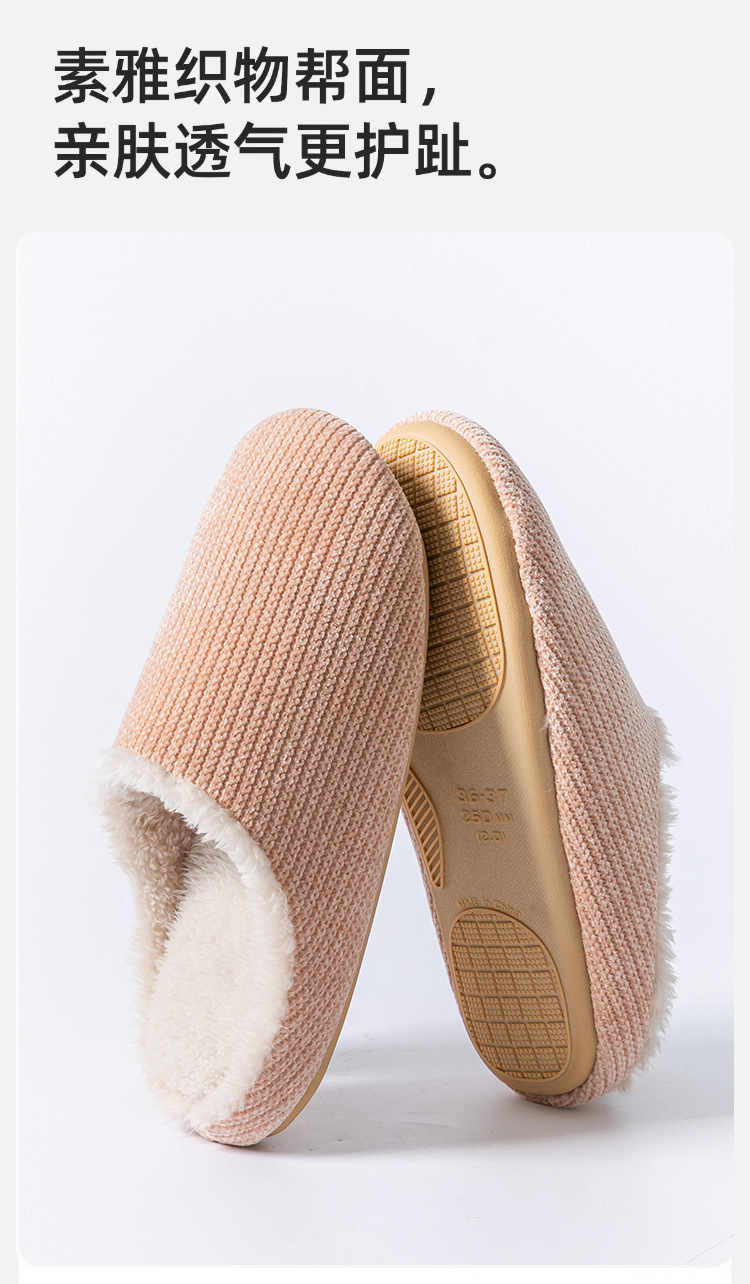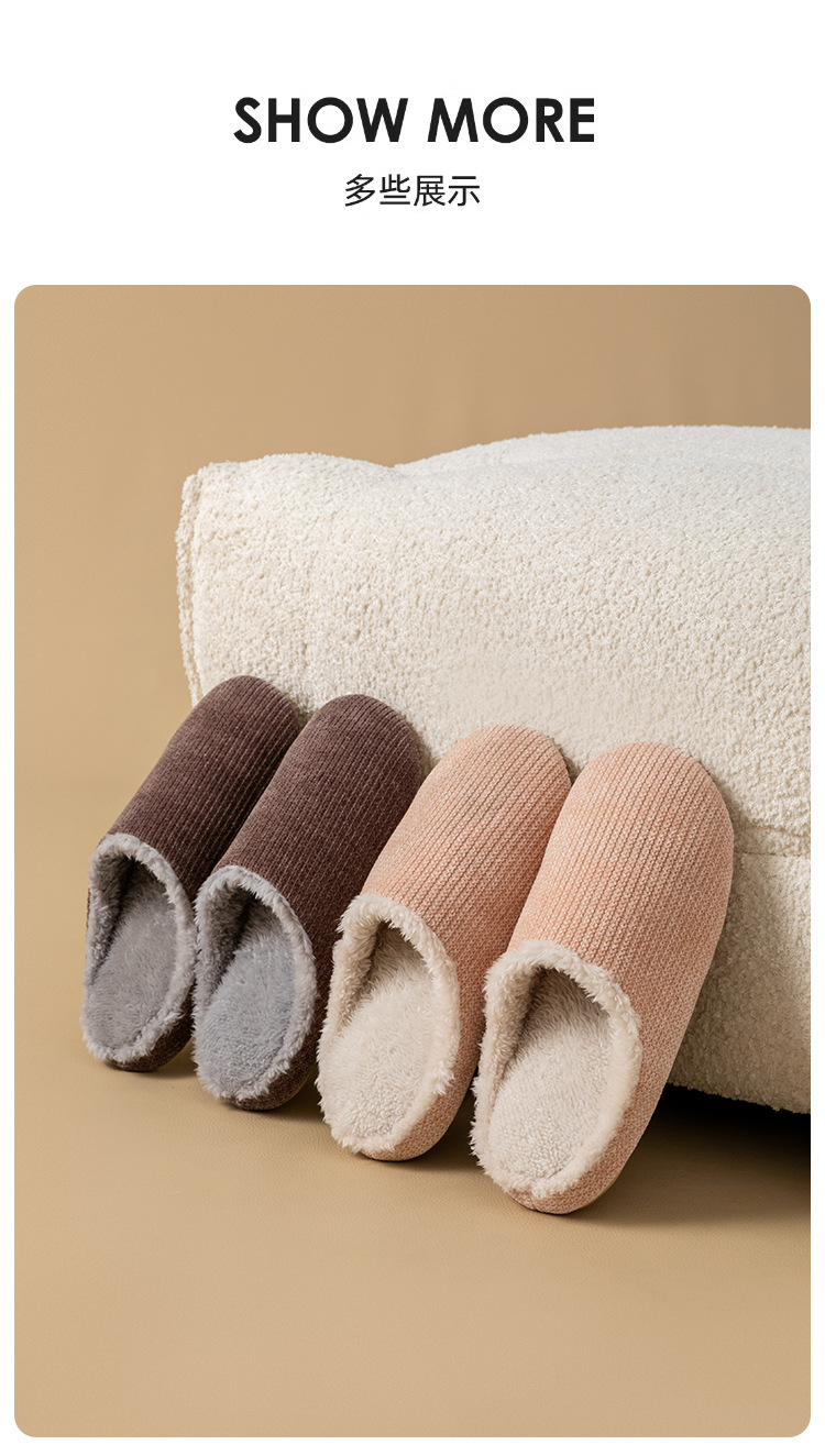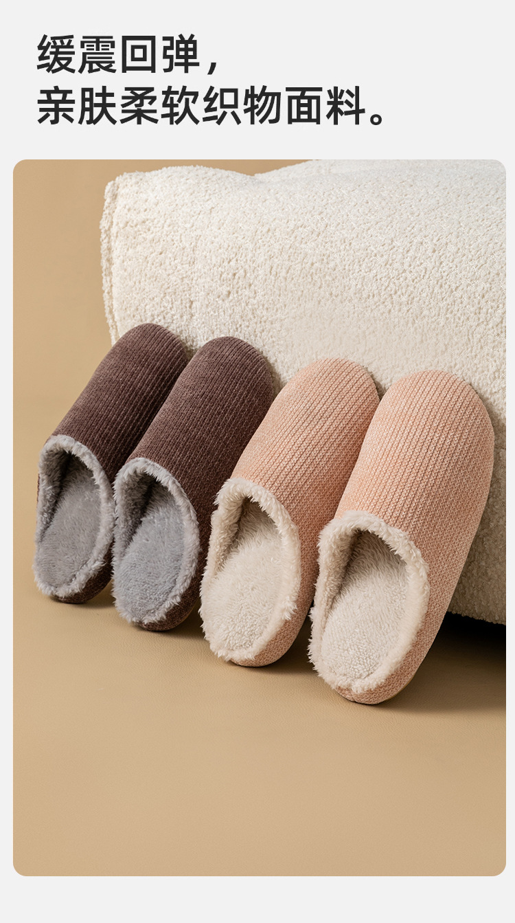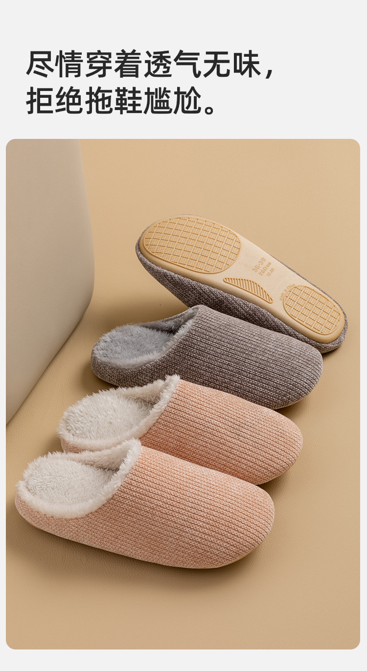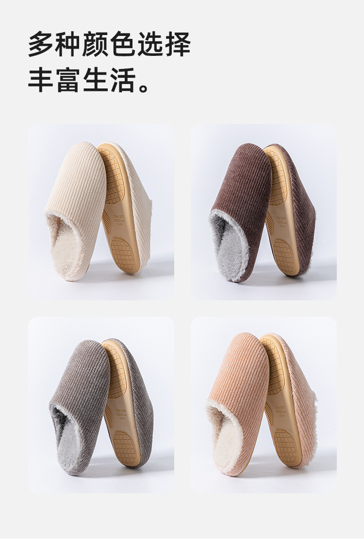 新款秋冬加绒保暖毛绒防水底静音居家室内地板男女无声情侣棉拖鞋