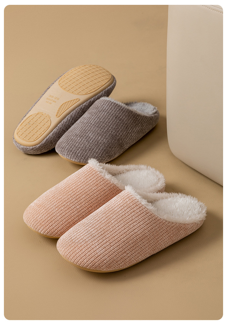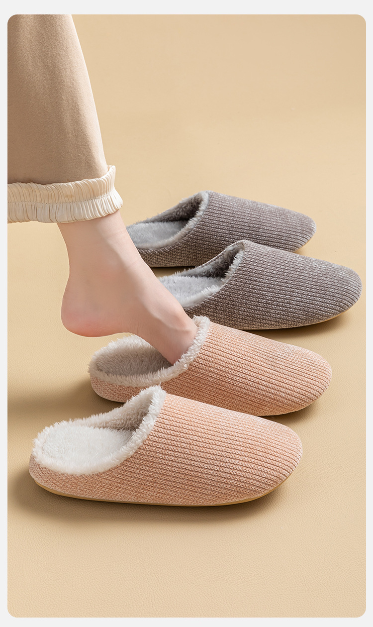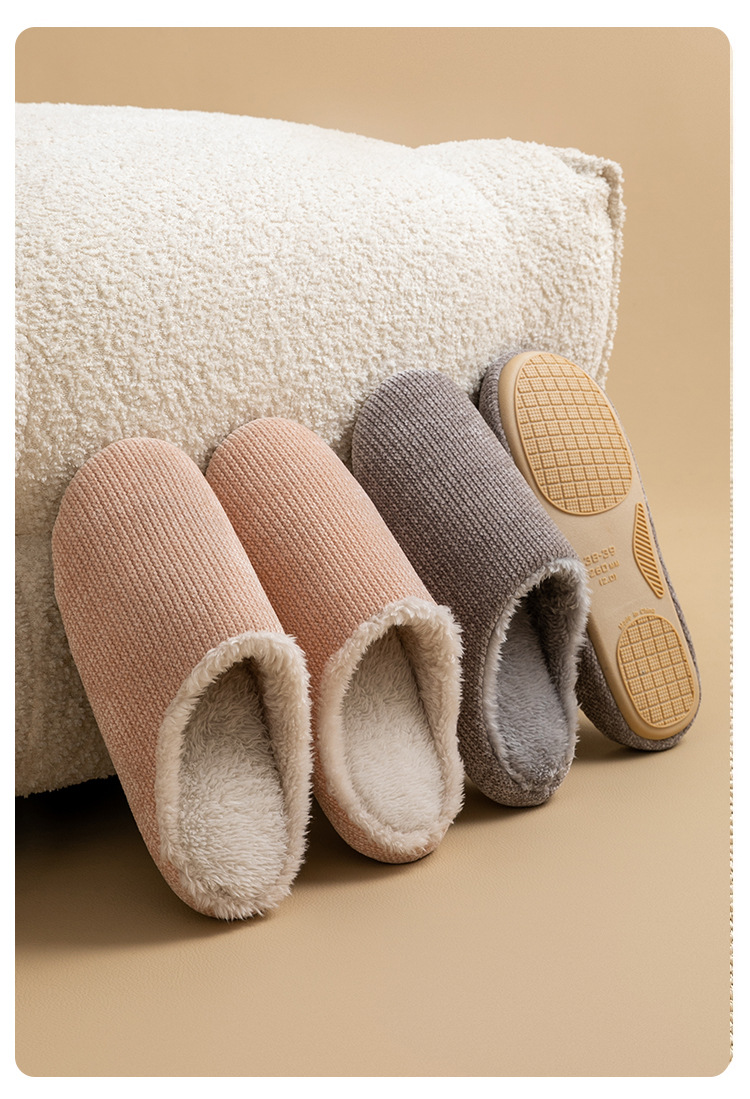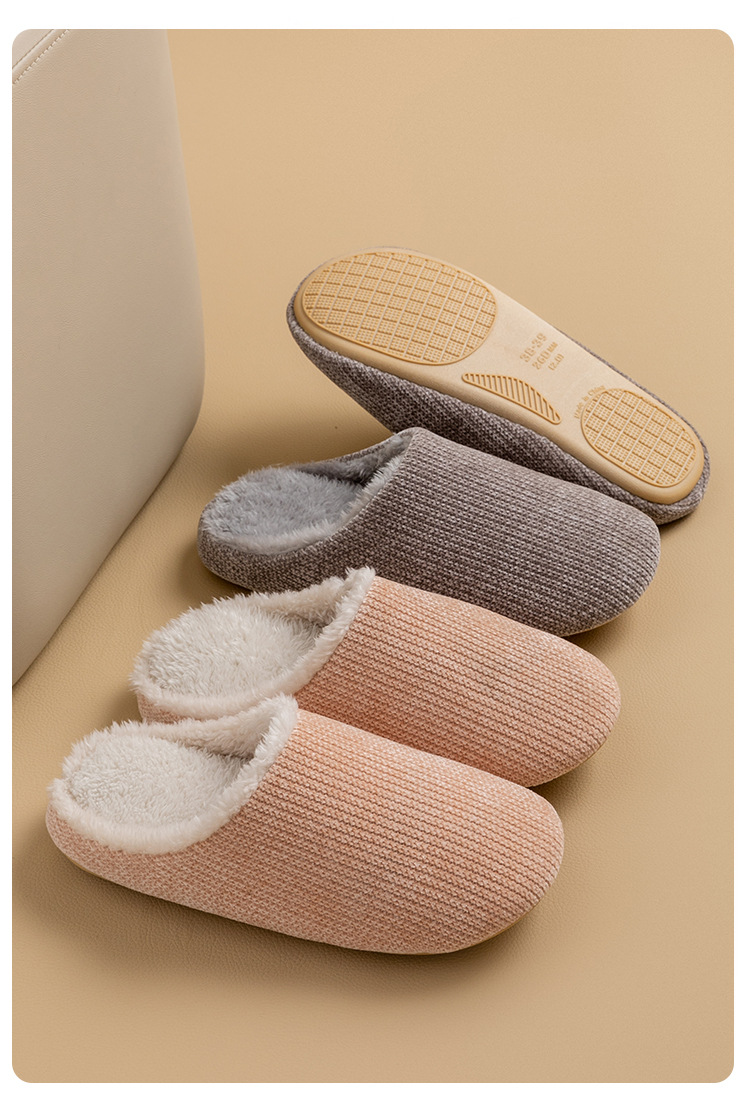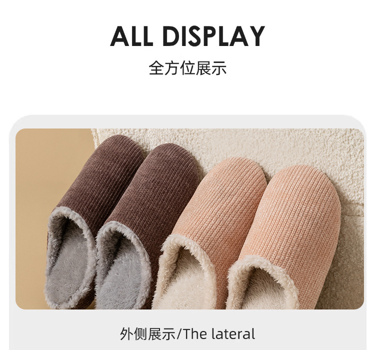 新款秋冬加绒保暖毛绒防水底静音居家室内地板男女无声情侣棉拖鞋