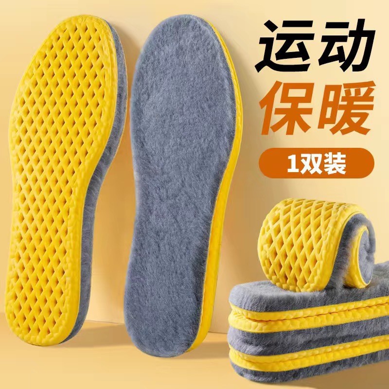 鞋垫冬季加厚男加绒保暖鞋垫软底不累脚吸汗毛毡鞋垫羊驼绒棉鞋垫