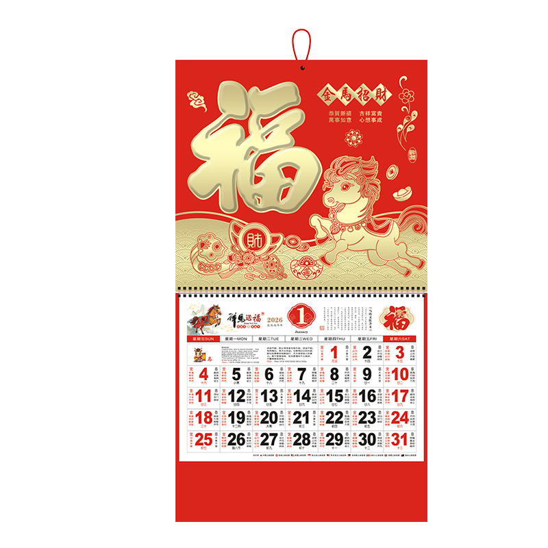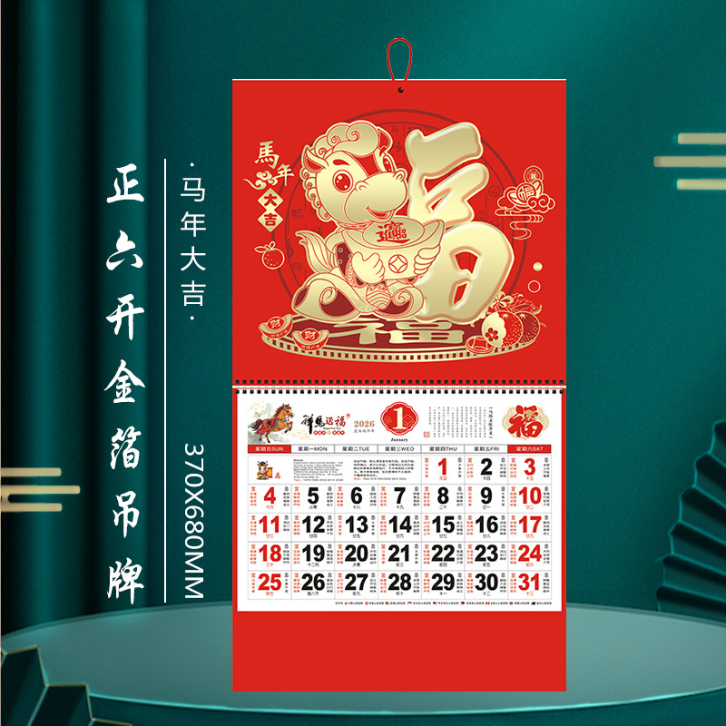 2026年日历马年广告福字挂历定购手撕金箔月历吊牌批发厂家直供
