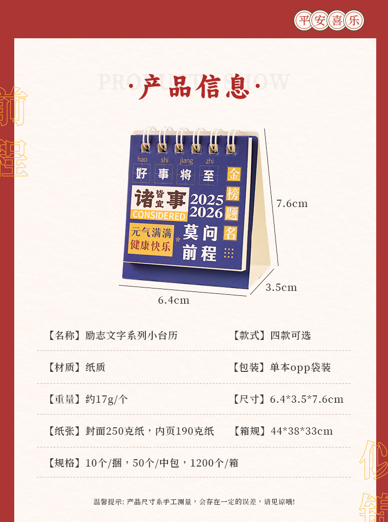 2026年励志文字台历创意日历桌面摆件计划本迷你便携小台历批发