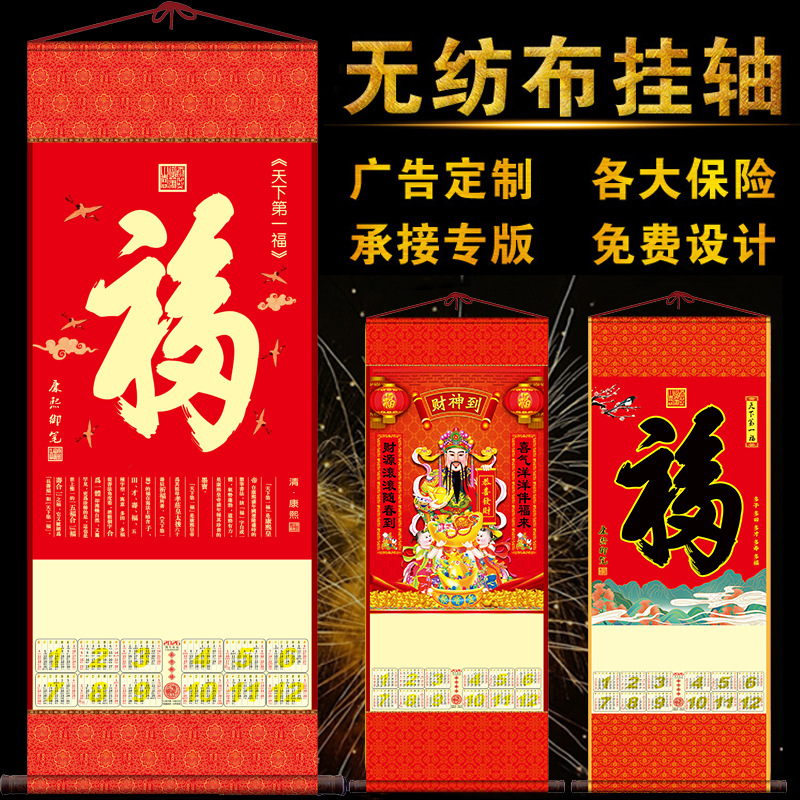 无纺布挂历保险大号单张福字挂轴2026马年月历卷轴制作保险专版