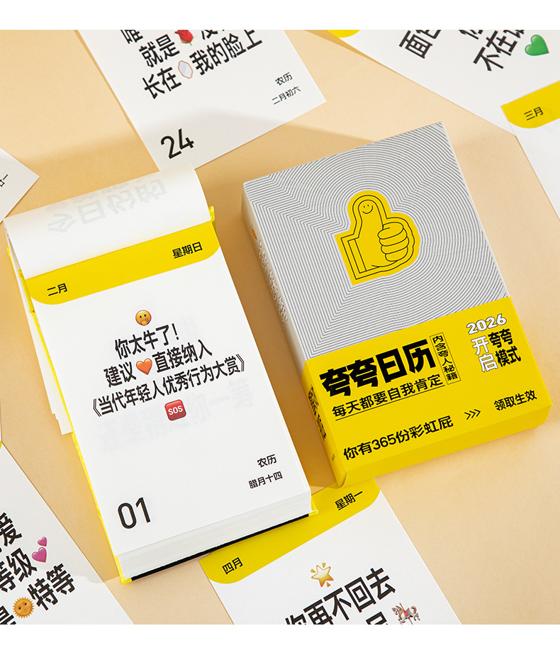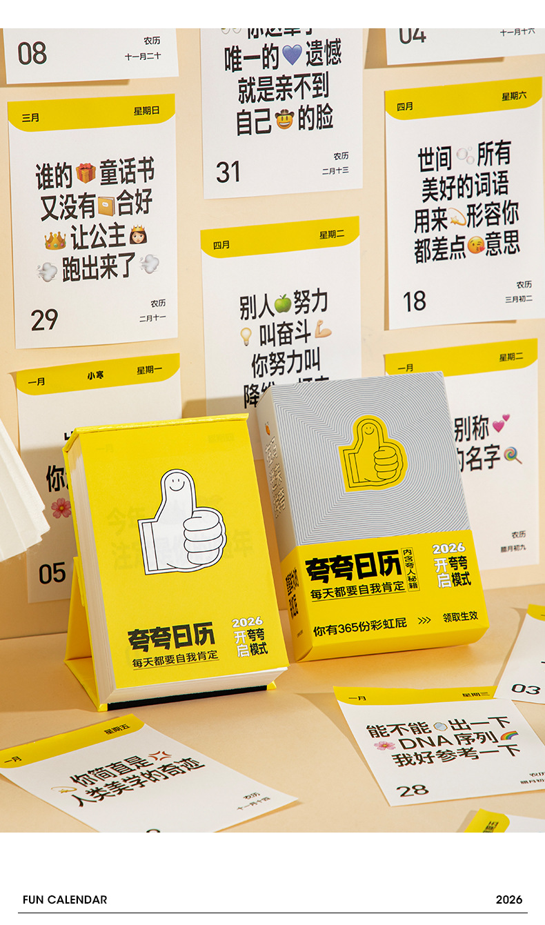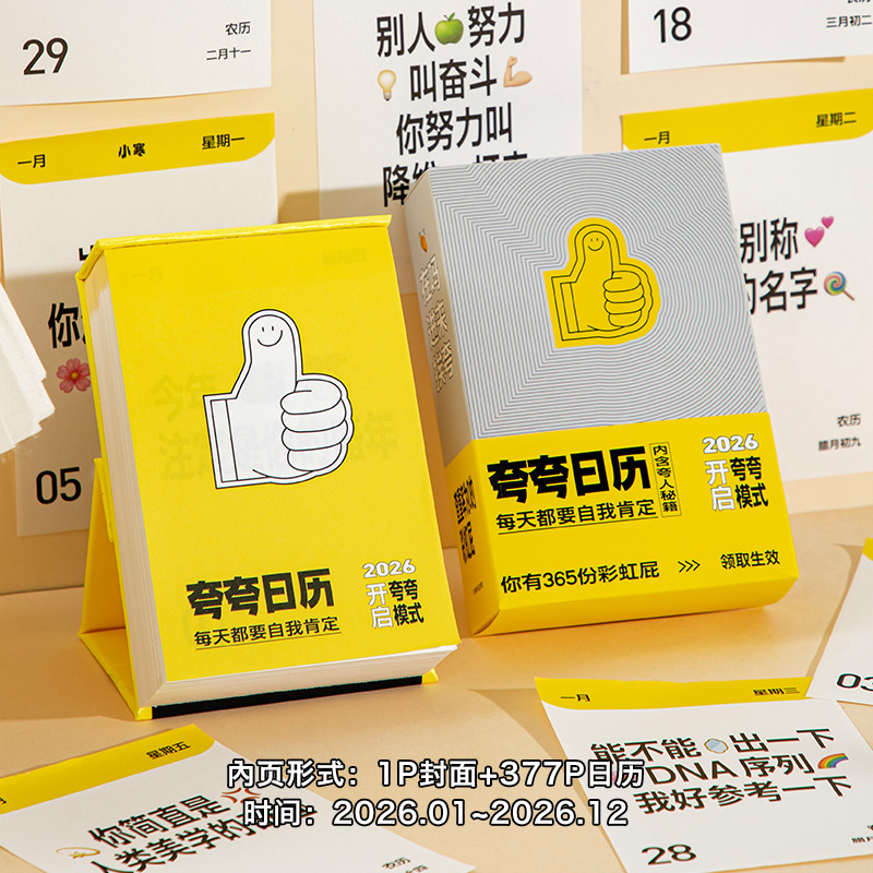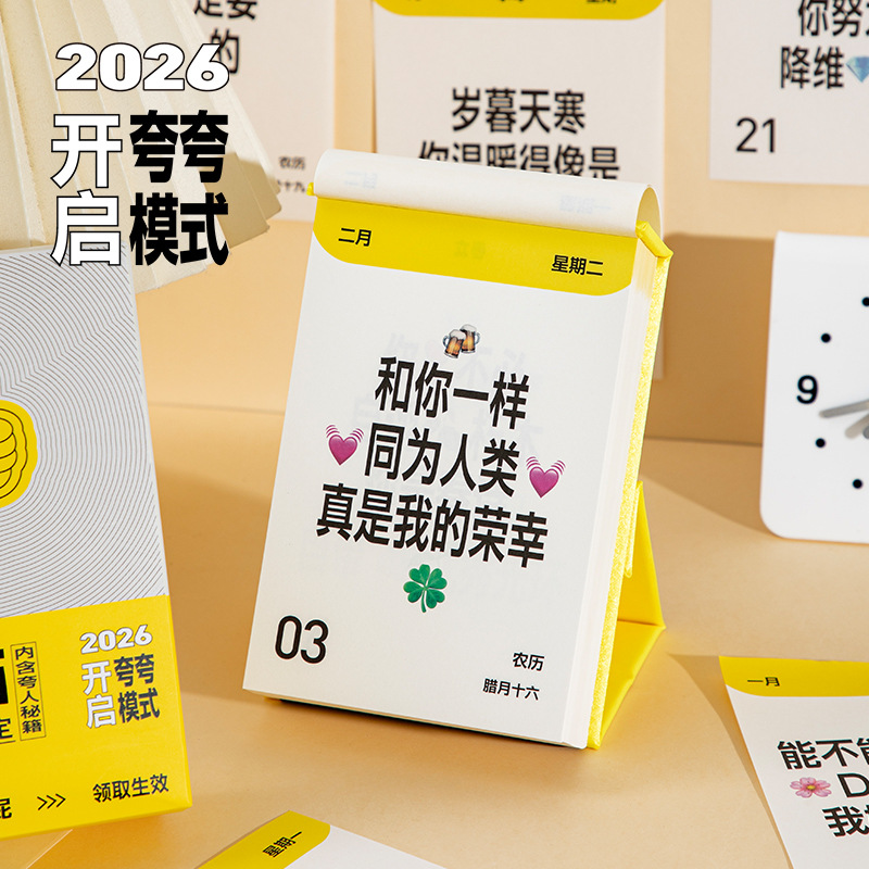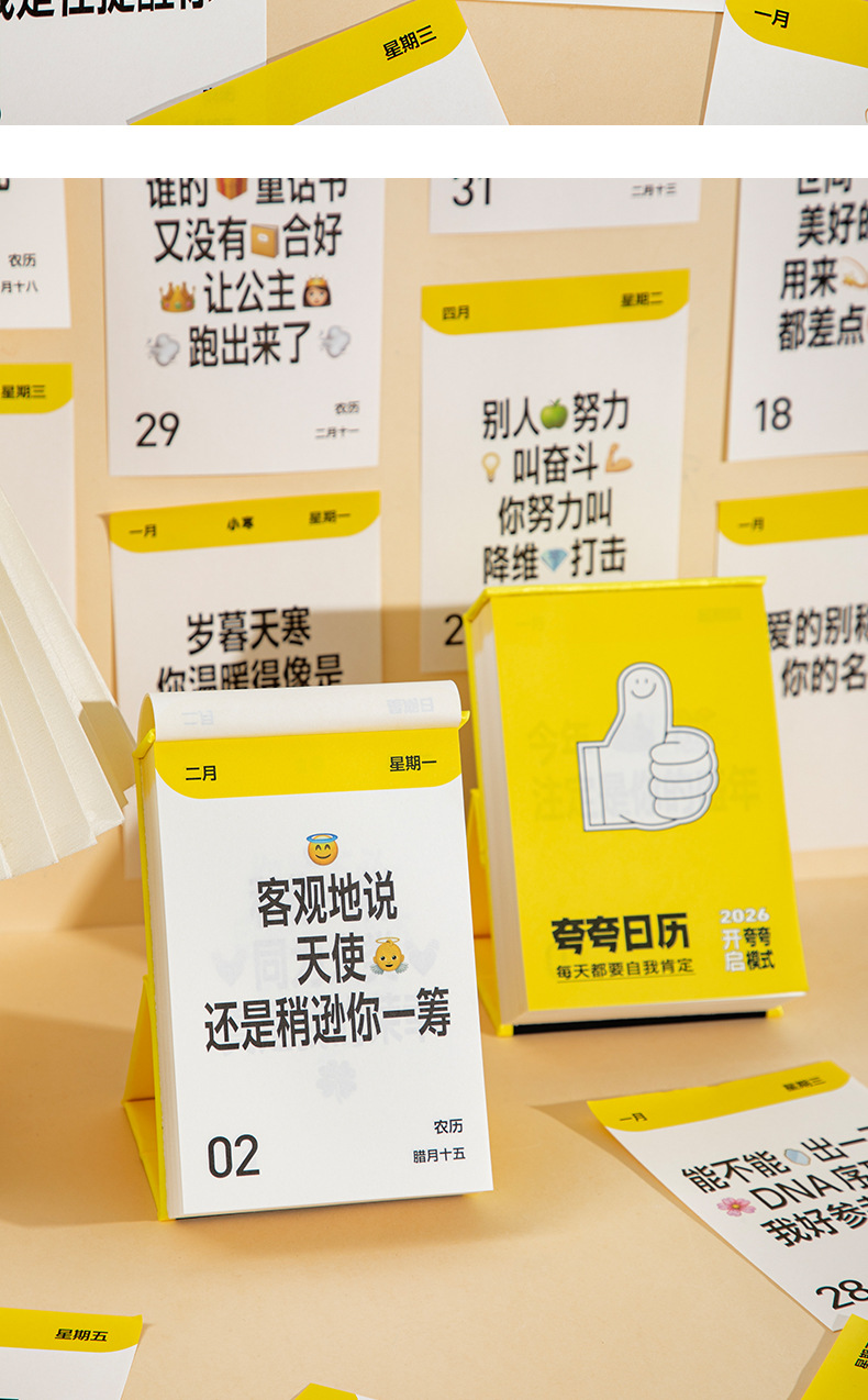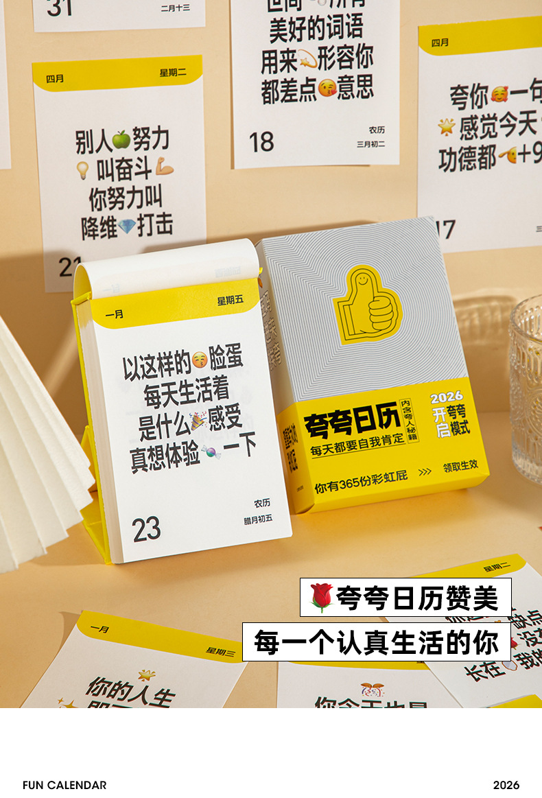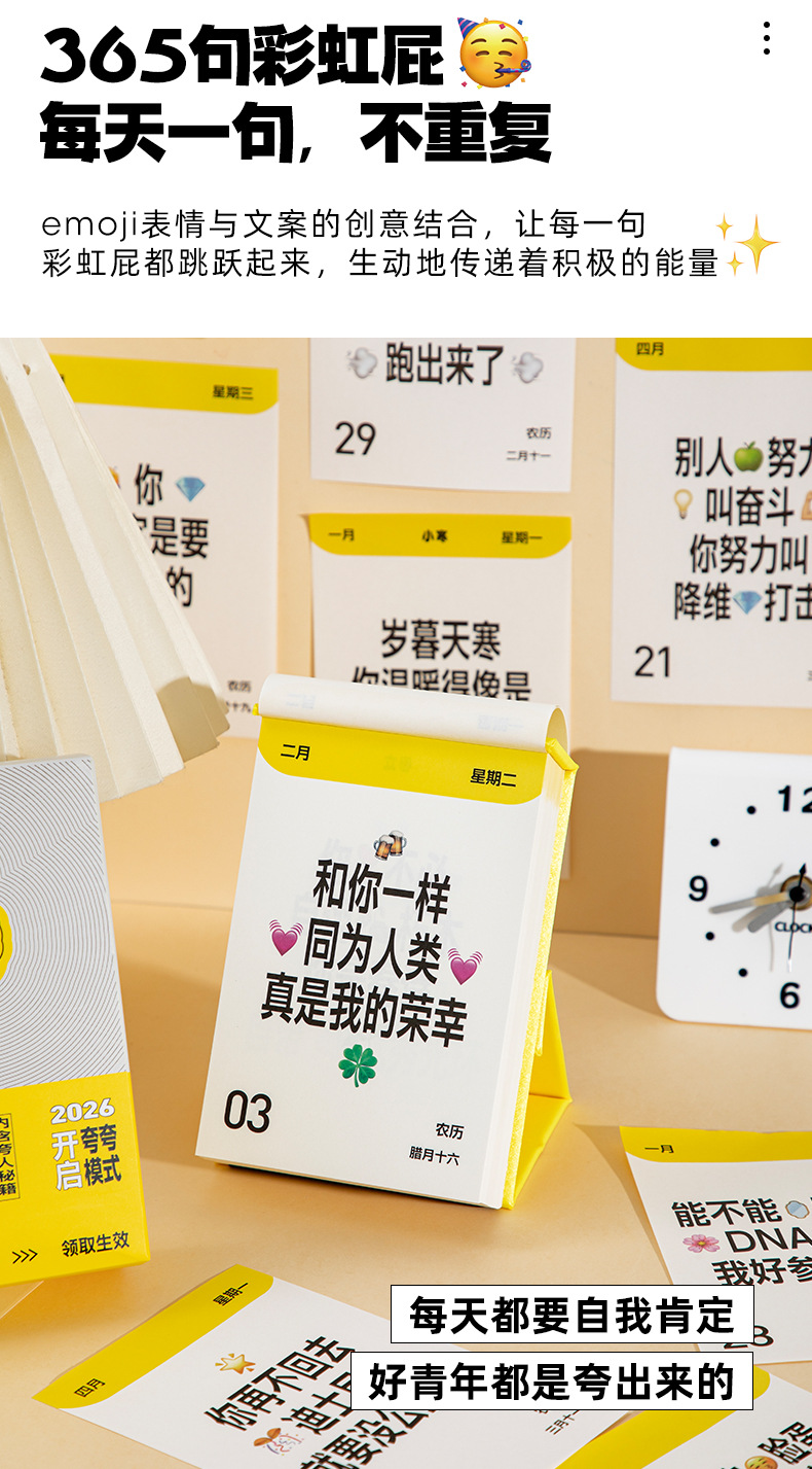 青禾纪原创夸夸日历2026新款简约彩虹屁台历高颜值办公室桌面摆件