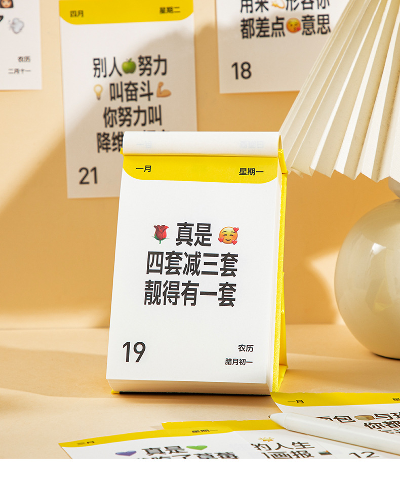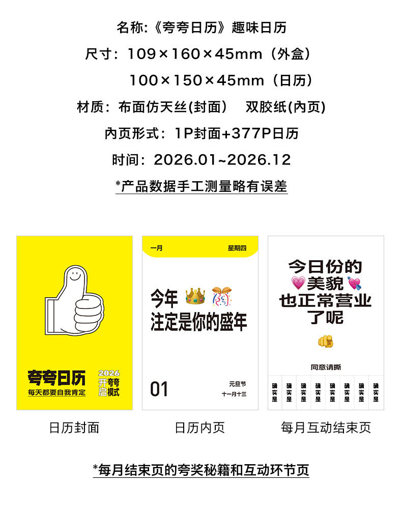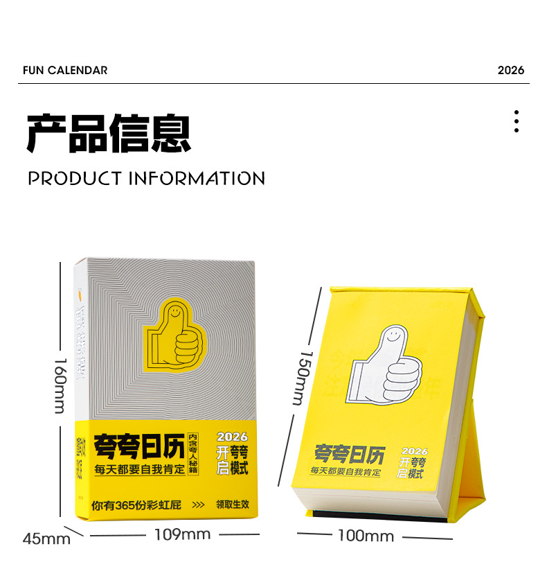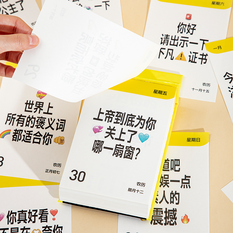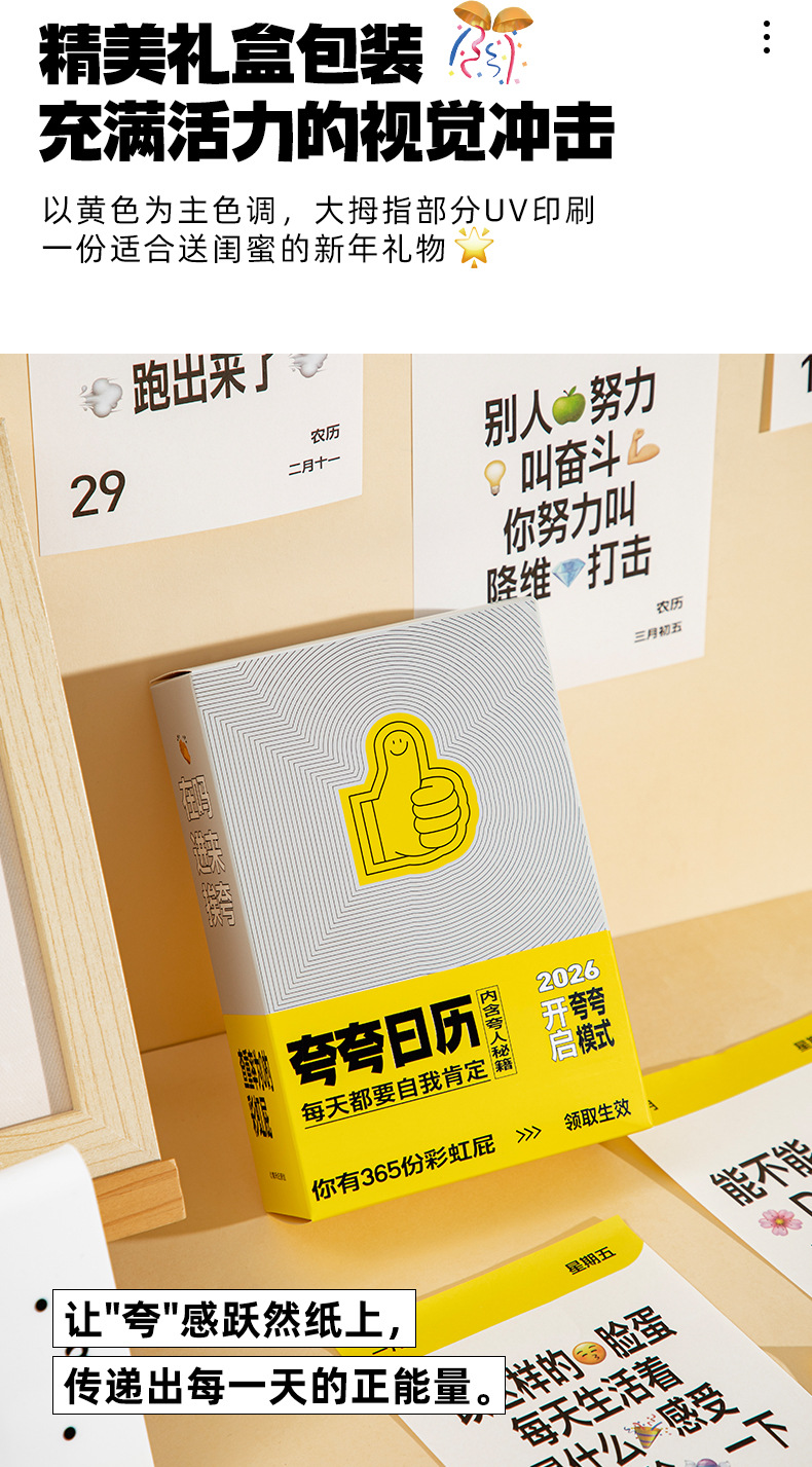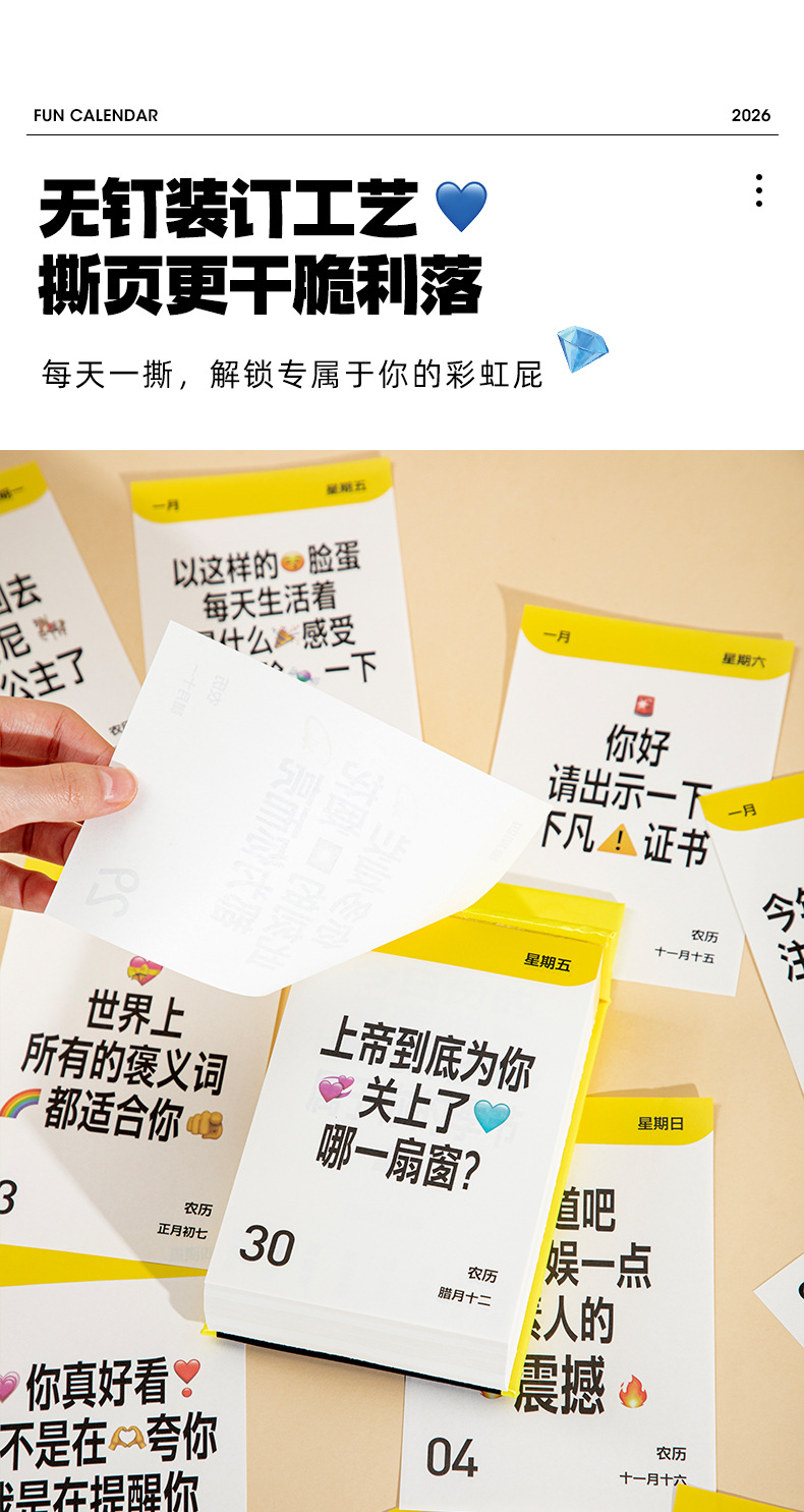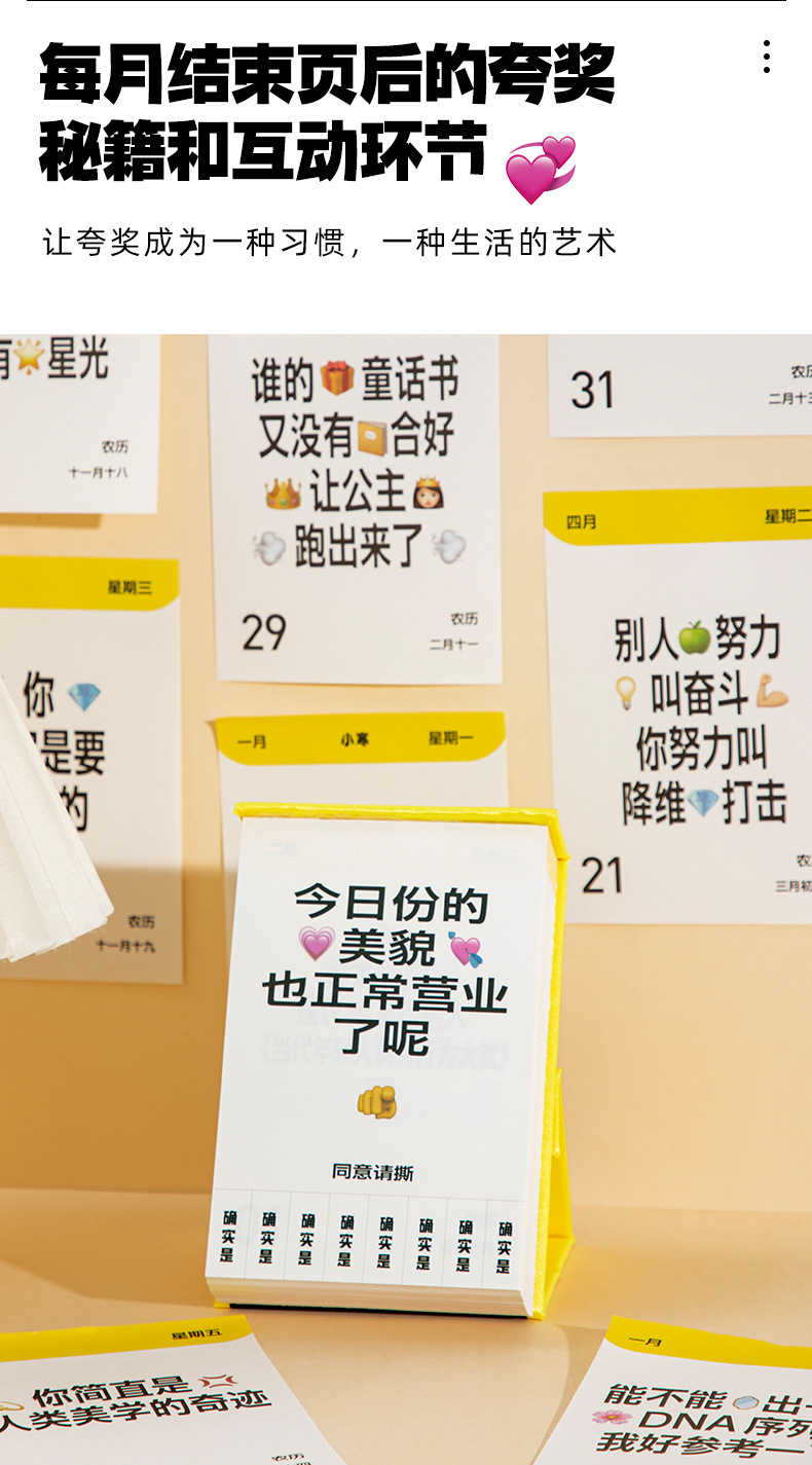 青禾纪原创夸夸日历2026新款简约彩虹屁台历高颜值办公室桌面摆件