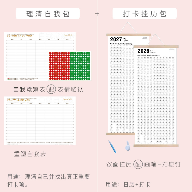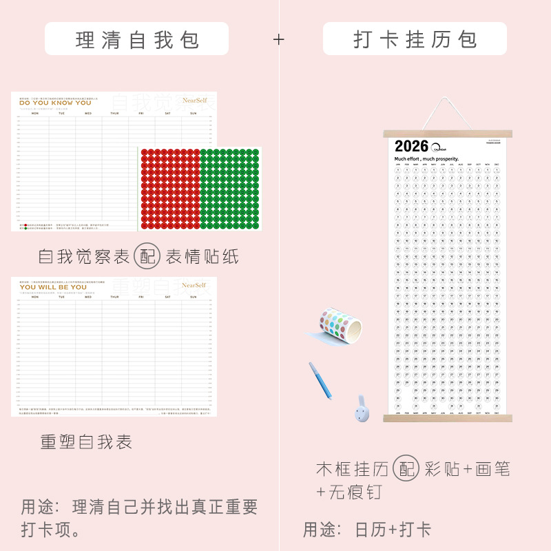 2026年新款日历自律打卡挂历创意简约木质日历ins风日历周历日程