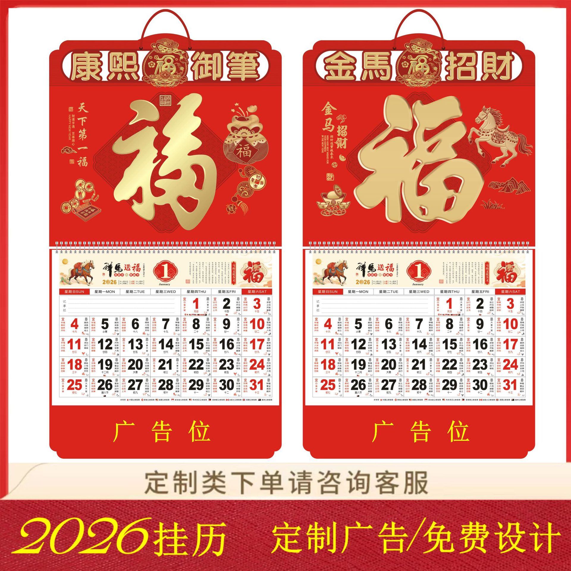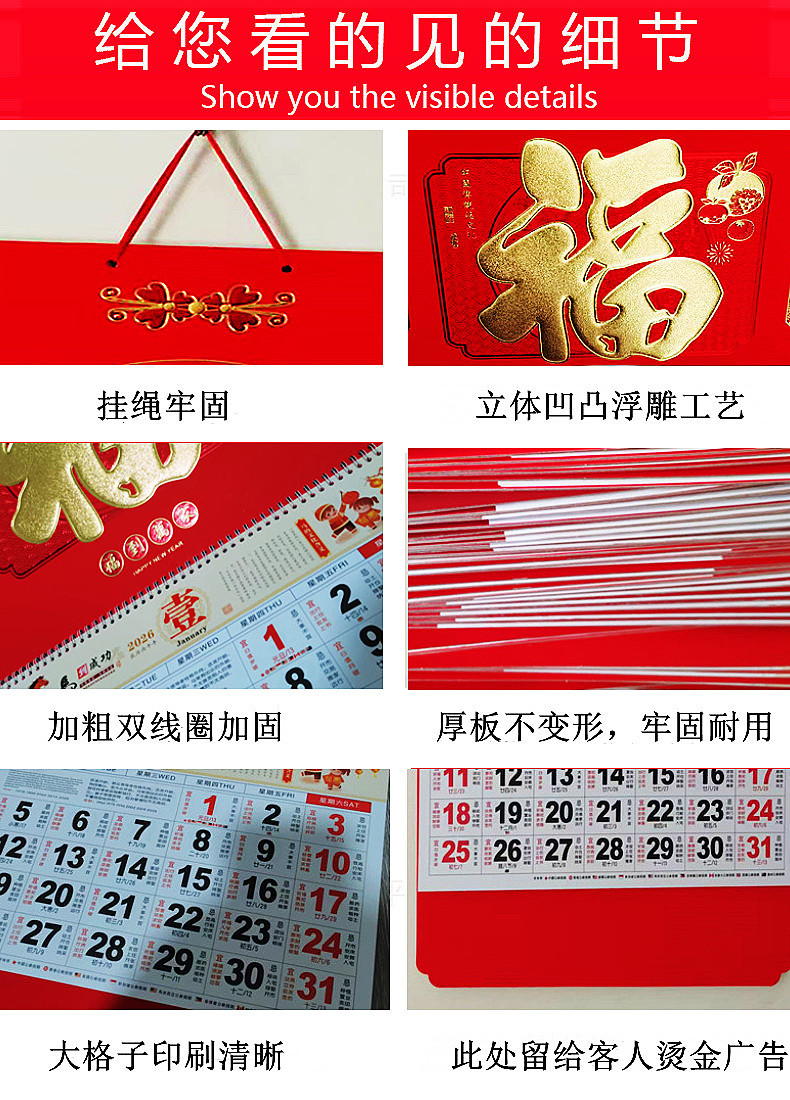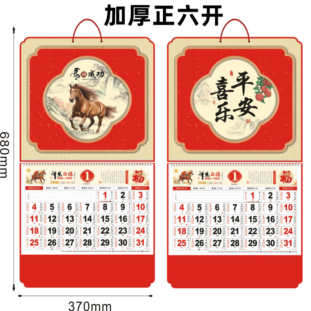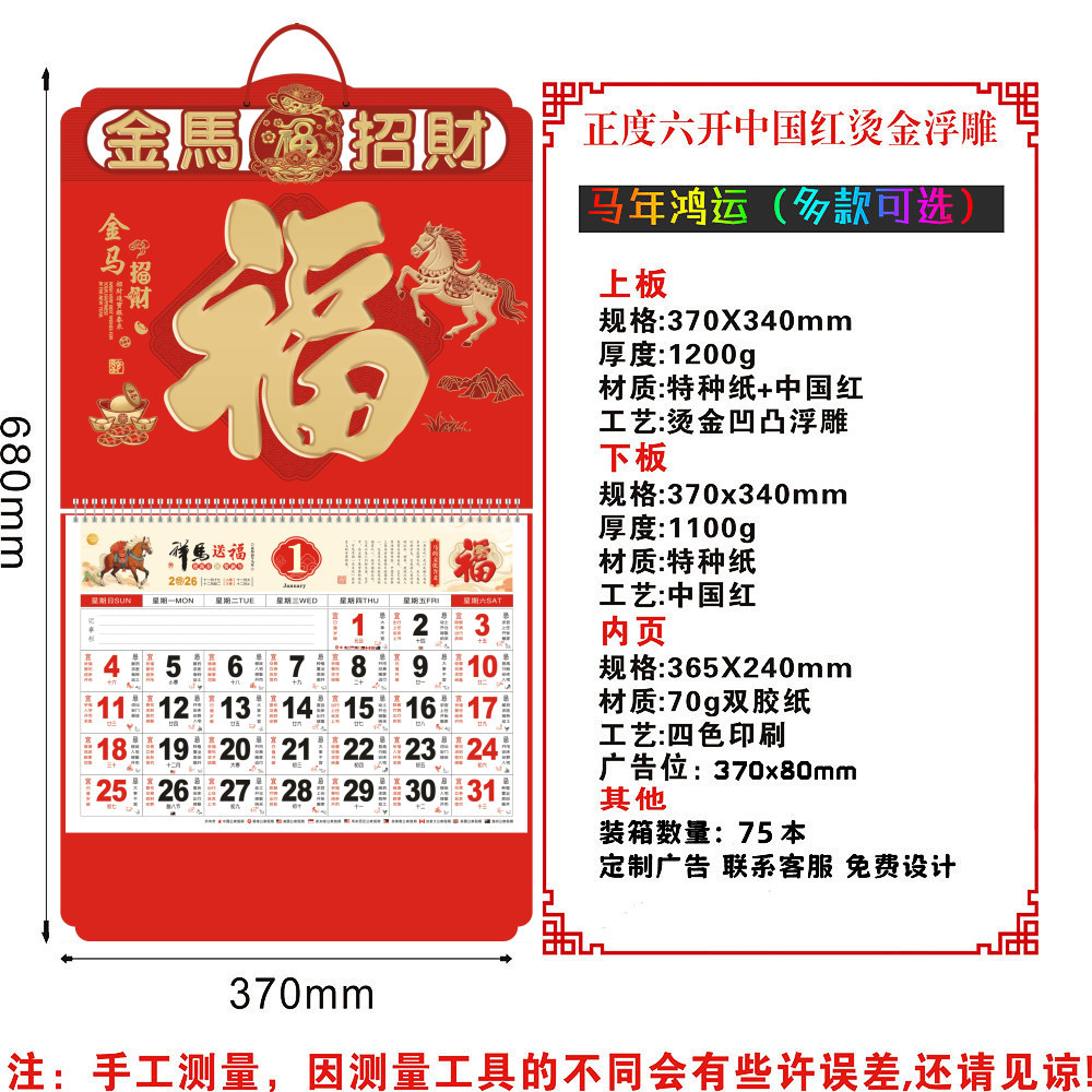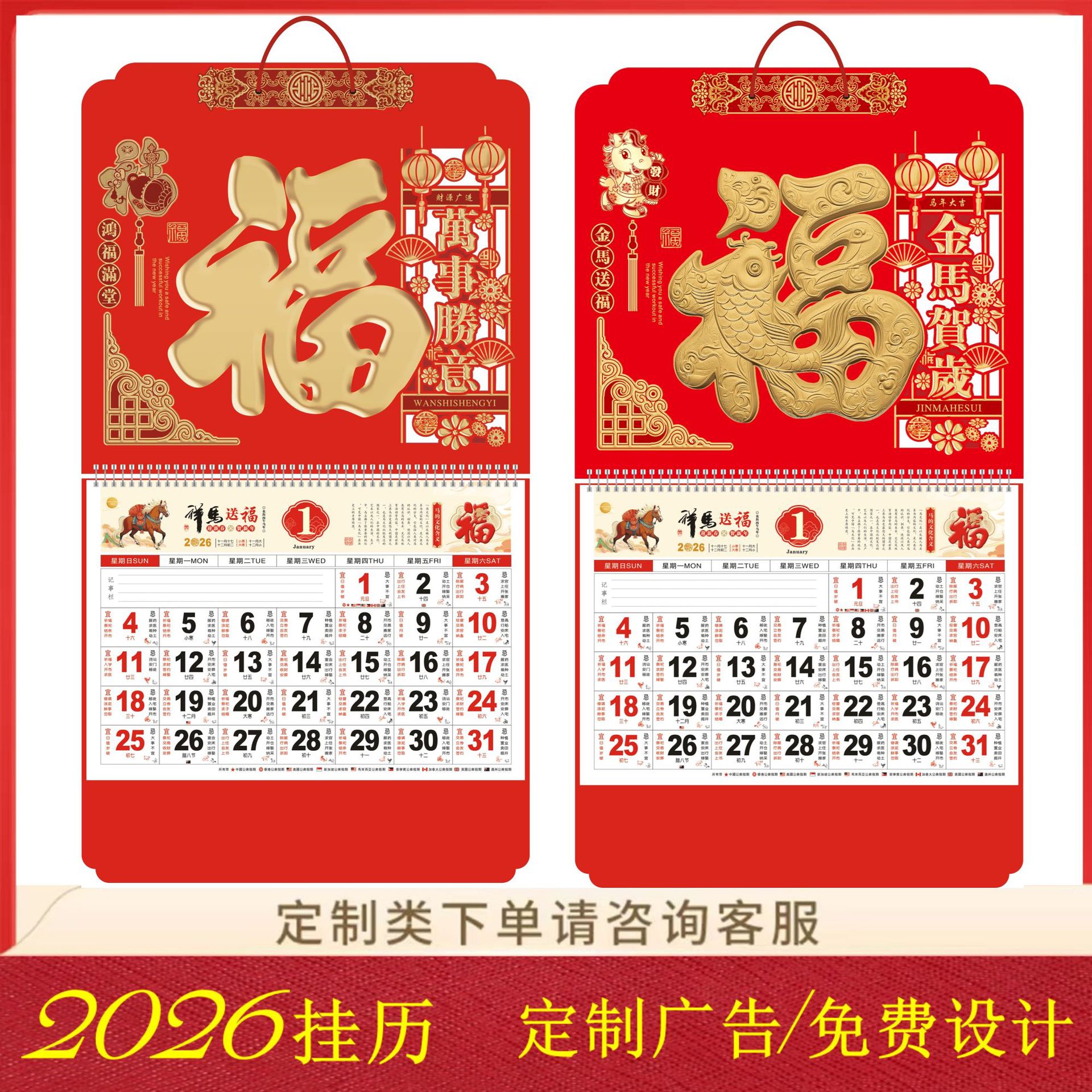 挂历 2026年加厚正六开中国红浮雕镂空挂历定制大药房挂历手撕月