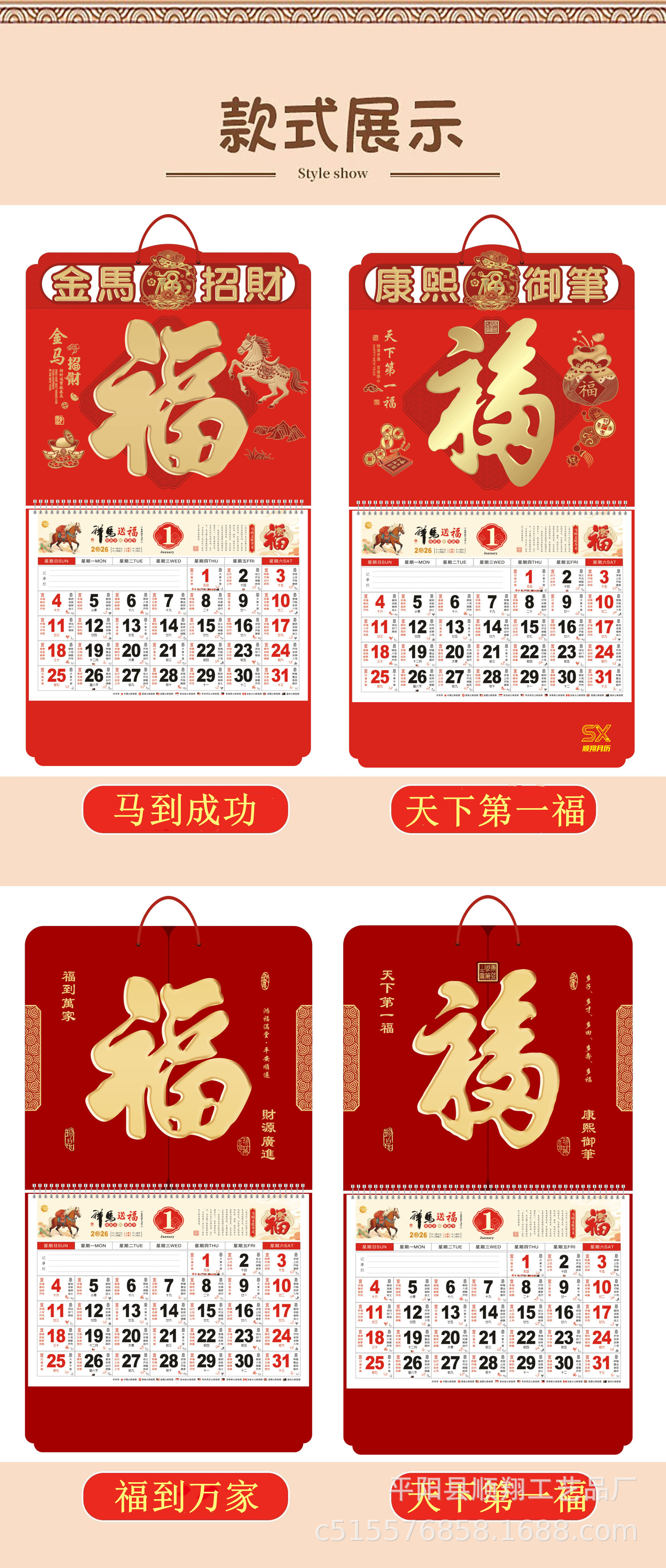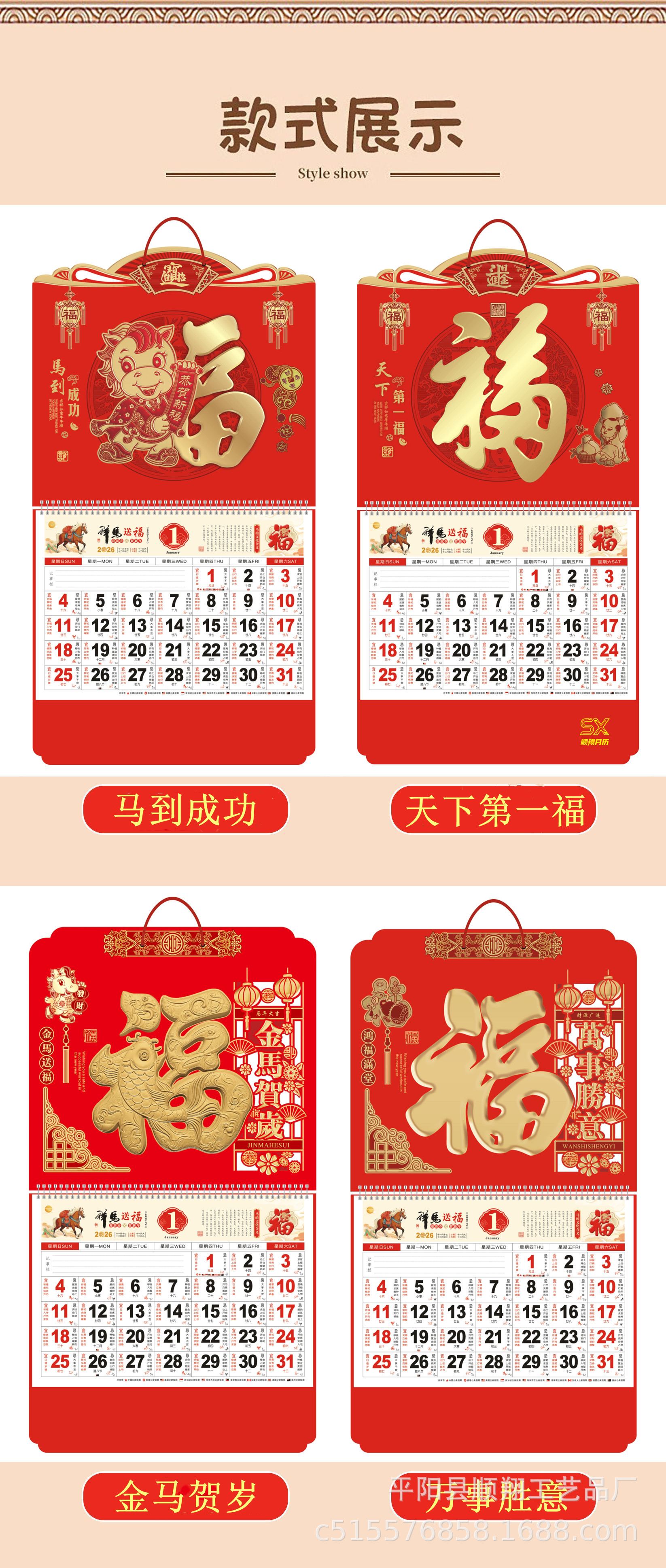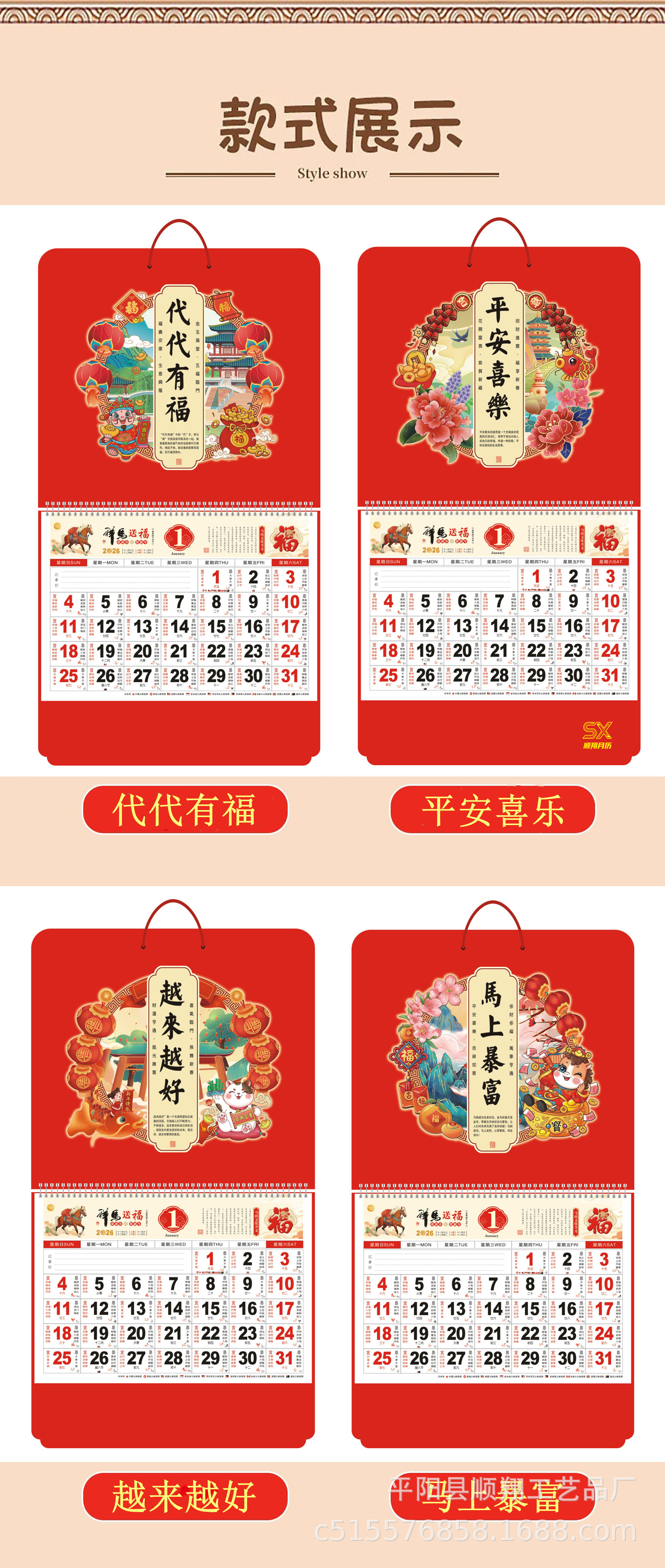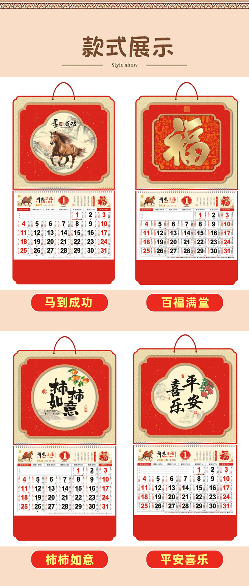 挂历 2026年加厚正六开中国红浮雕镂空挂历定制大药房挂历手撕月