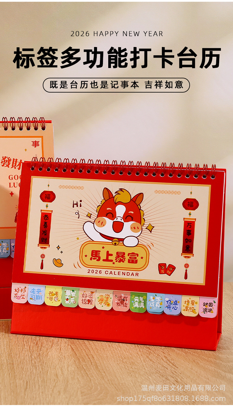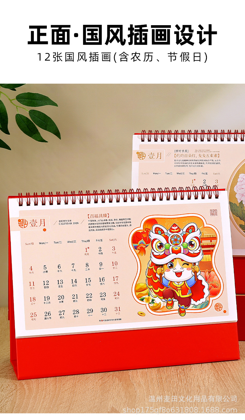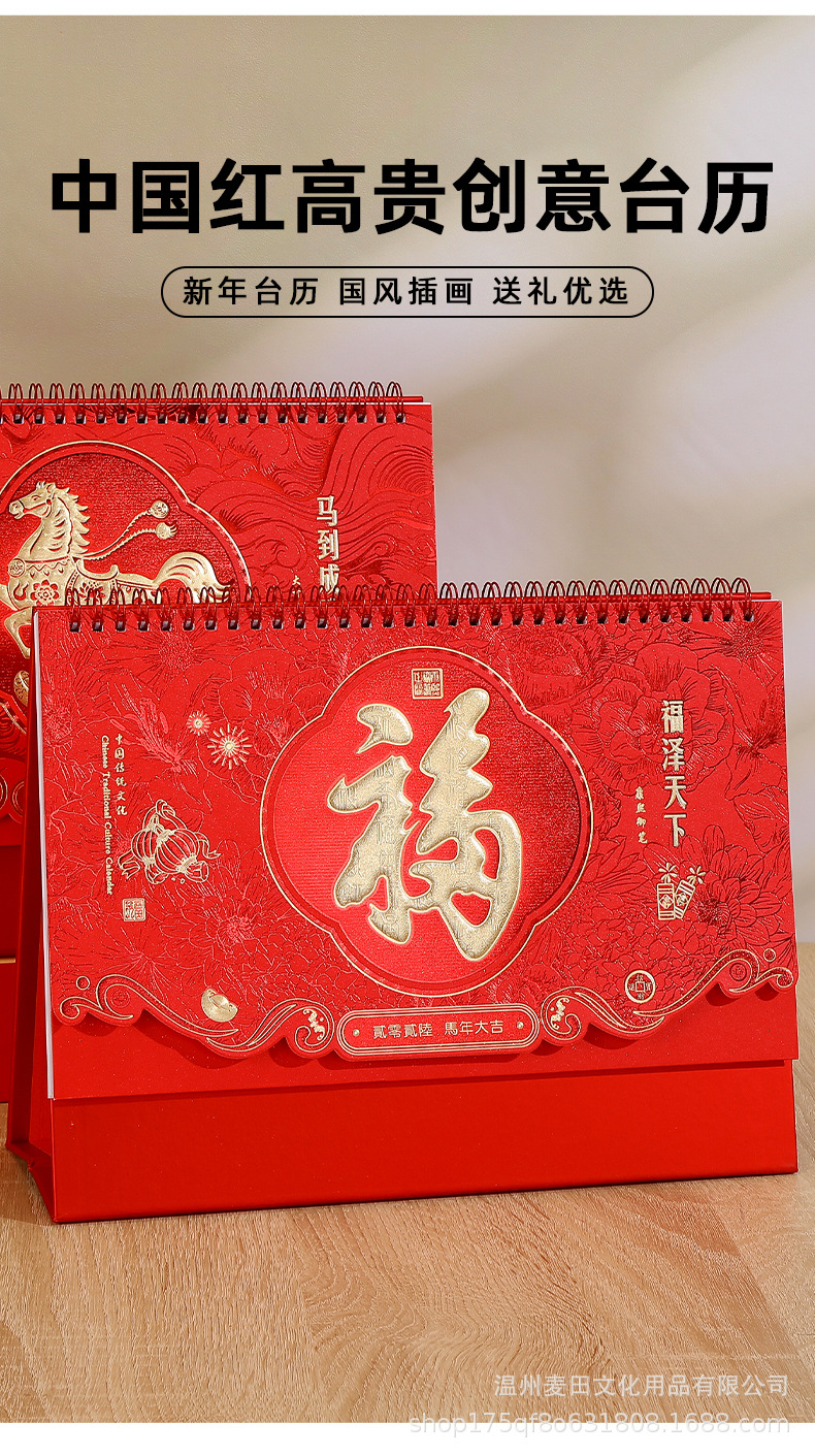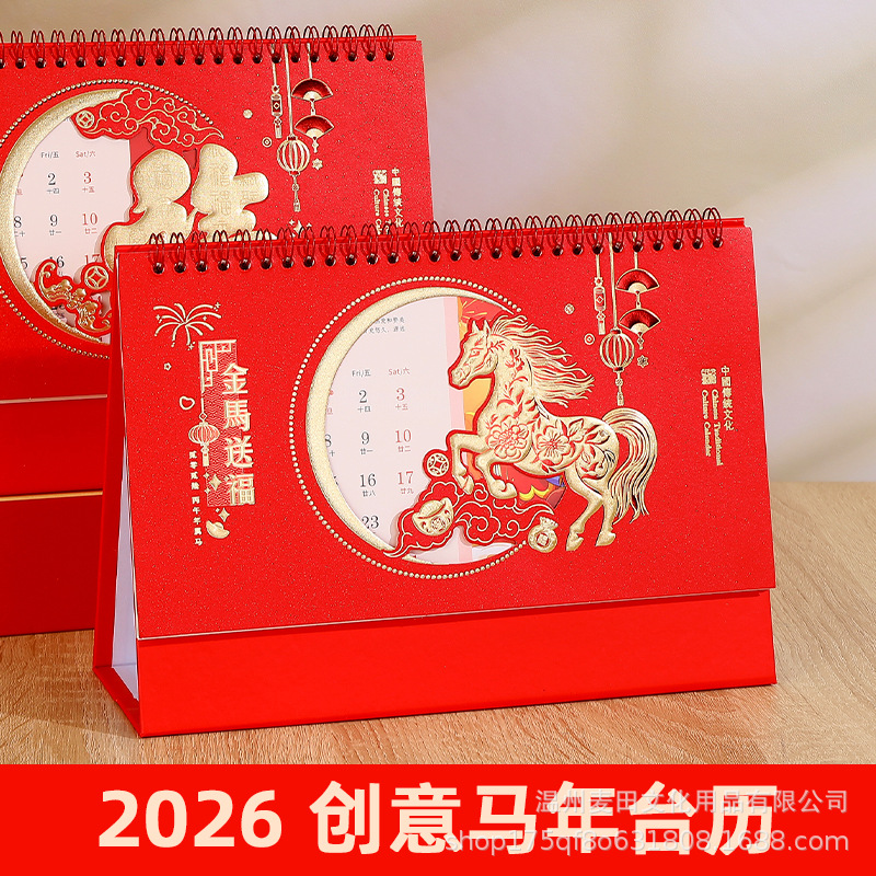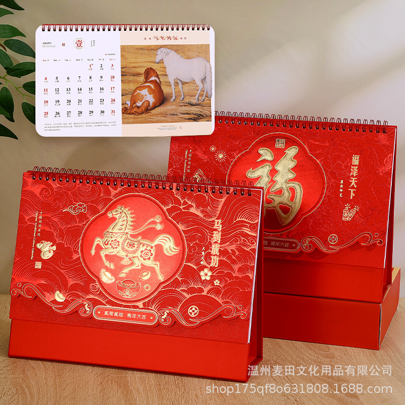 2026新款马年国风台历定制企业新年礼品日历礼盒套装桌面摆件月历