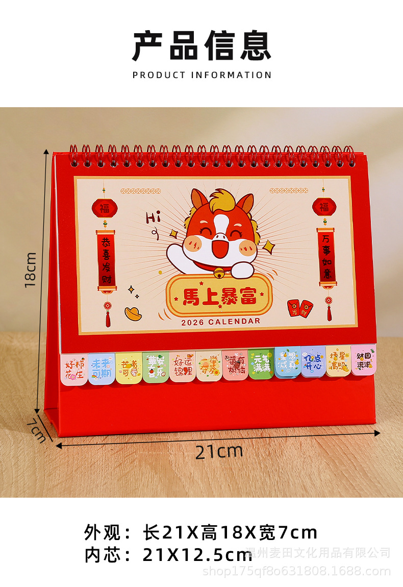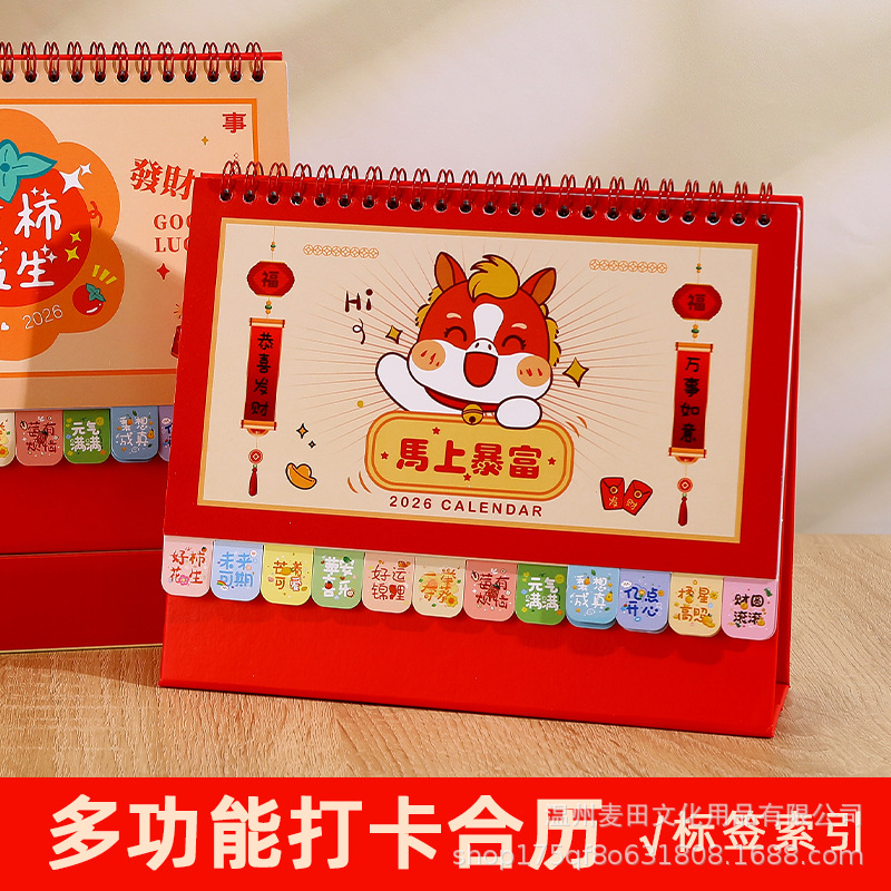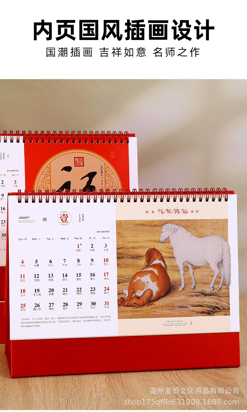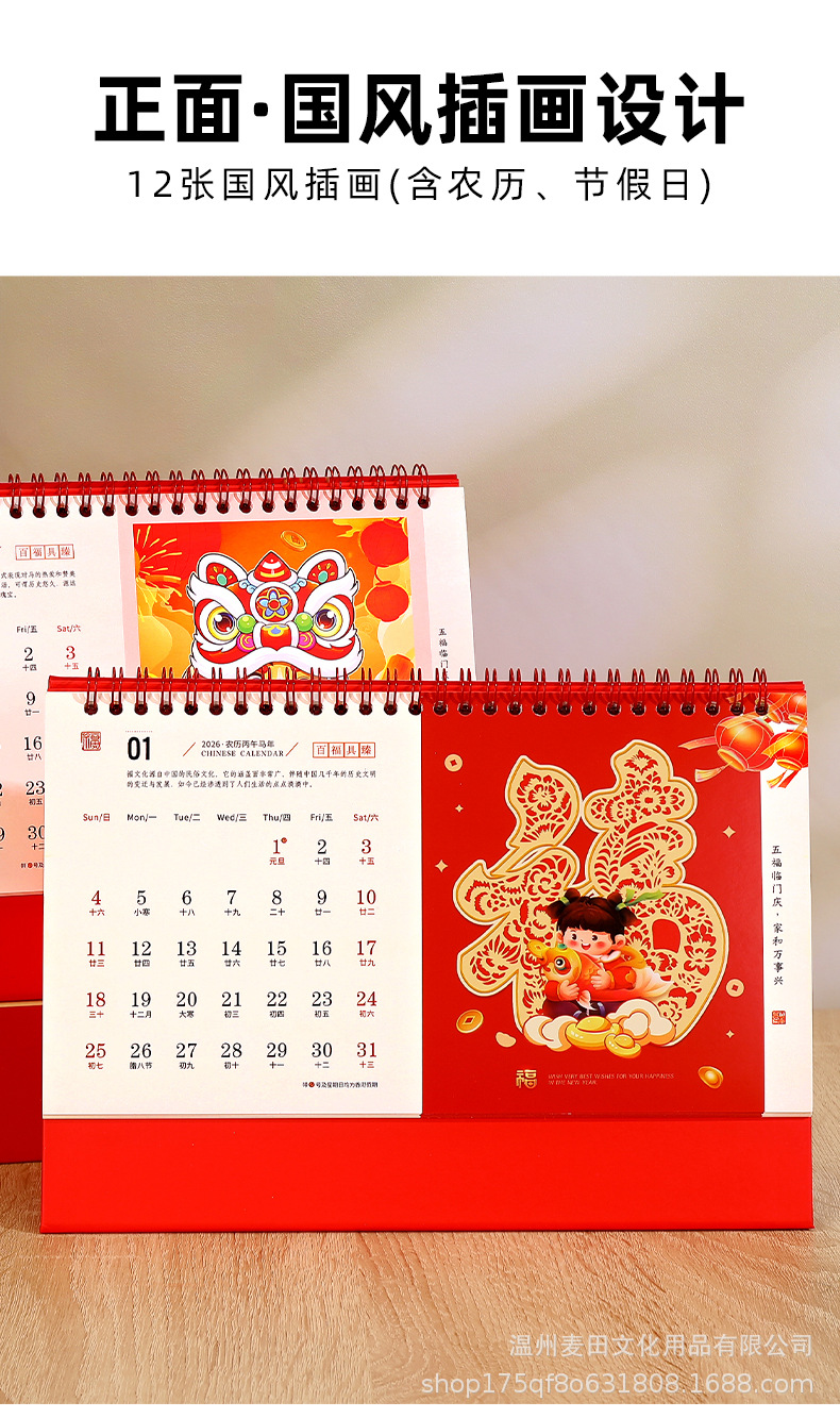 2026新款马年国风台历定制企业新年礼品日历礼盒套装桌面摆件月历