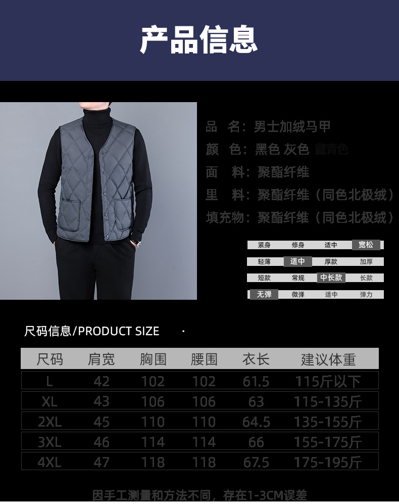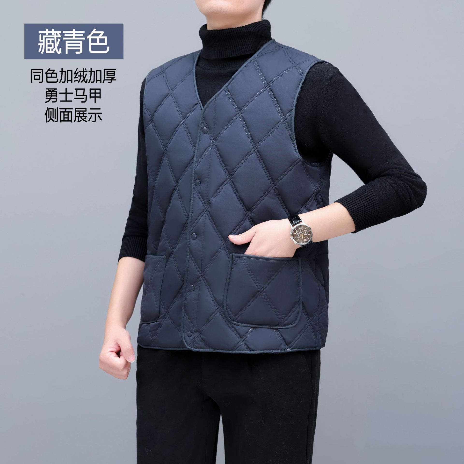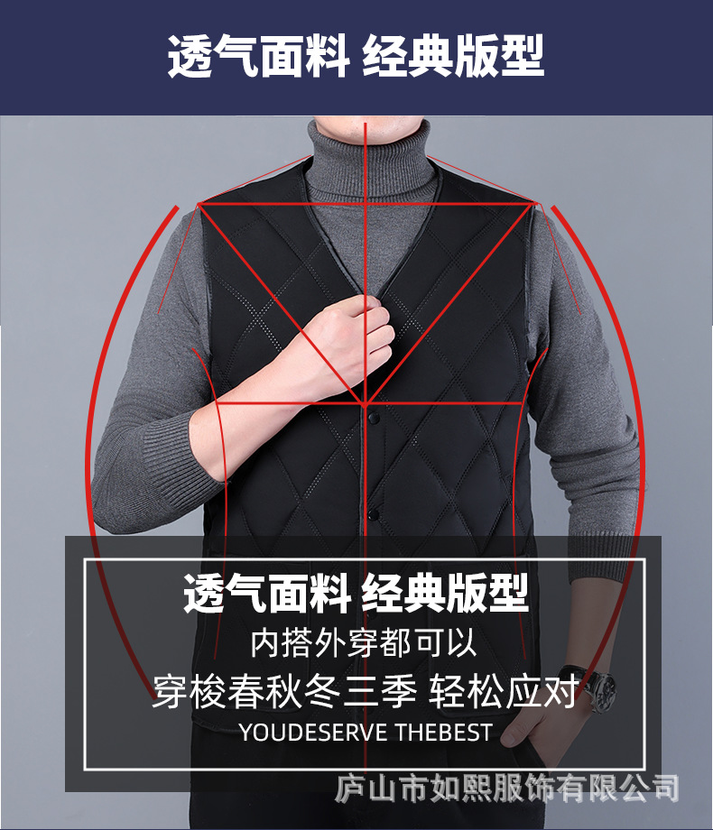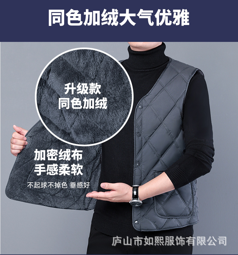 中年男士爸爸装棉马甲加绒背心坎肩V领马夹商务加厚百搭