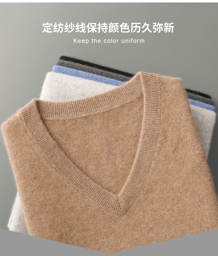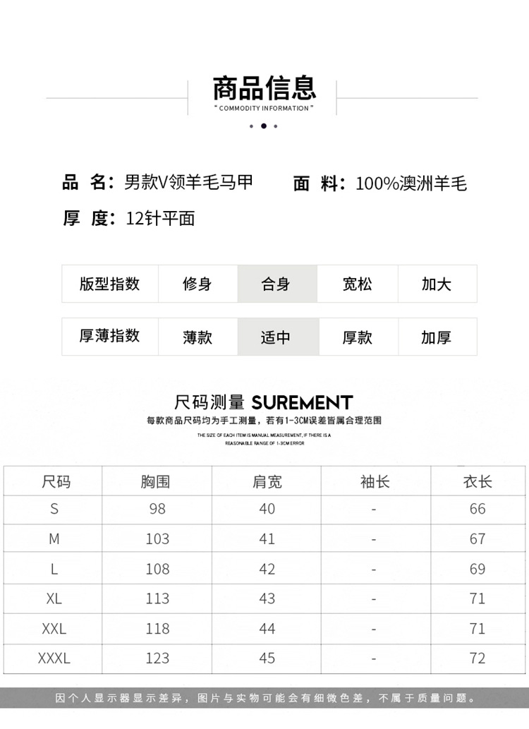秋冬新款100羊毛男士针织马甲高端外搭叠穿无袖毛衣坎肩保暖背心