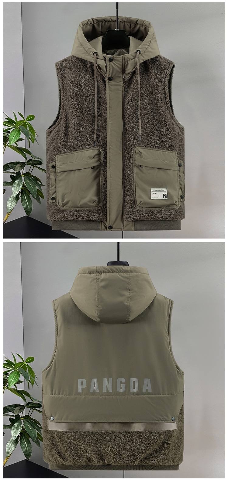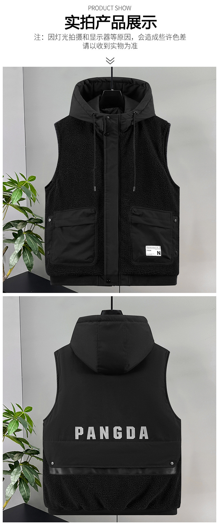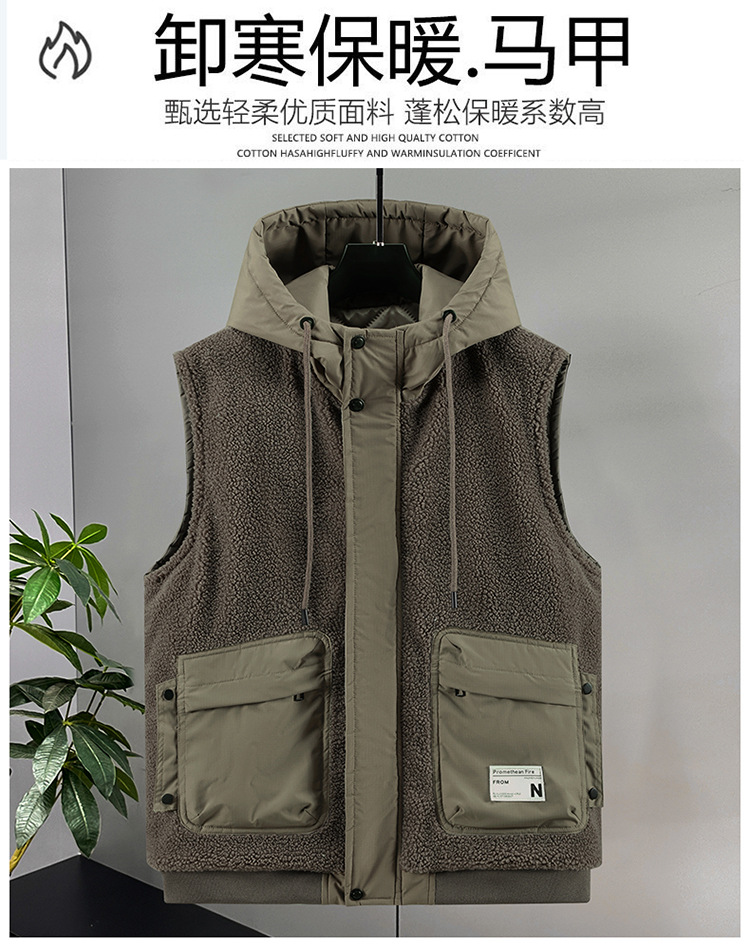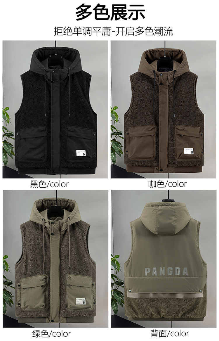 颗粒绒新款羊羔绒马甲男冬季工装连帽坎肩韩版潮流百搭保暖背心潮
