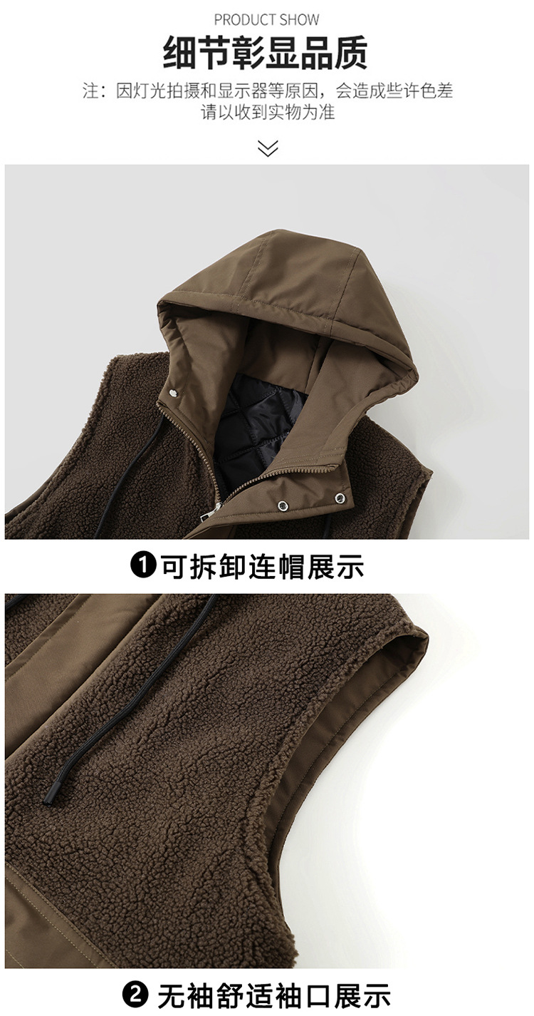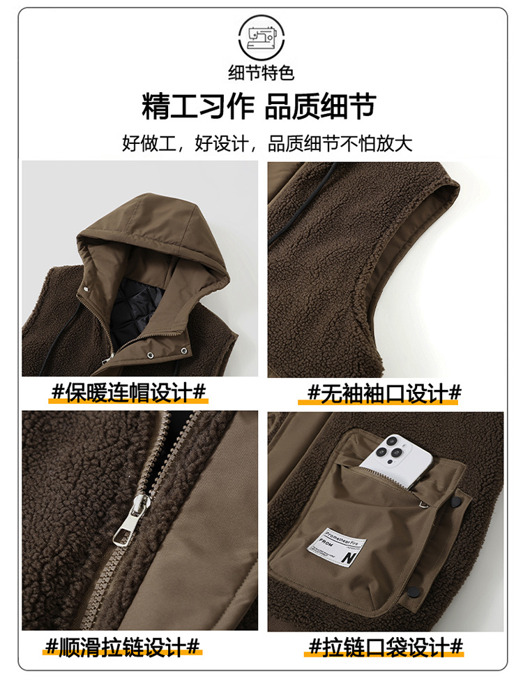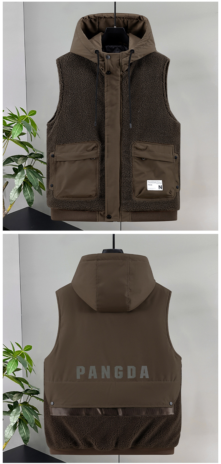 颗粒绒新款羊羔绒马甲男冬季工装连帽坎肩韩版潮流百搭保暖背心潮