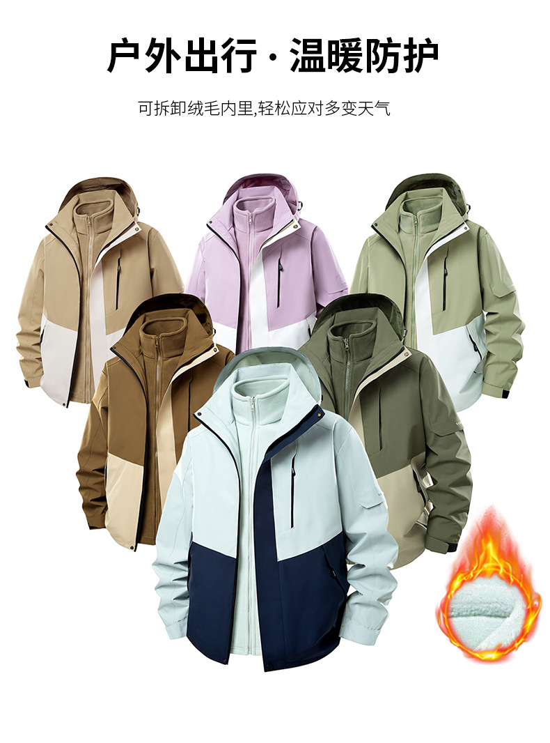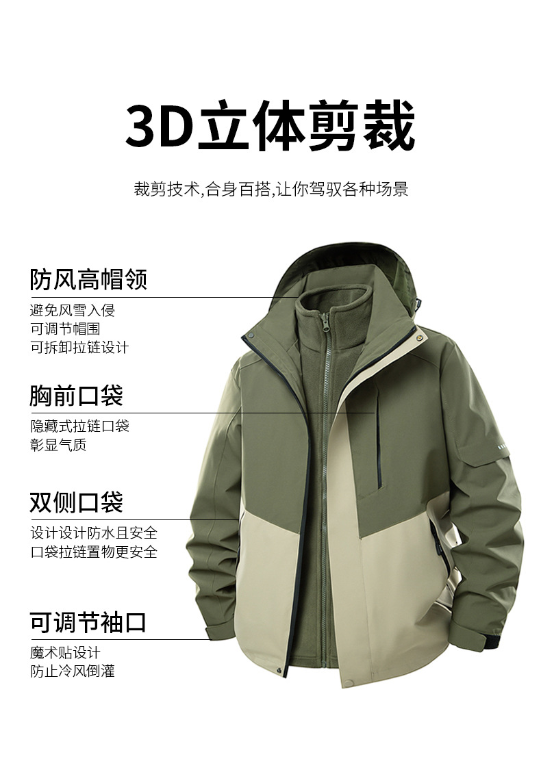冲锋衣男三合一防风防泼水2025新款可拆卸摇粒绒内胆户外登山服女