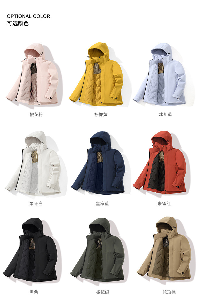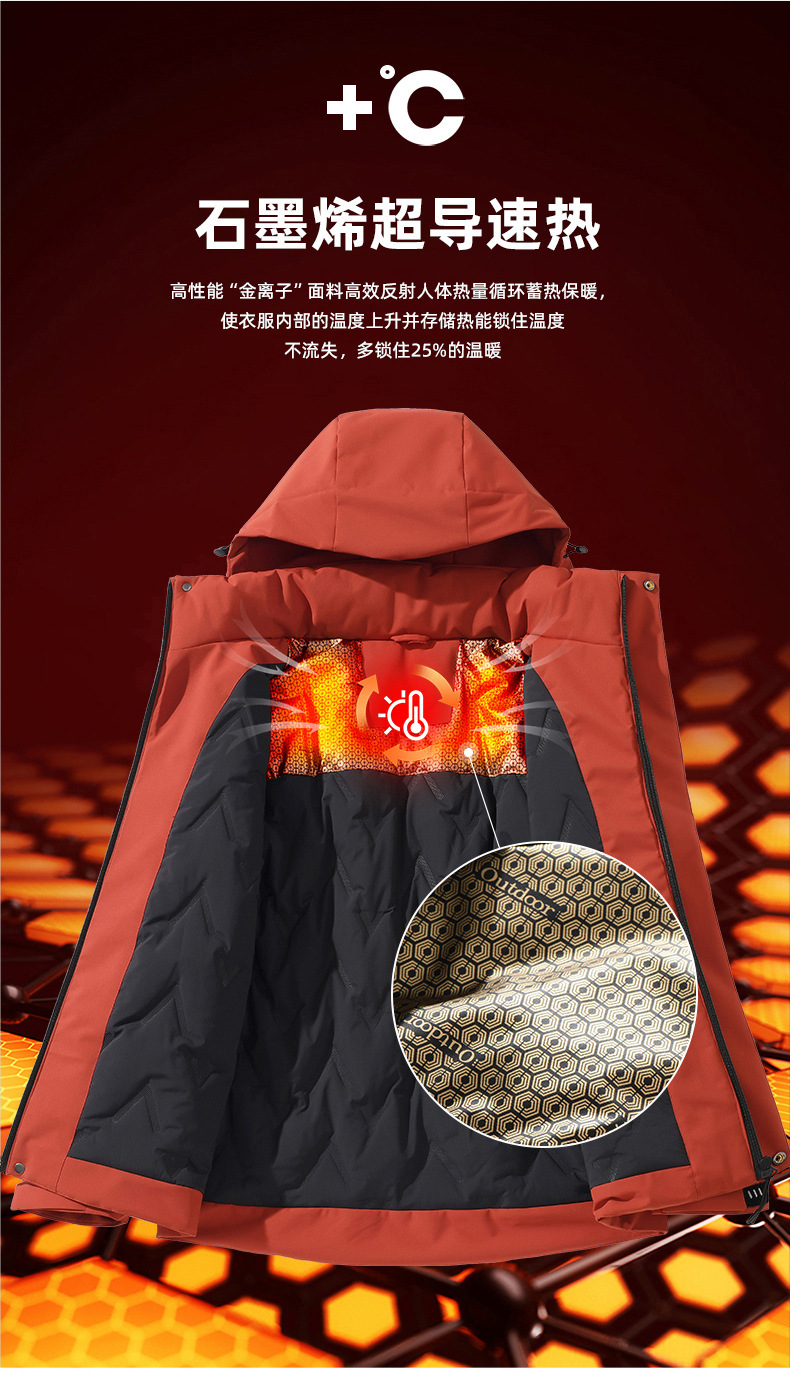秋冬新款加绒加厚冲锋衣男 保暖石墨烯棉衣一体冲锋衣女团购批发