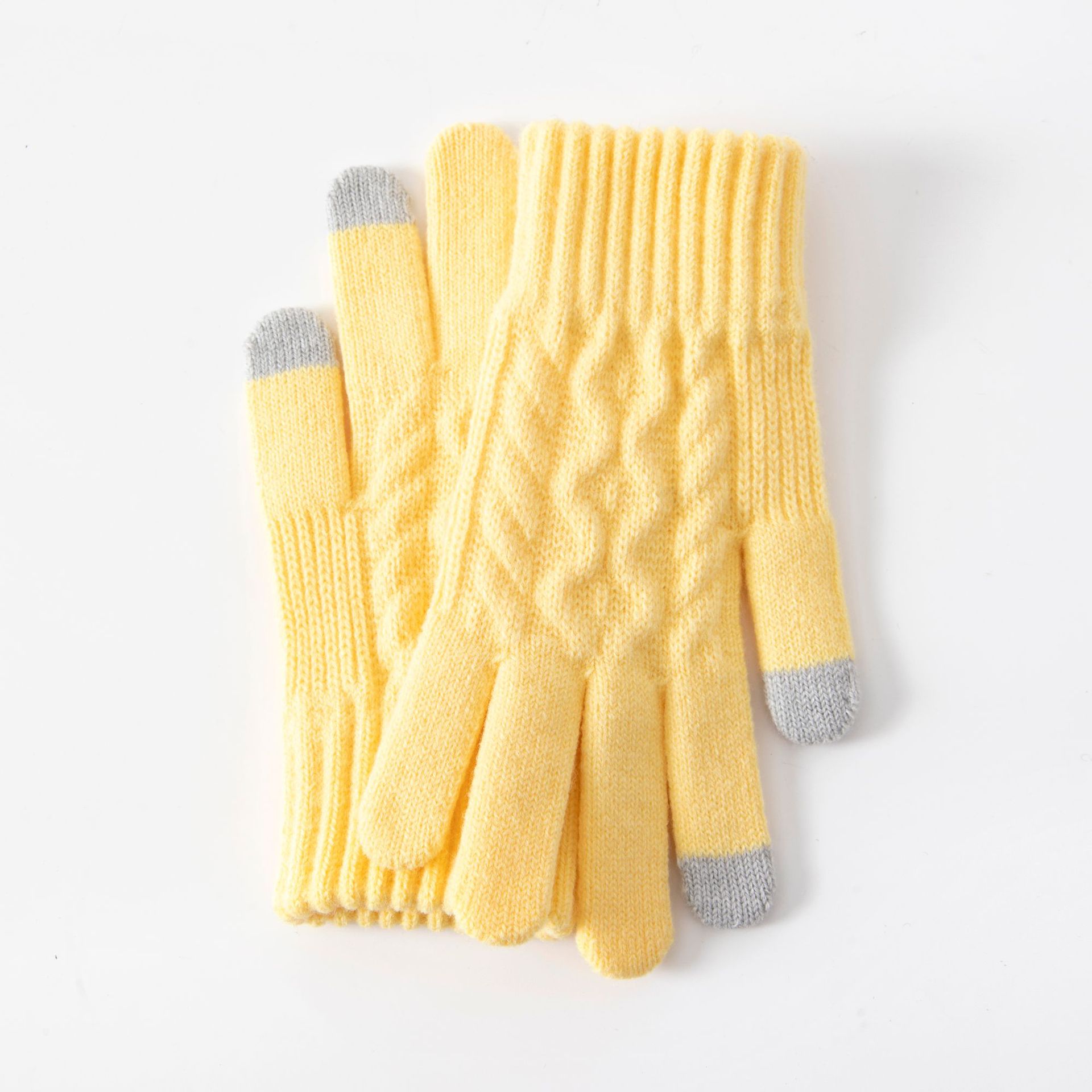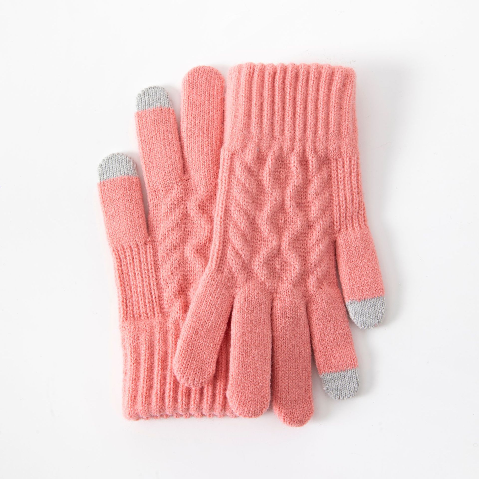 手套女冬季加绒加厚韩版防寒可爱骑行触屏保暖毛线针织手套批发