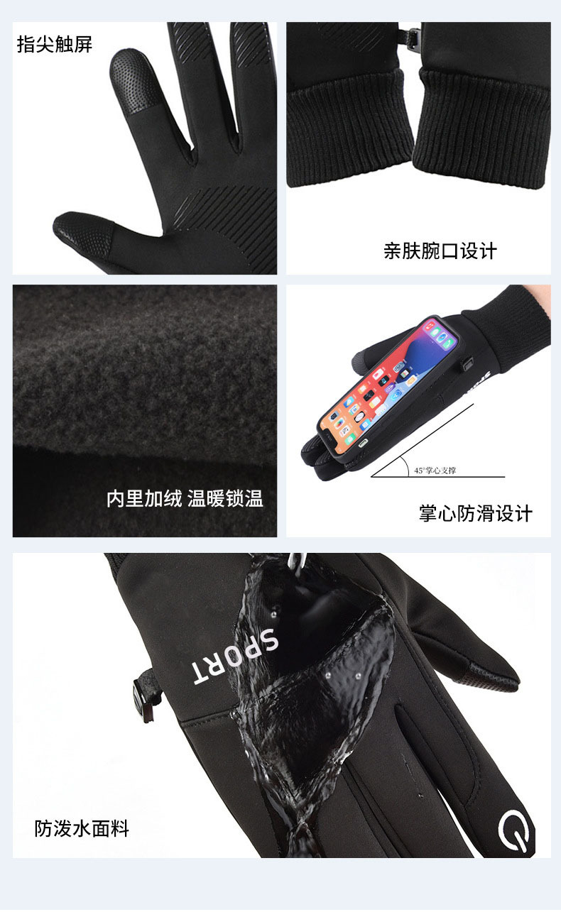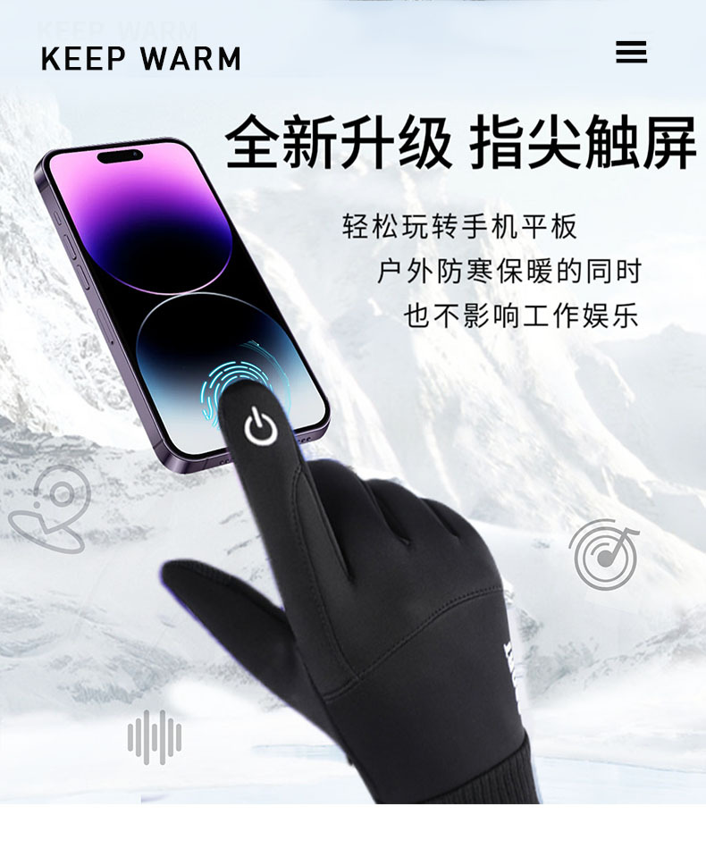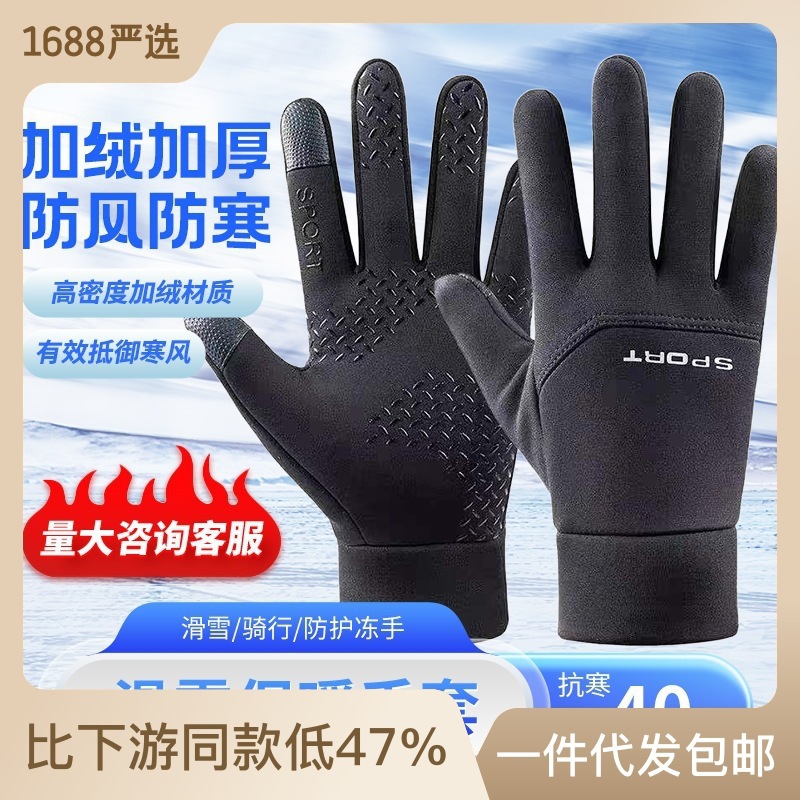 冬天骑行手套男士全指二指户外保暖加绒防风防水防滑触屏骑行手套