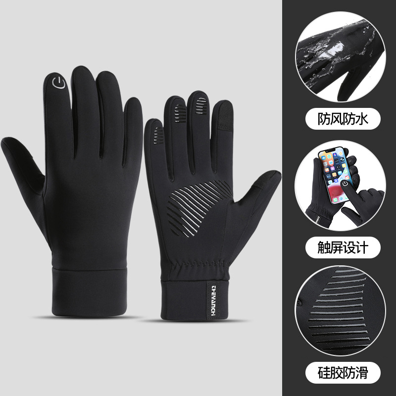骑行手套男Q806户外防滑触屏加绒骑车秋冬季反光运动保暖手套