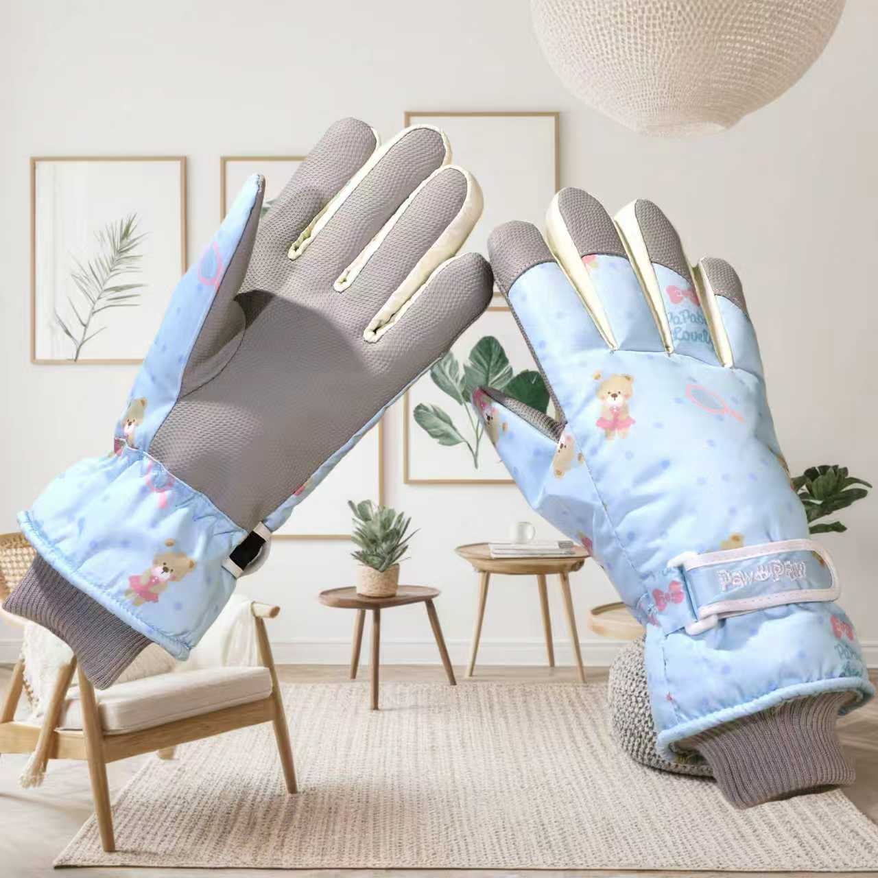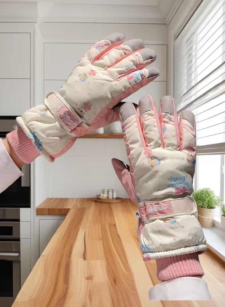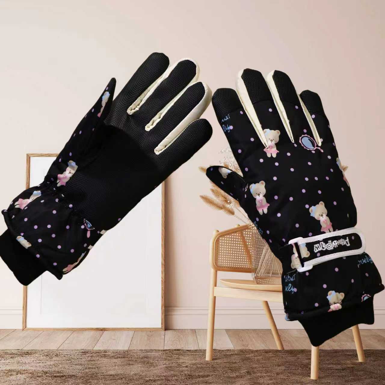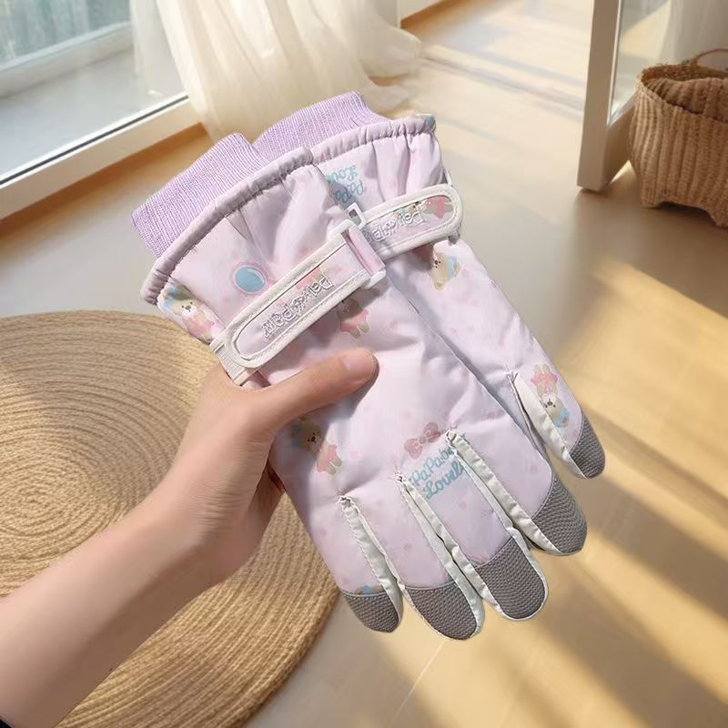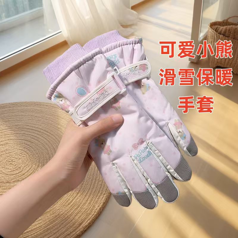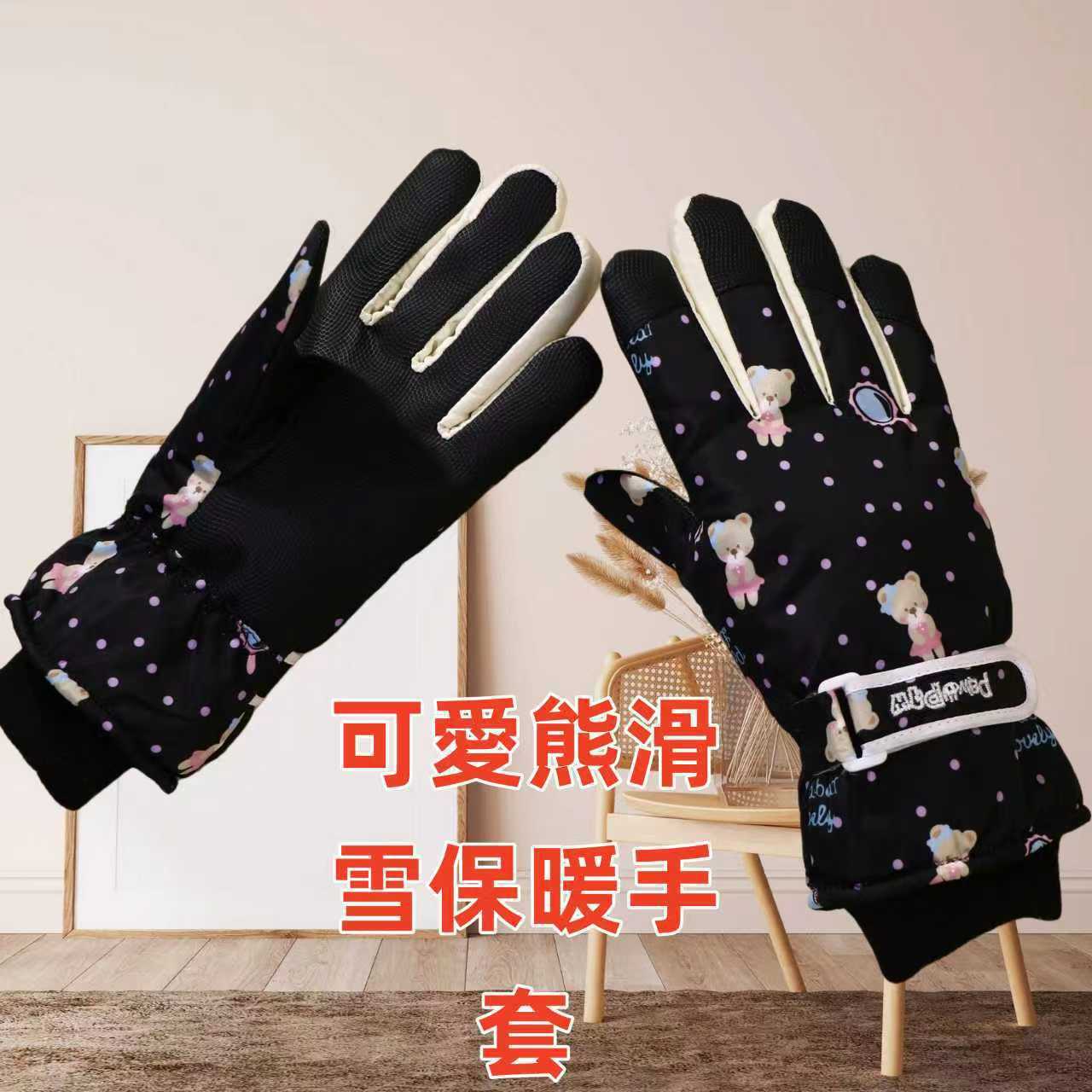 可爱滑雪手套女士冬季可触屏加绒加厚加棉防风泼水电动车保暖冬季