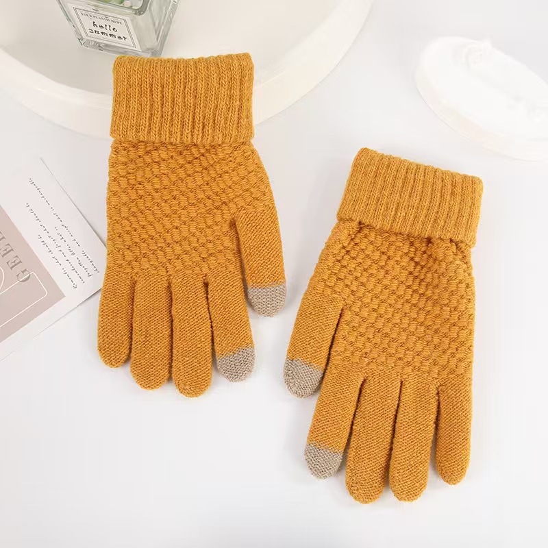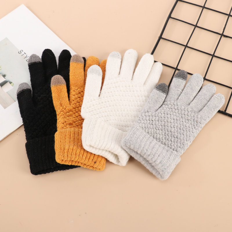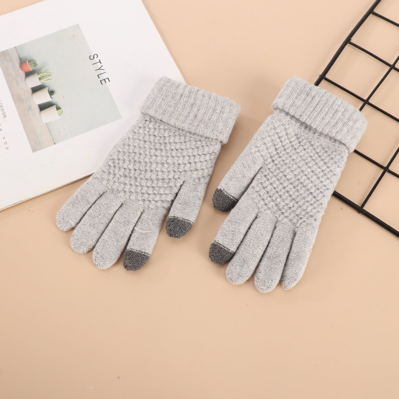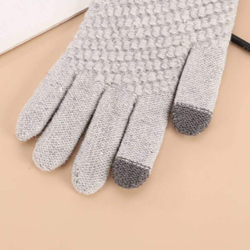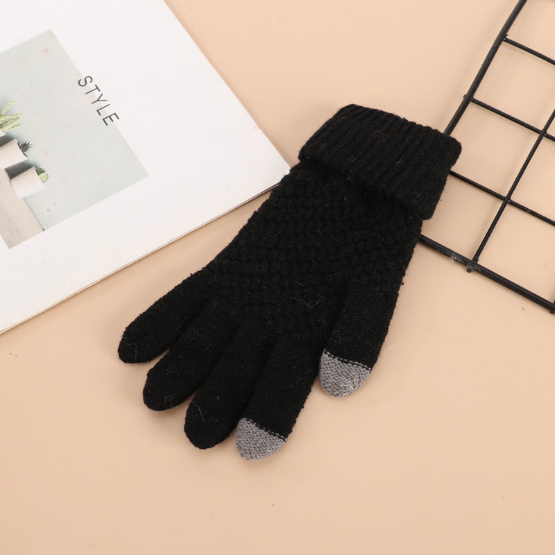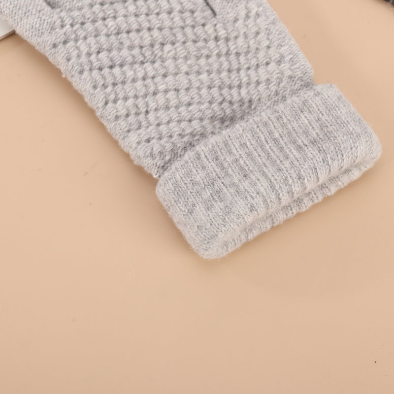 厂家批发冬季加厚加绒菠萝针织可触屏骑车防寒毛绒菠萝纹保暖手套