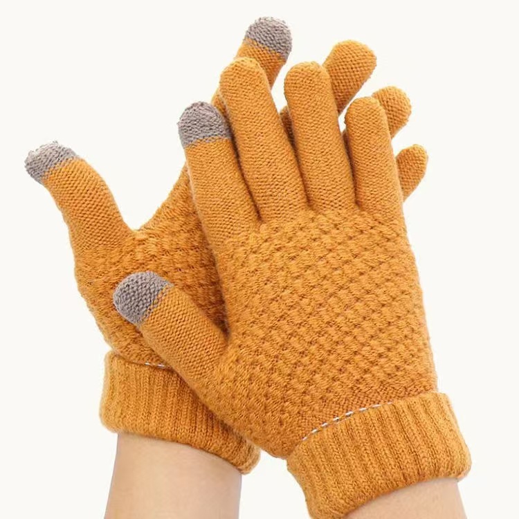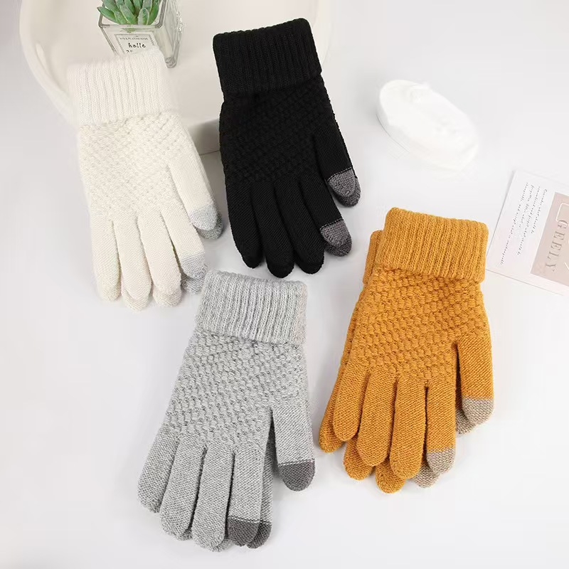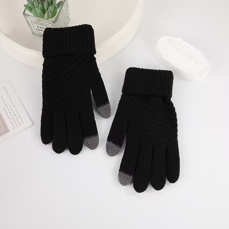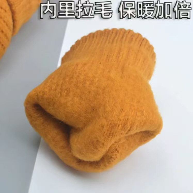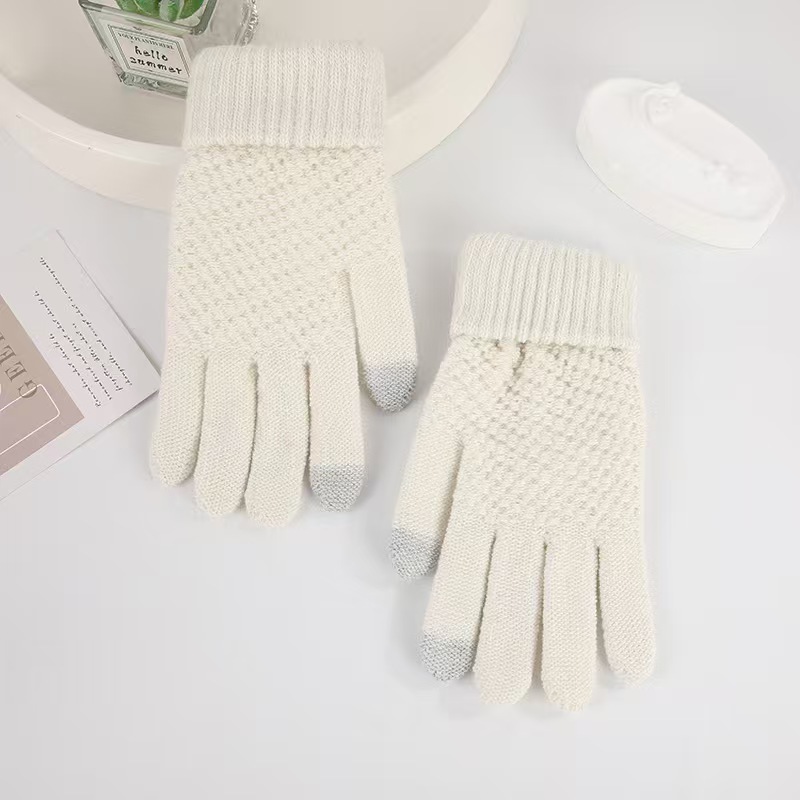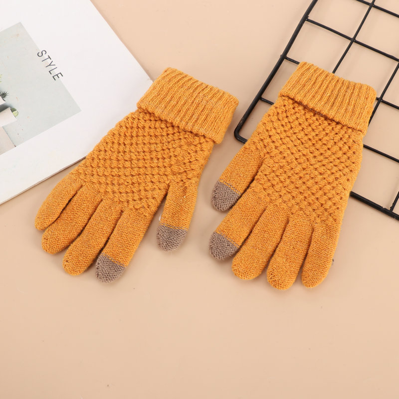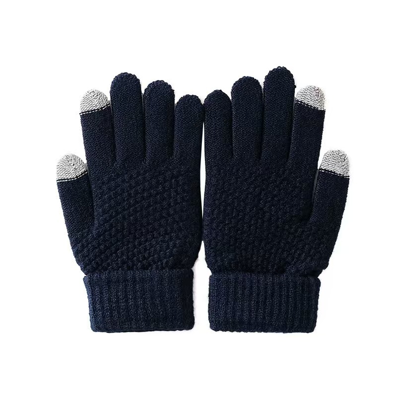 厂家批发冬季加厚加绒菠萝针织可触屏骑车防寒毛绒菠萝纹保暖手套