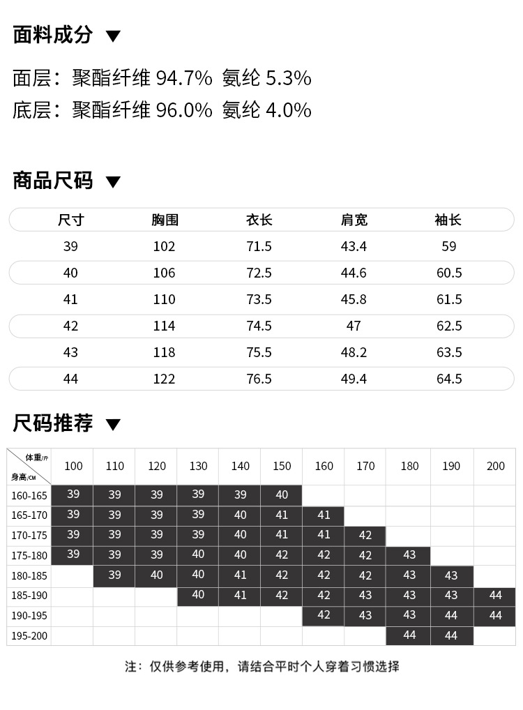 | 42 (77.50 kg-85.00 kg(42(155-170斤)) | USD $17.39 | 500 piece available |