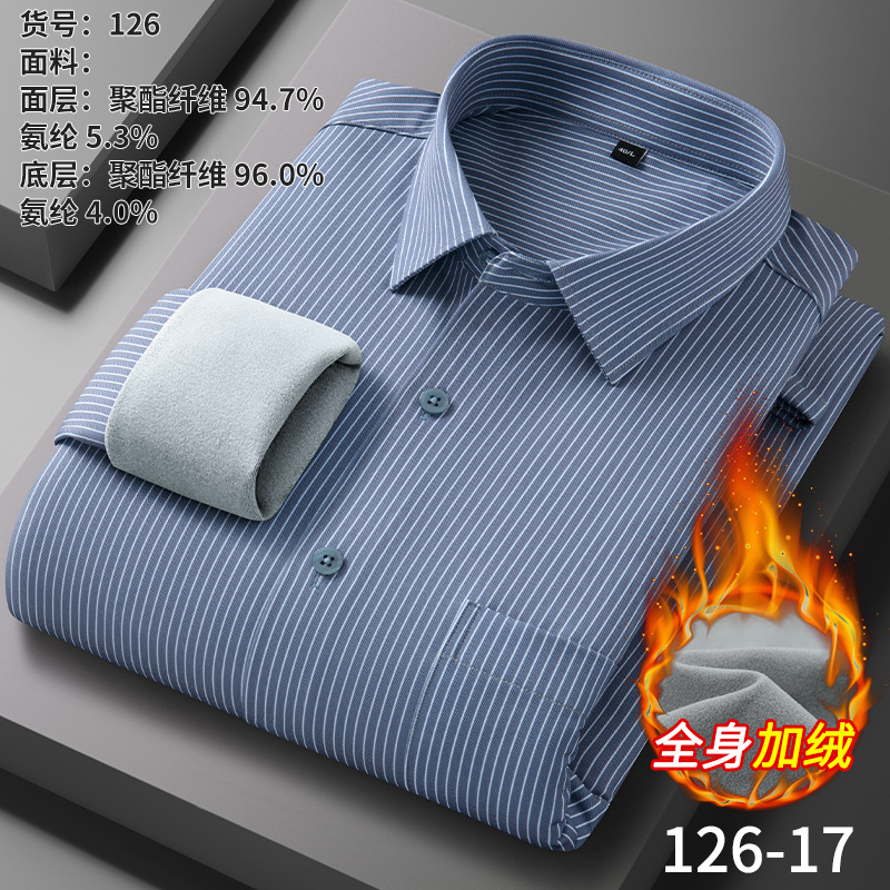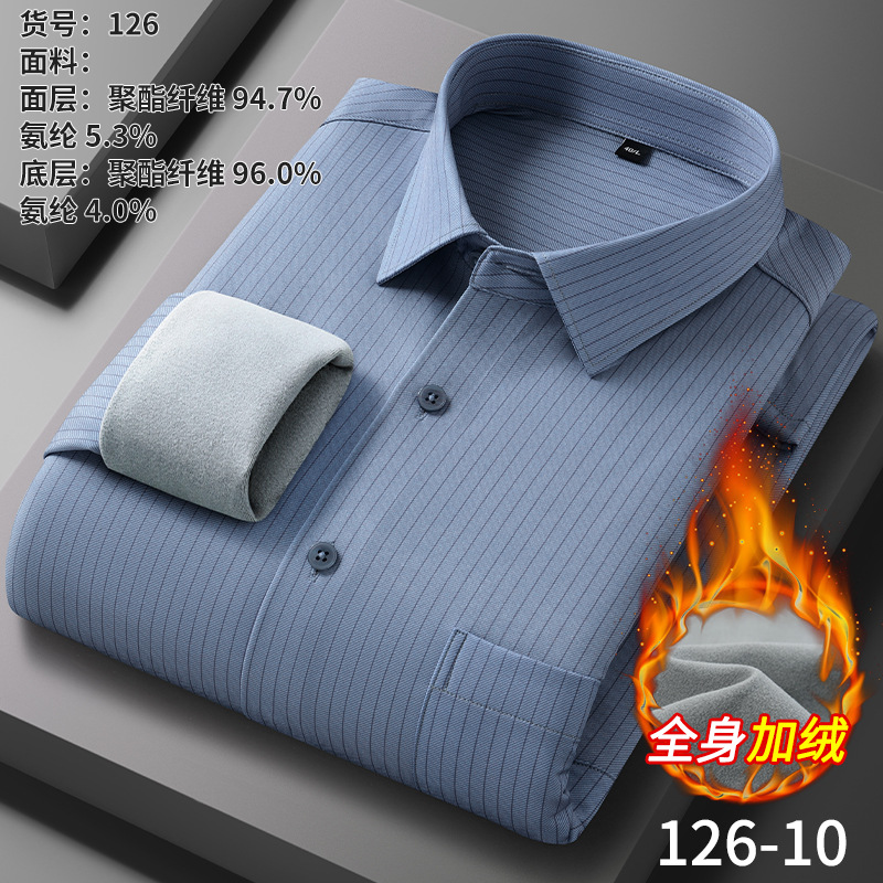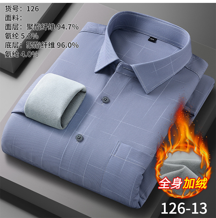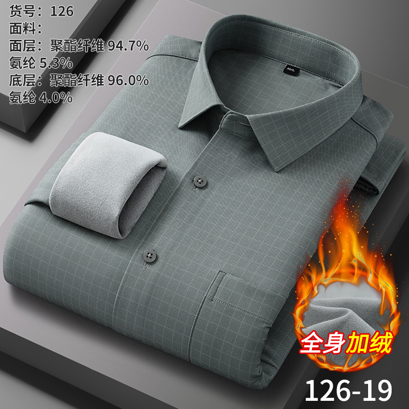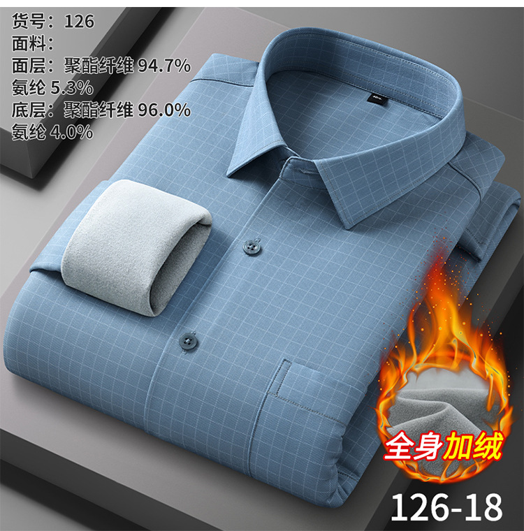 长袖保暖衬衫男士加绒加厚衬衫秋冬新款中年商务长袖衬衫