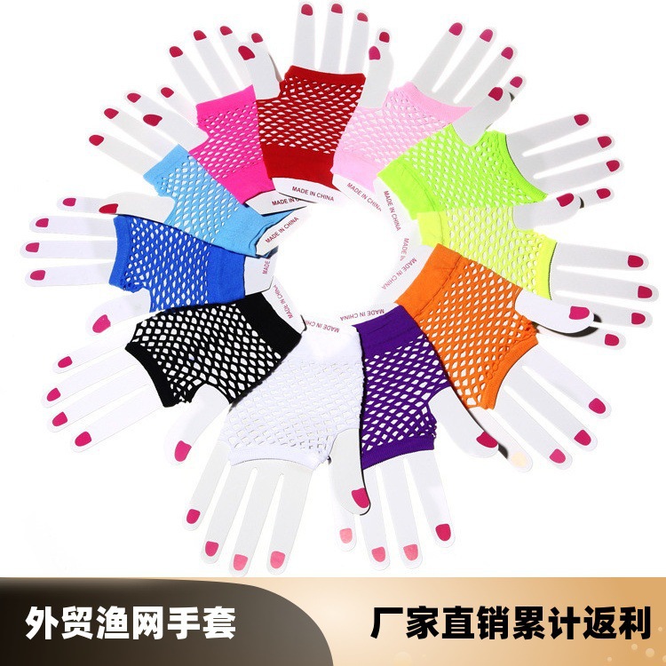 创意款尼龙短款情趣渔网手套 欧美跨境外贸装饰情趣半指手套批发