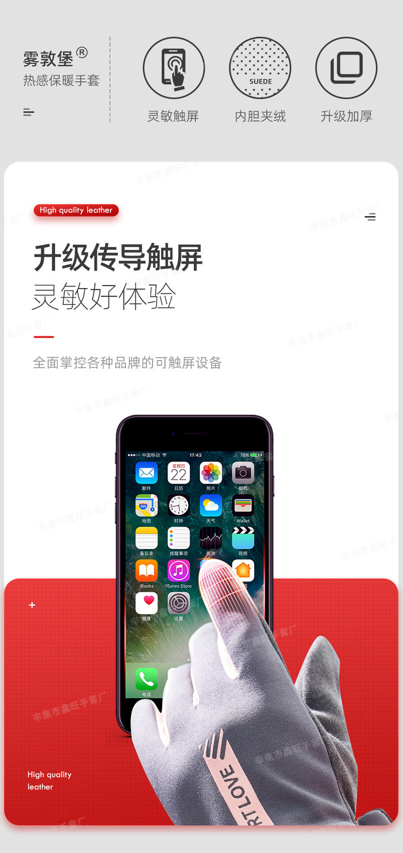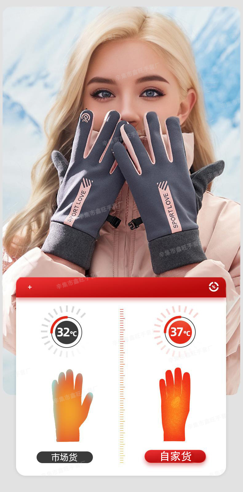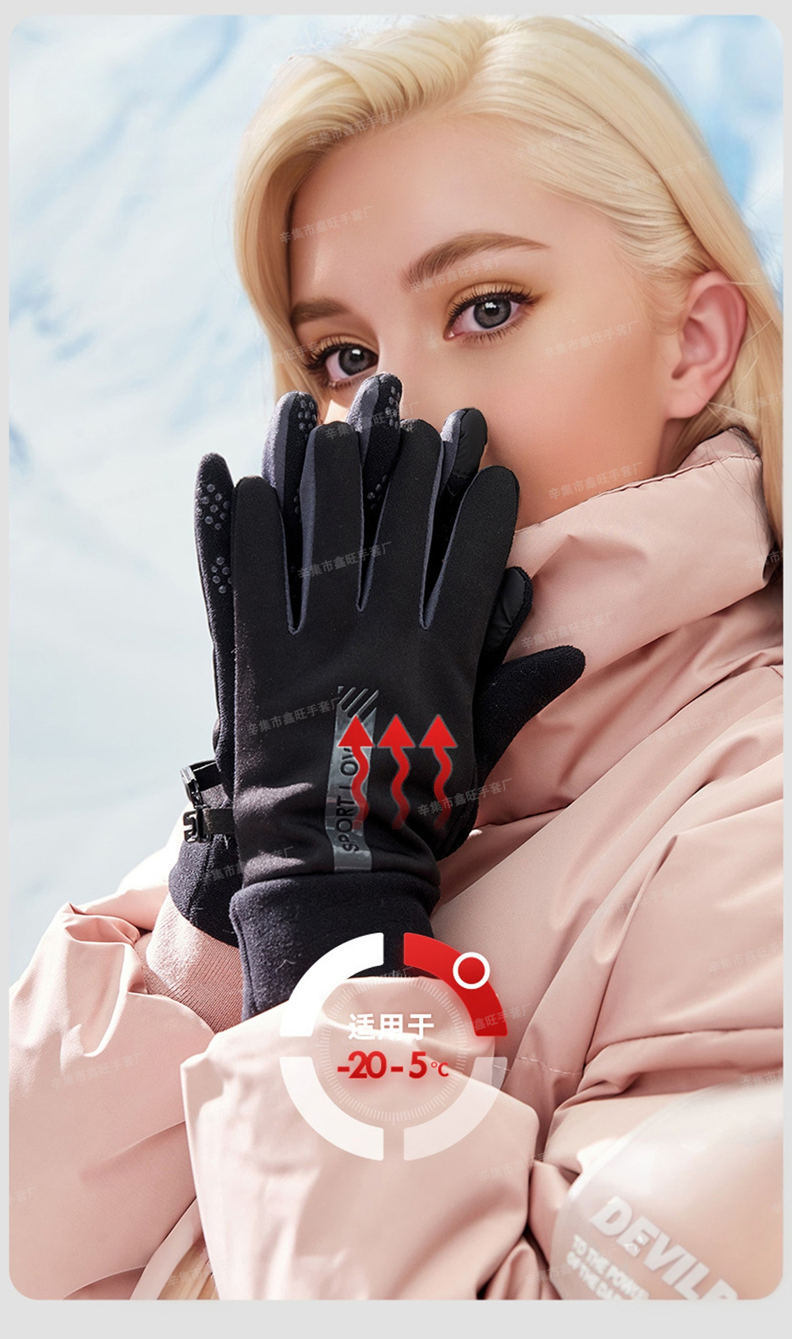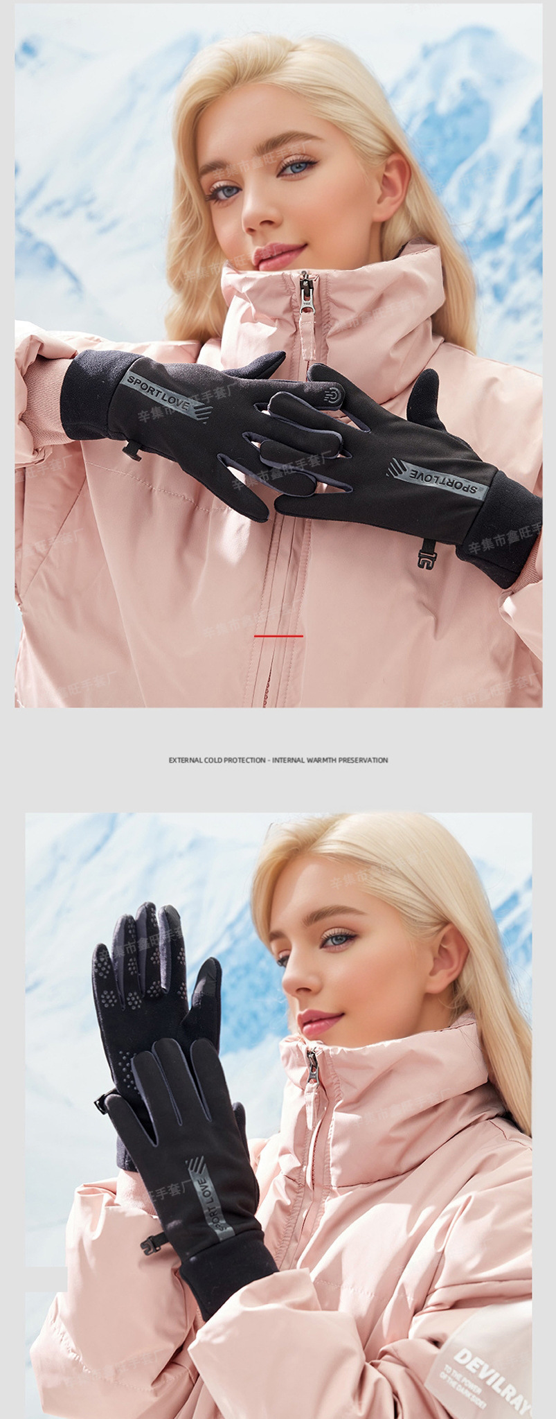 保暖手套女式防滑加绒防风防寒防水户外运动登山工厂触屏触控