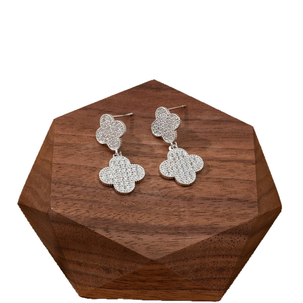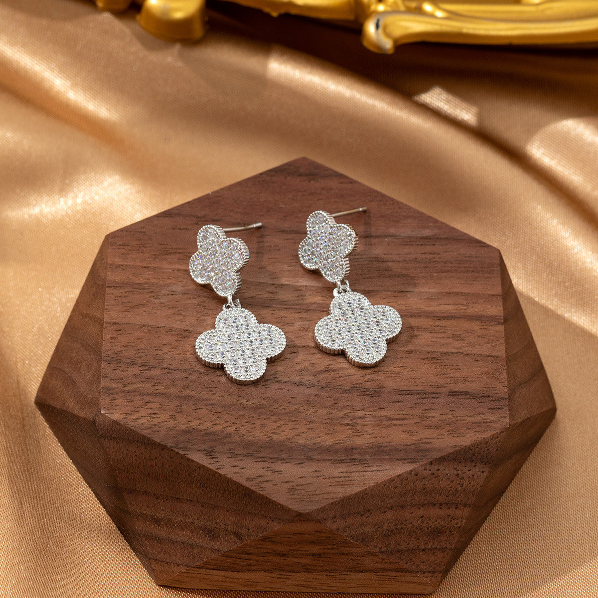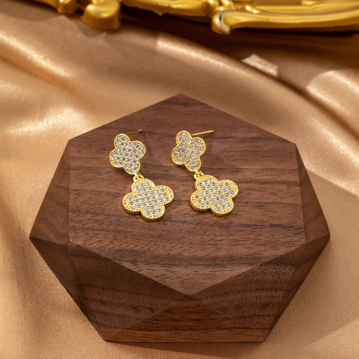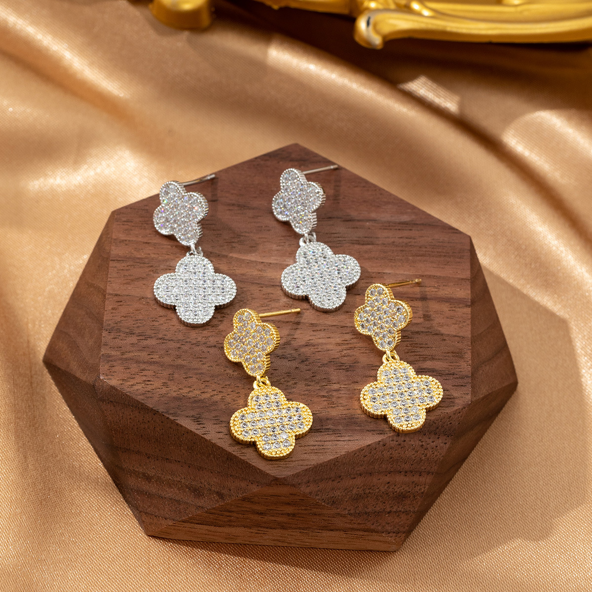 梵家高版本满钻四叶草耳饰女铜镀真金镶锆轻奢时尚感设计跨境耳饰