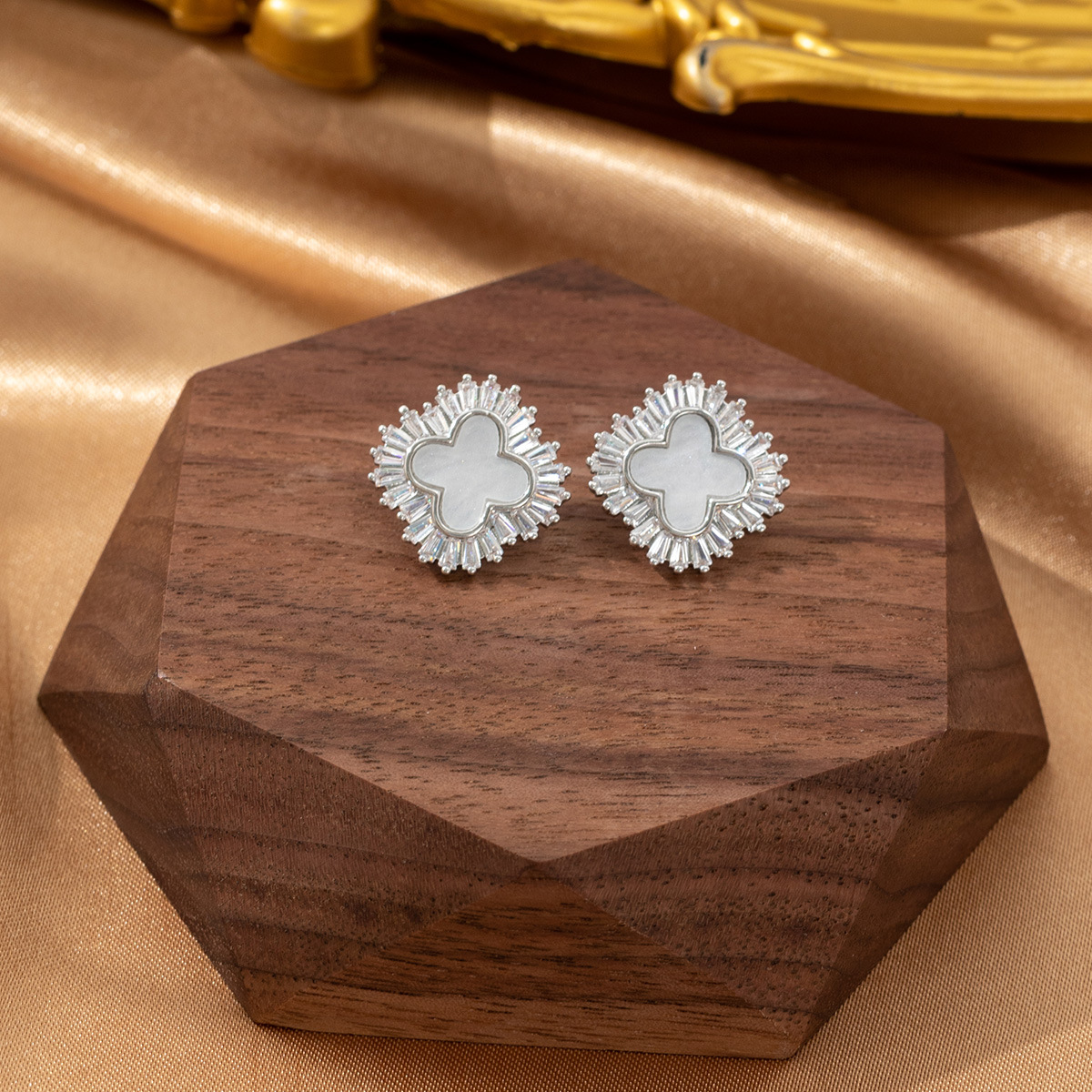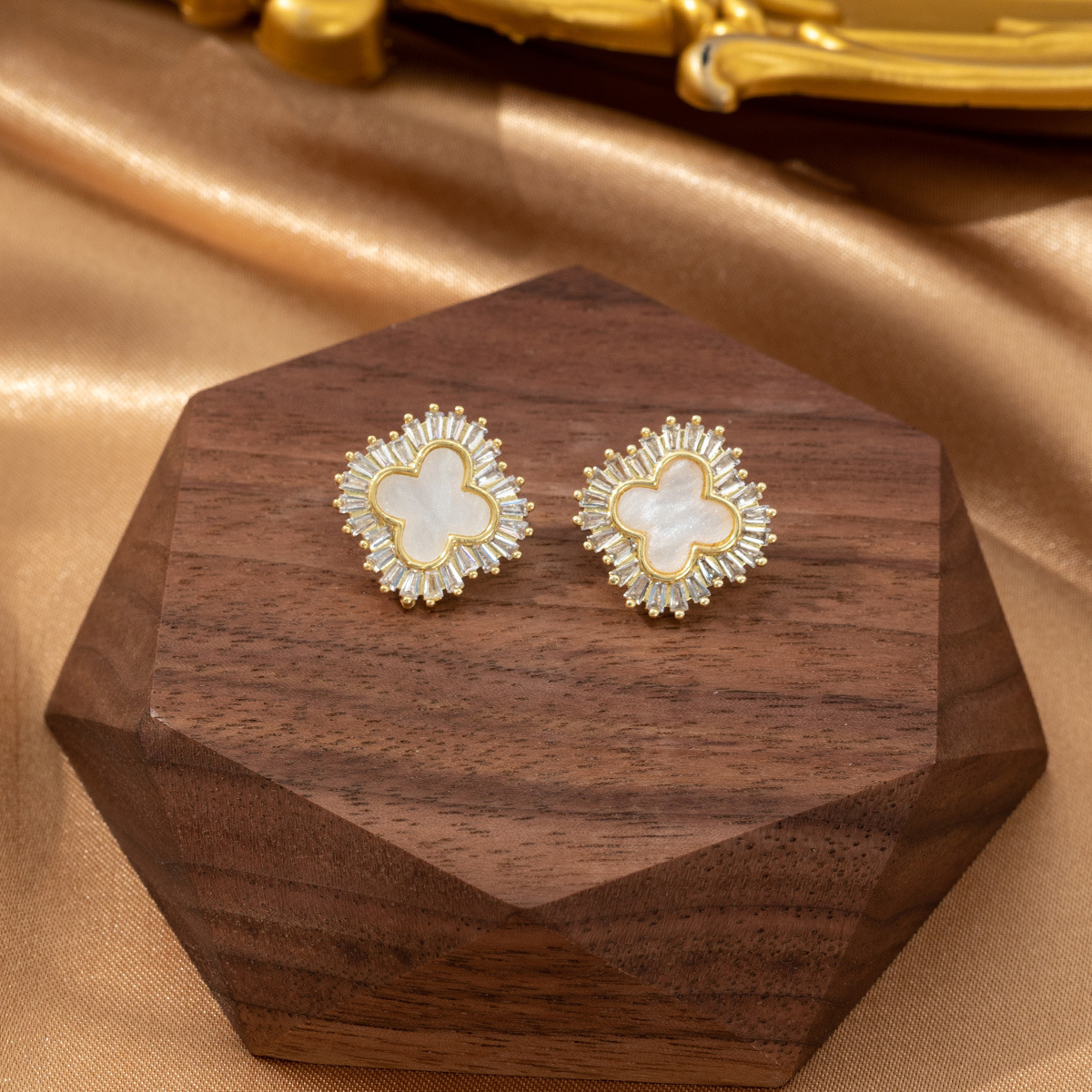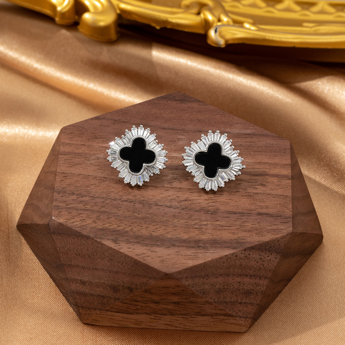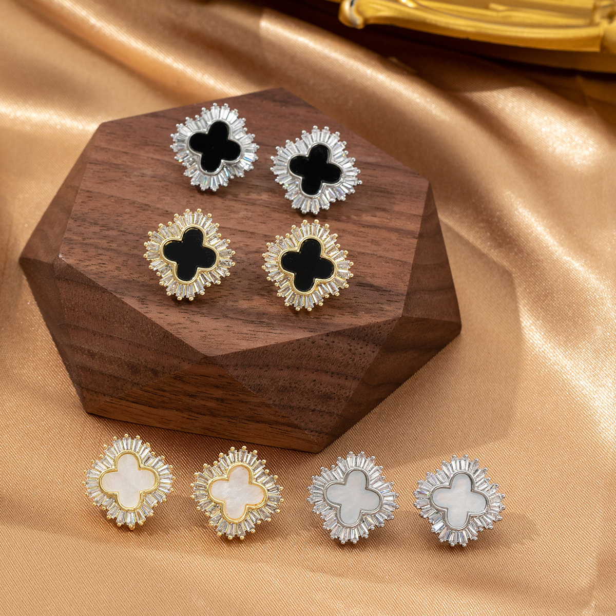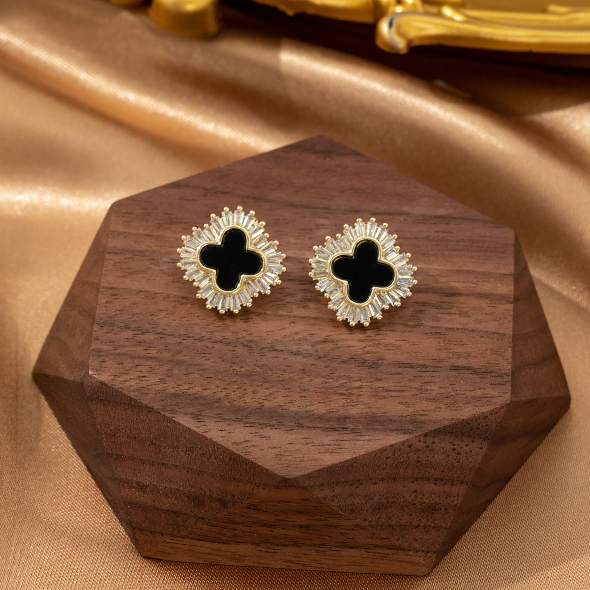 新款时尚轻奢四叶草耳钉女小众设计高级感通勤百搭耳饰高版本饰品