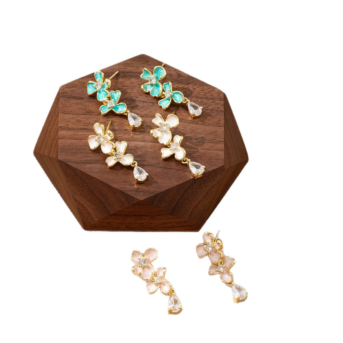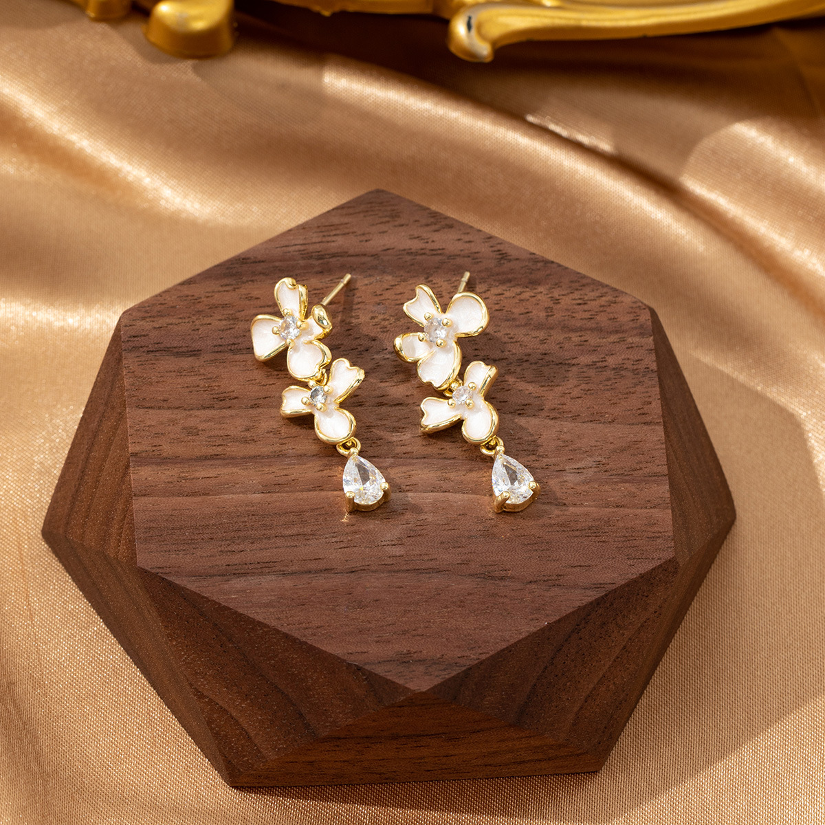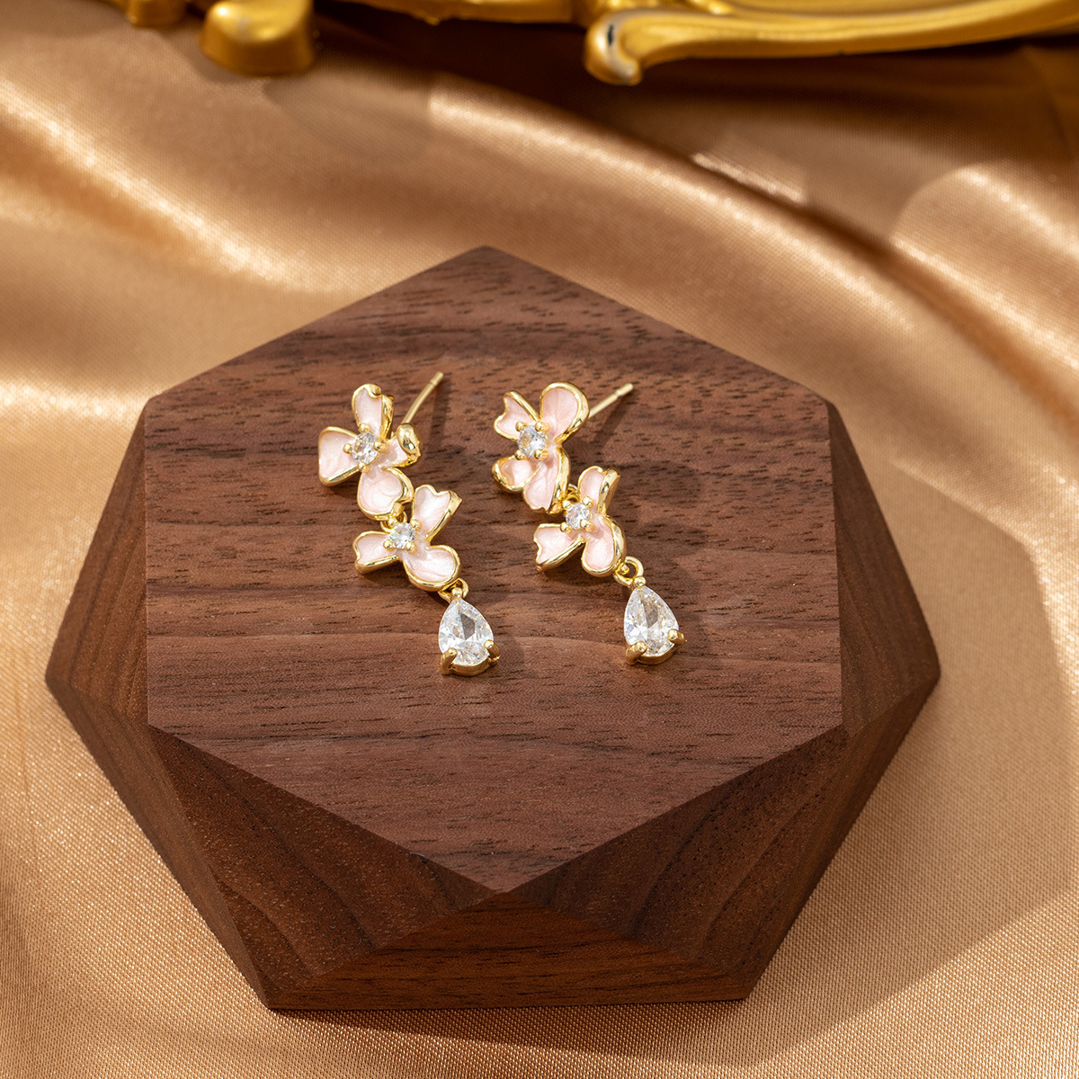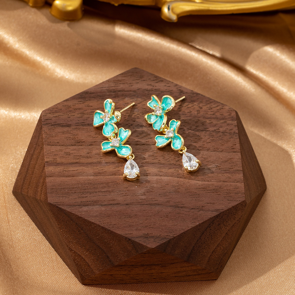 复古银针滴油锆石花朵耳坠铜镀金轻奢精致高级感凶案在百搭耳饰女