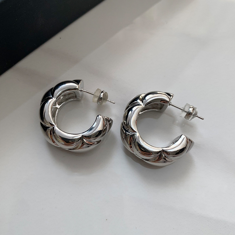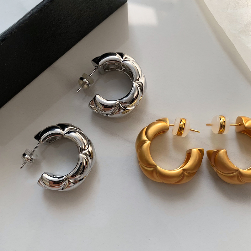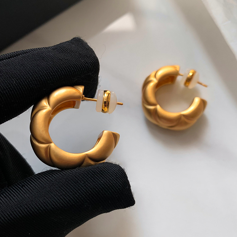 耳环高级感独特耳钉耳饰女2025新款S925纯银金色哑光菱格耳环圈圈
