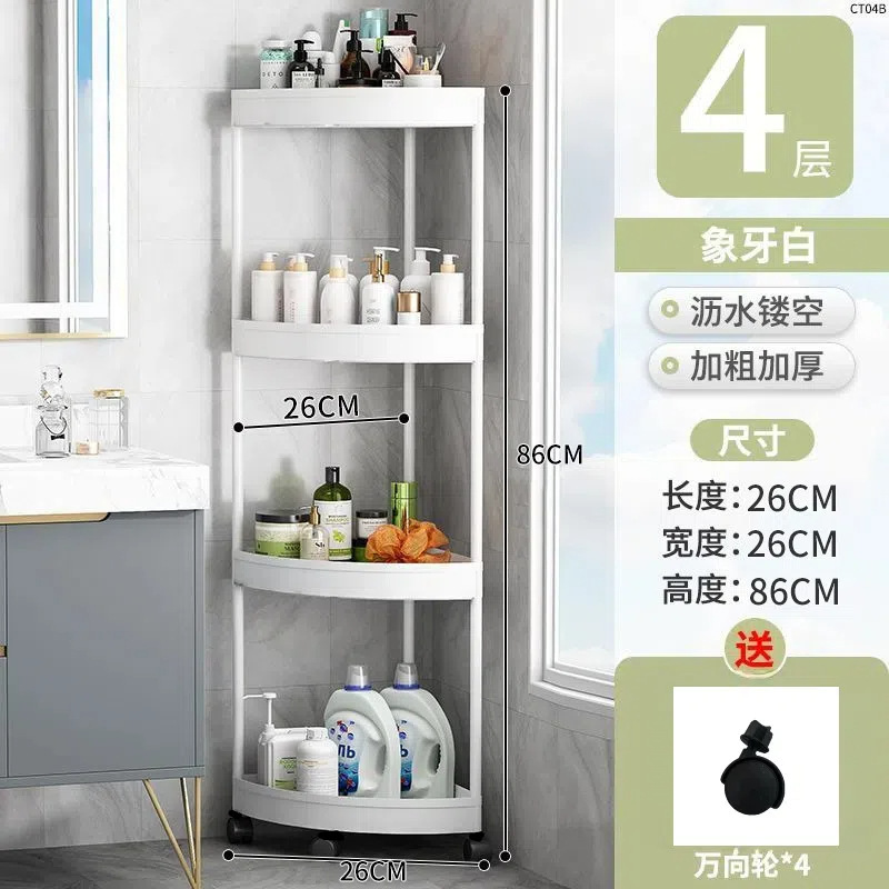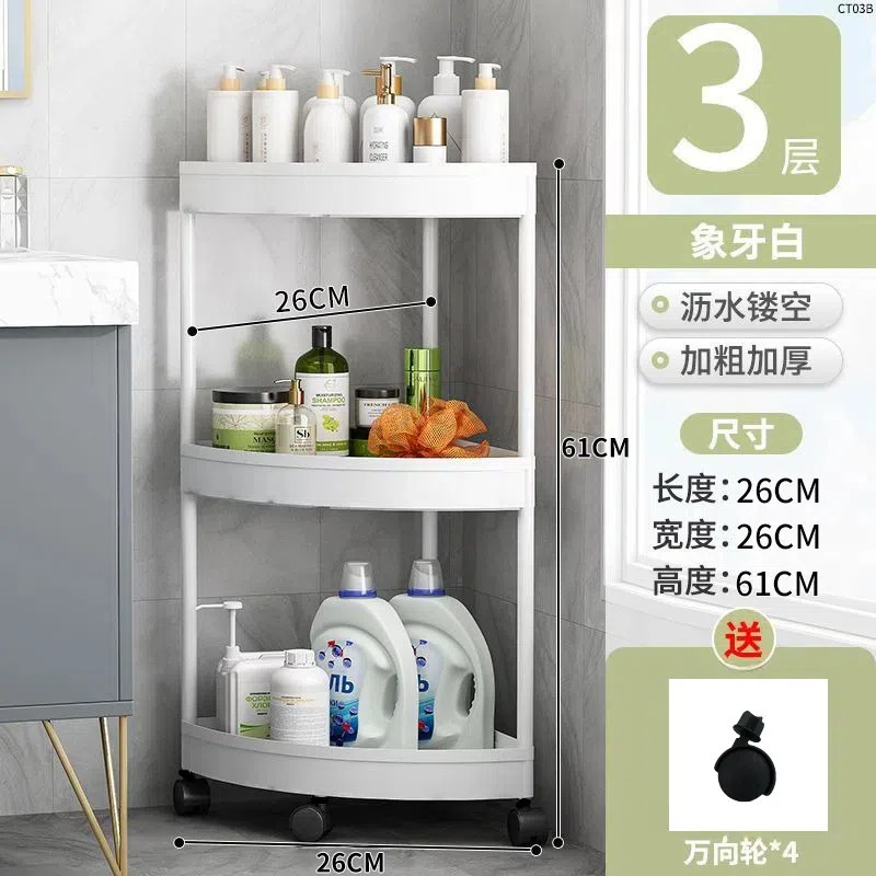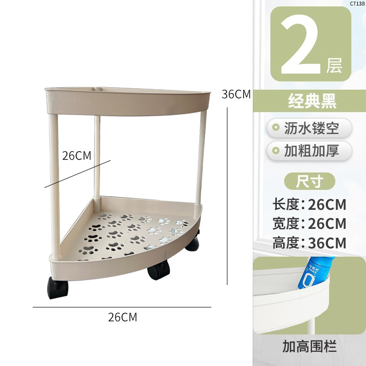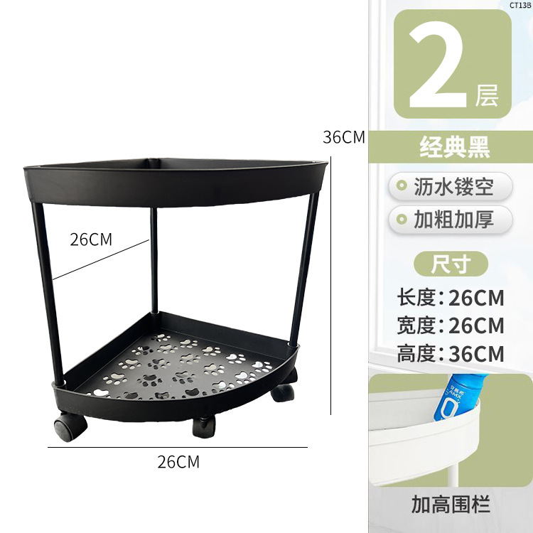 厨房角架浴室拐角墙角转角收纳架卫生间扇形置物架白色带轮2层