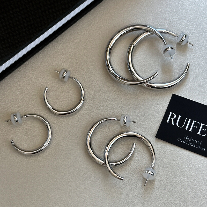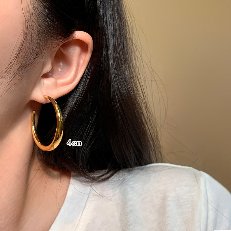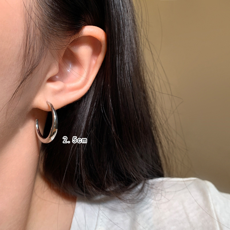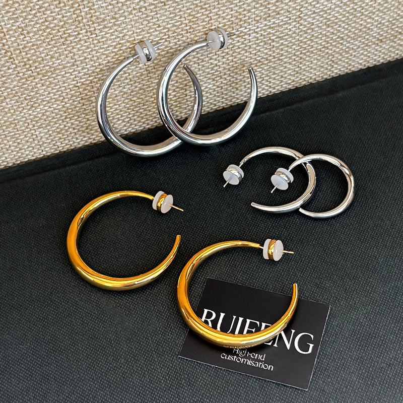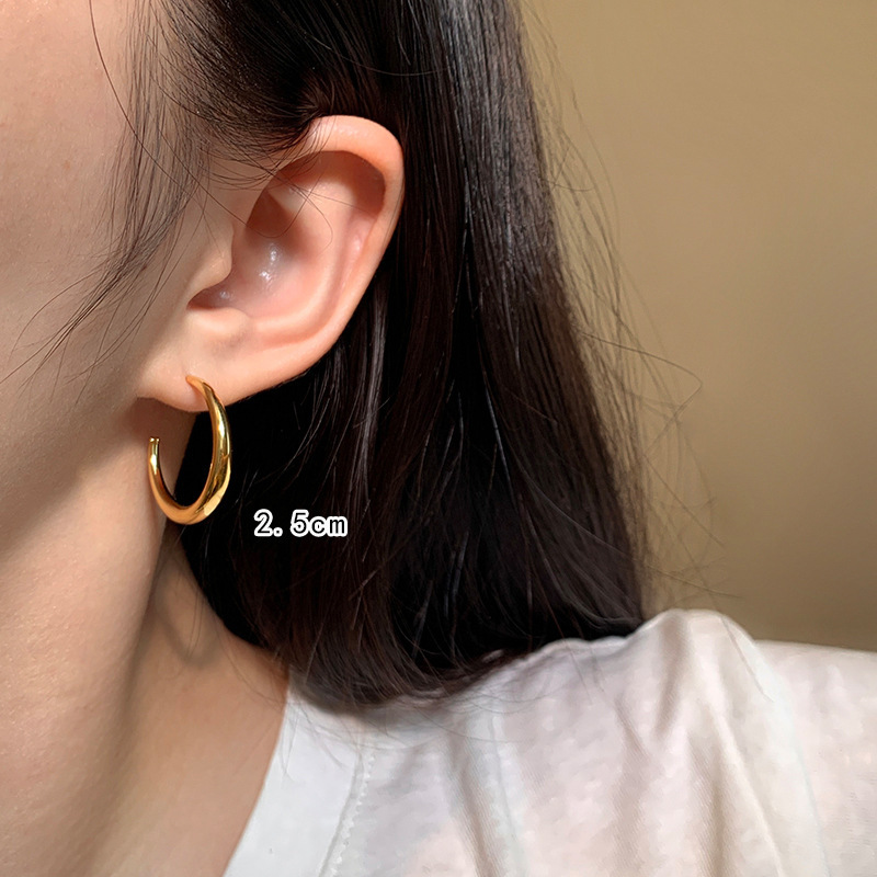大耳环圈圈女简单大方耳圈耳饰S925银针金色银色高级感精致小素圈