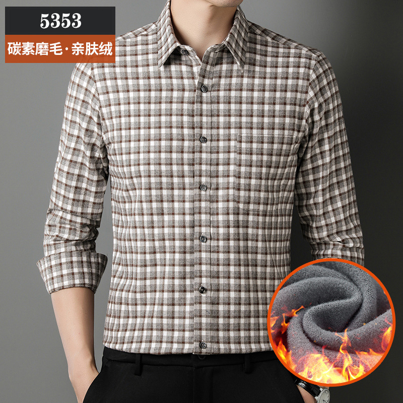 冬季新款纯棉加绒磨毛保暖衬衫复合一体绒亲肤绒保暖衬衣男