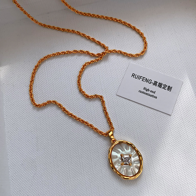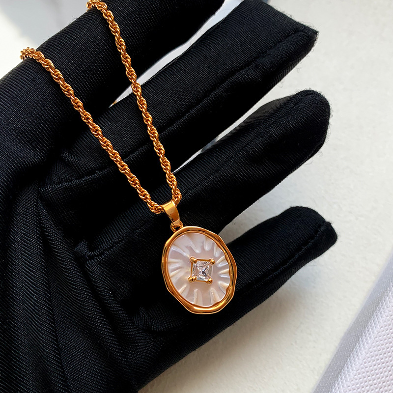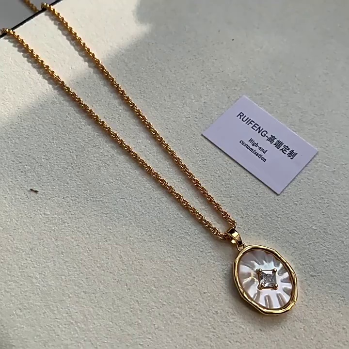 饰品项链小众高级感叠戴颈链天然白色贝母椭圆吊坠毛衣珍珠项链女