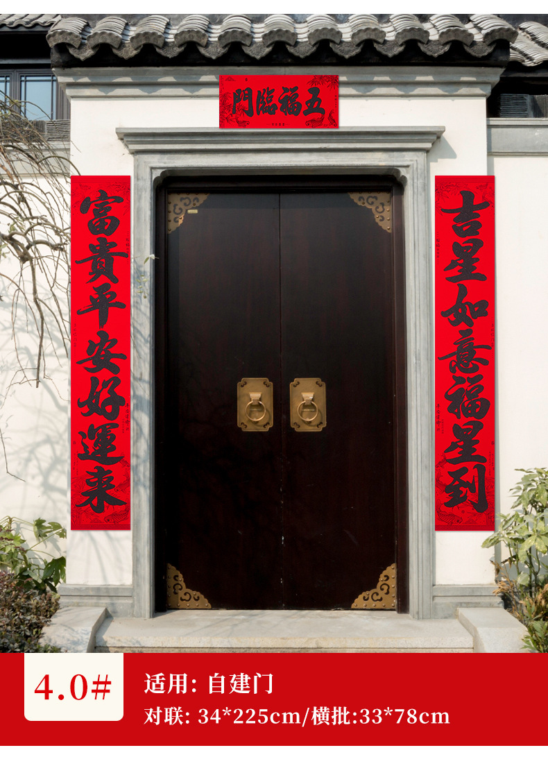 2026年新款植绒对联铜板纸装饰门贴新年过年春节加厚绒布门联春联