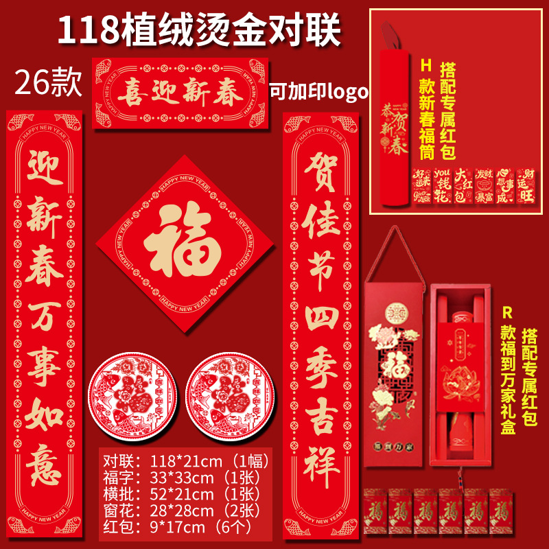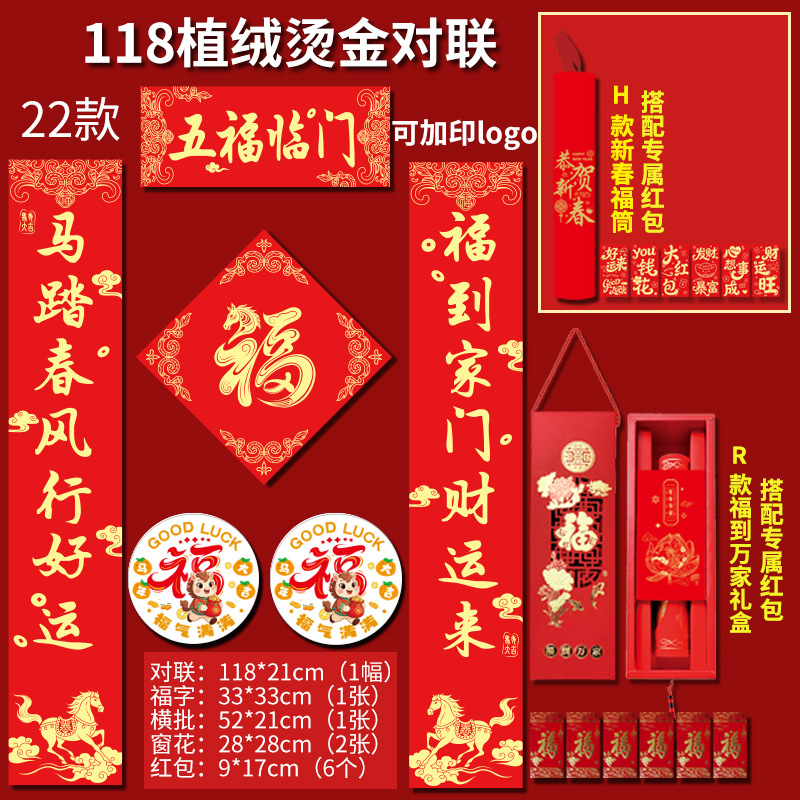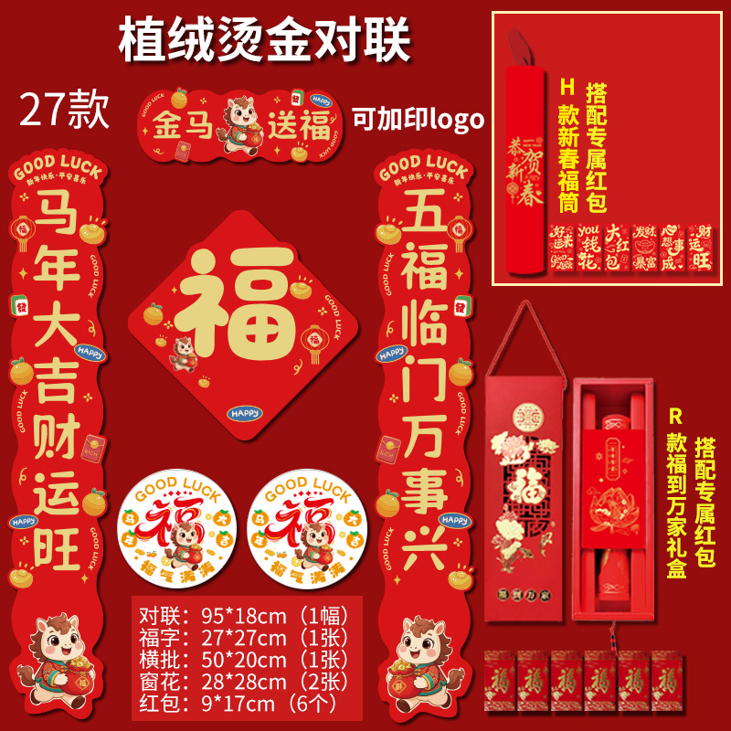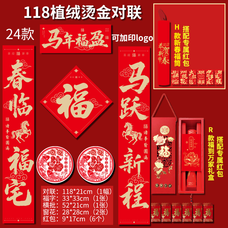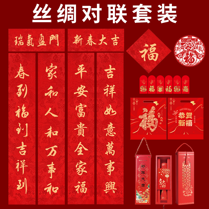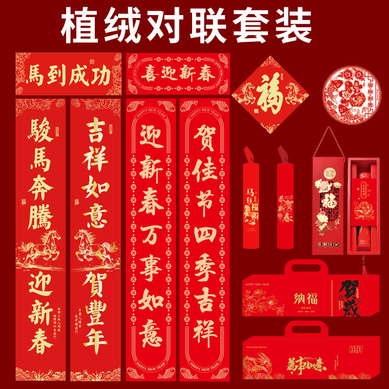 2026马年对联春联批货植绒高级感新年丝绸春联大礼包对联定制logo