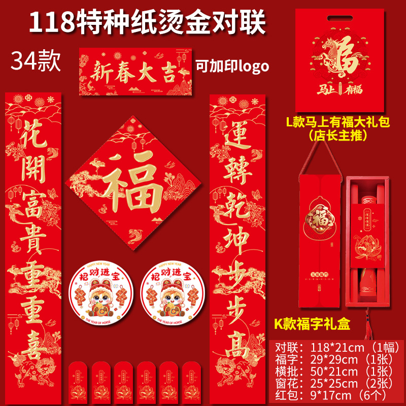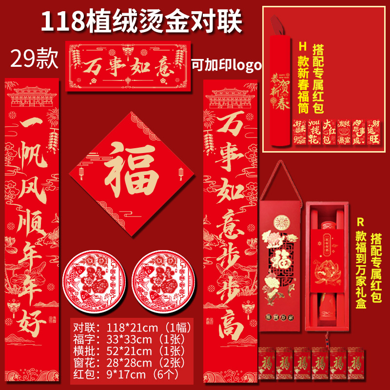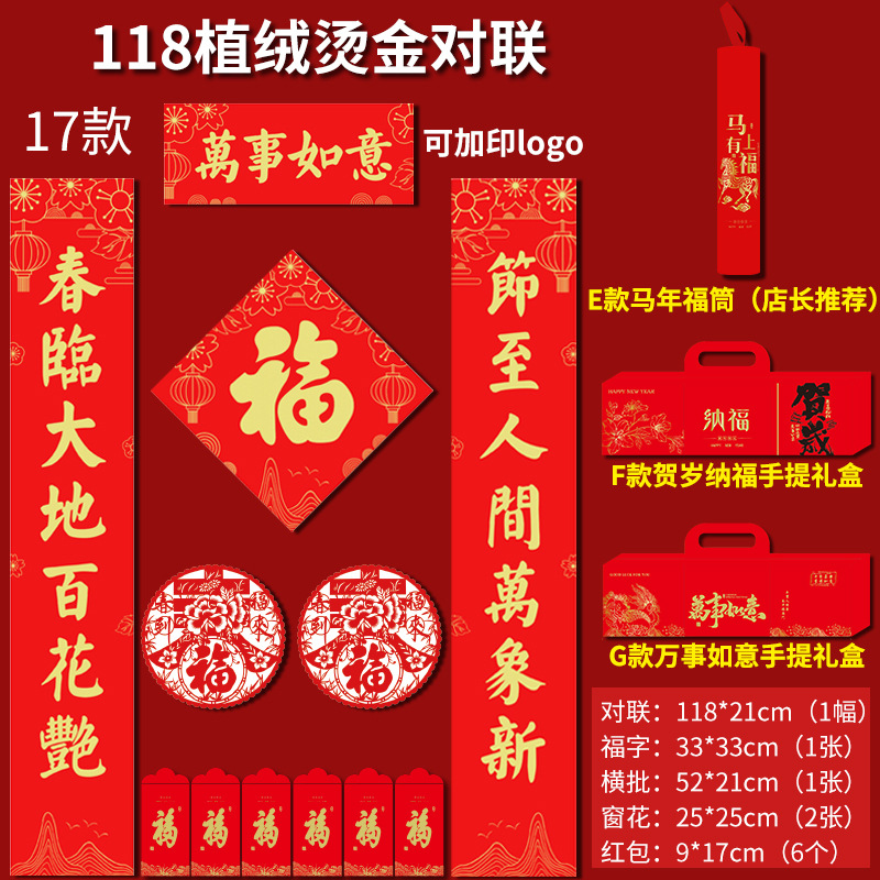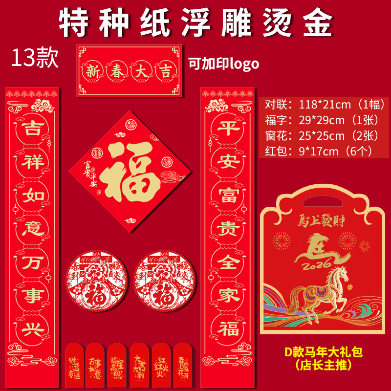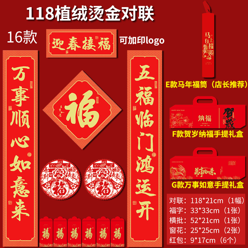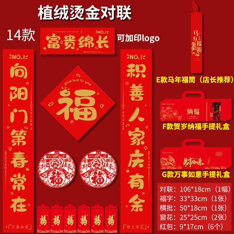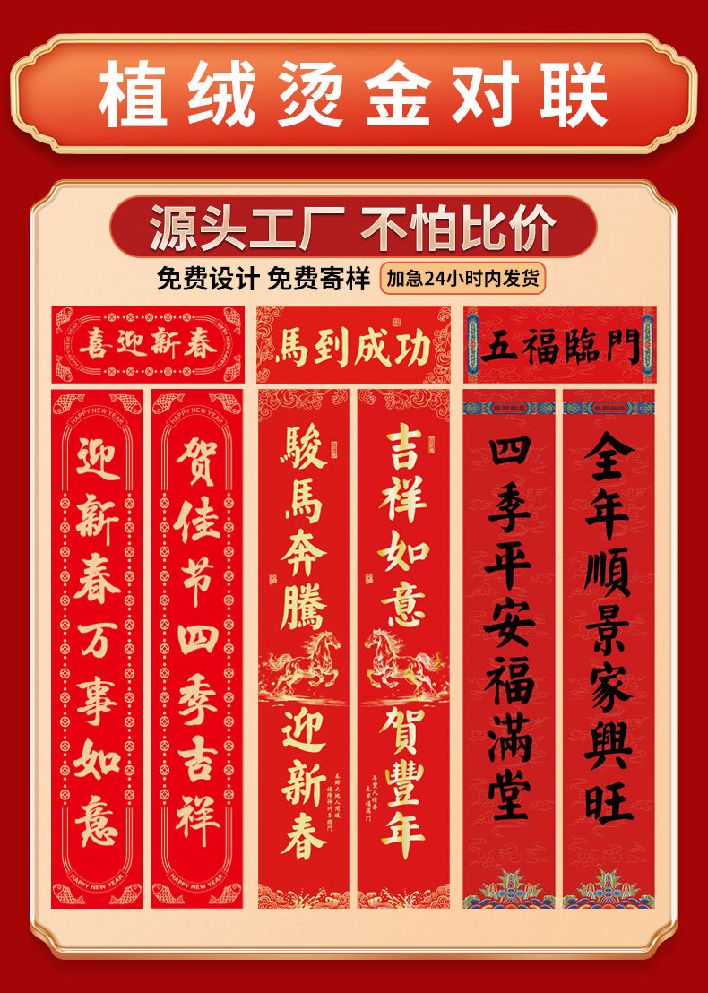 2026马年对联春联批货植绒高级感新年丝绸春联大礼包对联定制logo