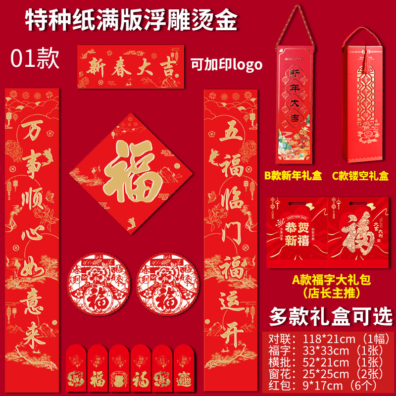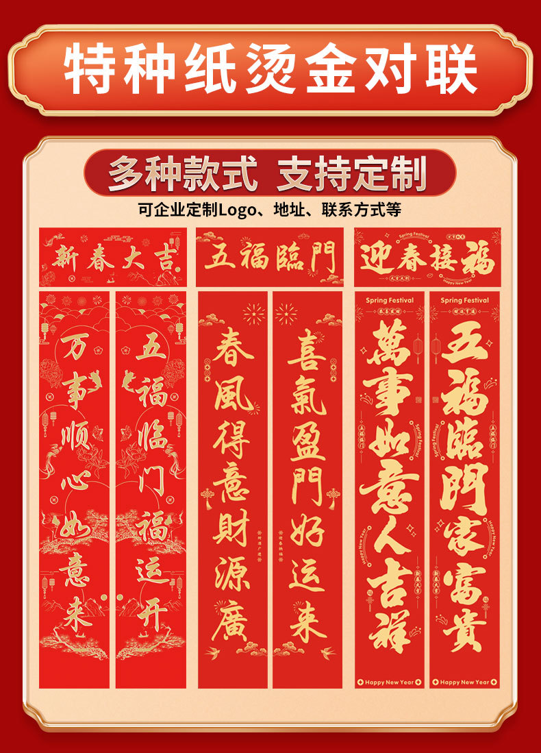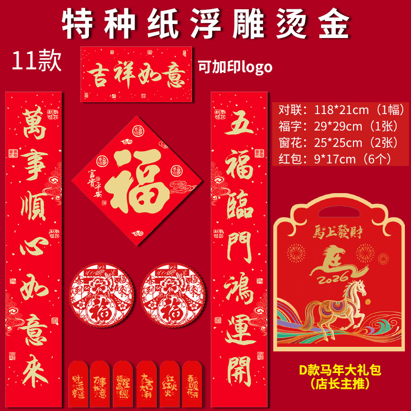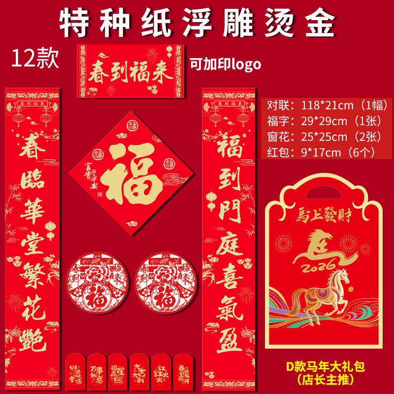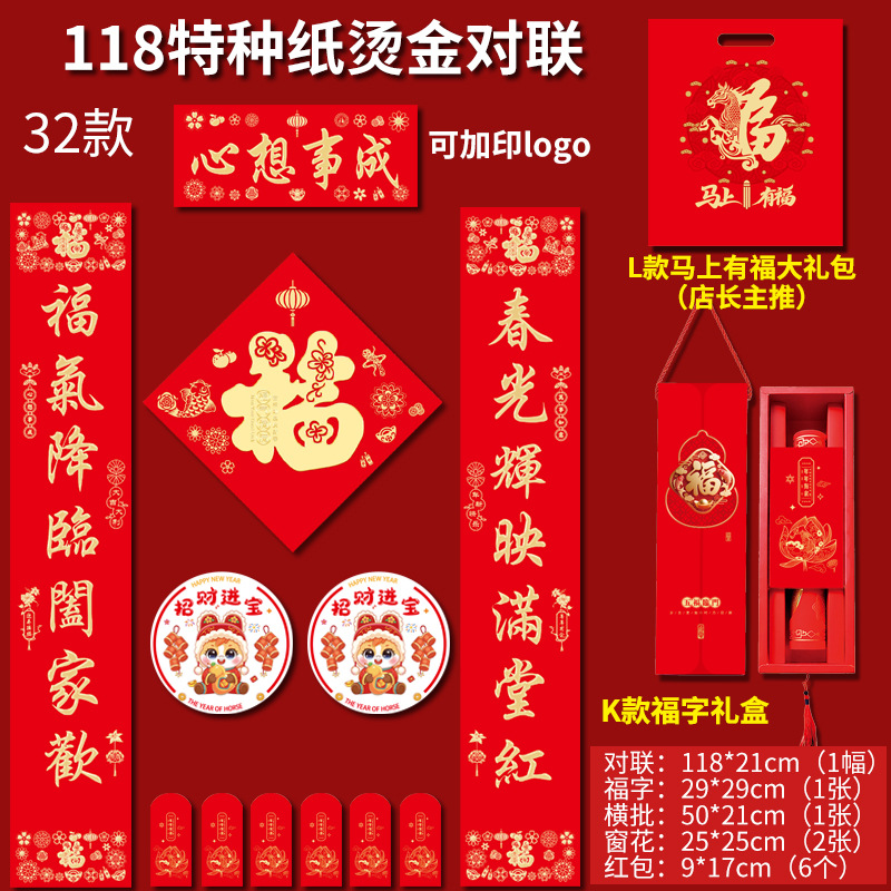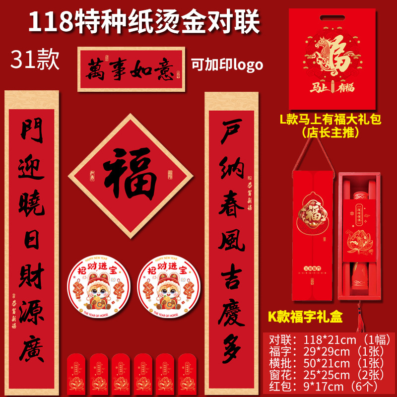 2026马年对联春联批货植绒高级感新年丝绸春联大礼包对联定制logo