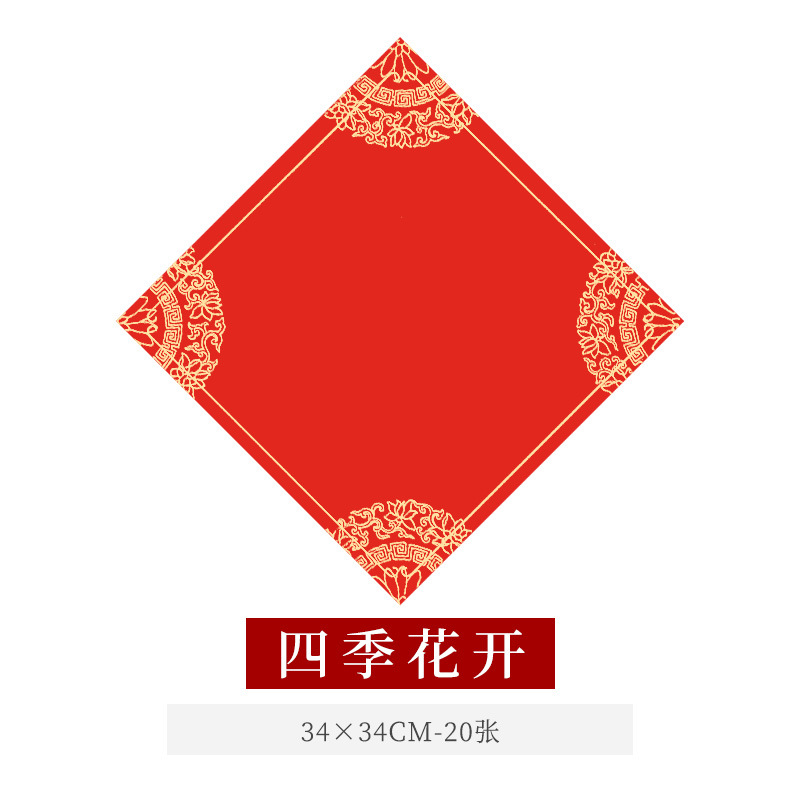万年红斗方宣纸半生熟蜡染对联春联空白手写福字斗方宣纸红纸批发