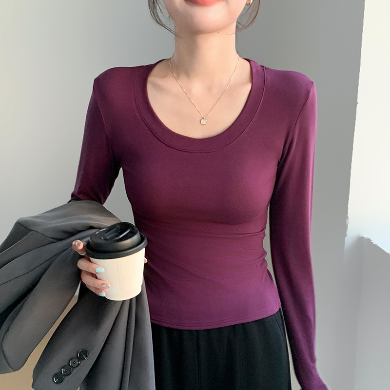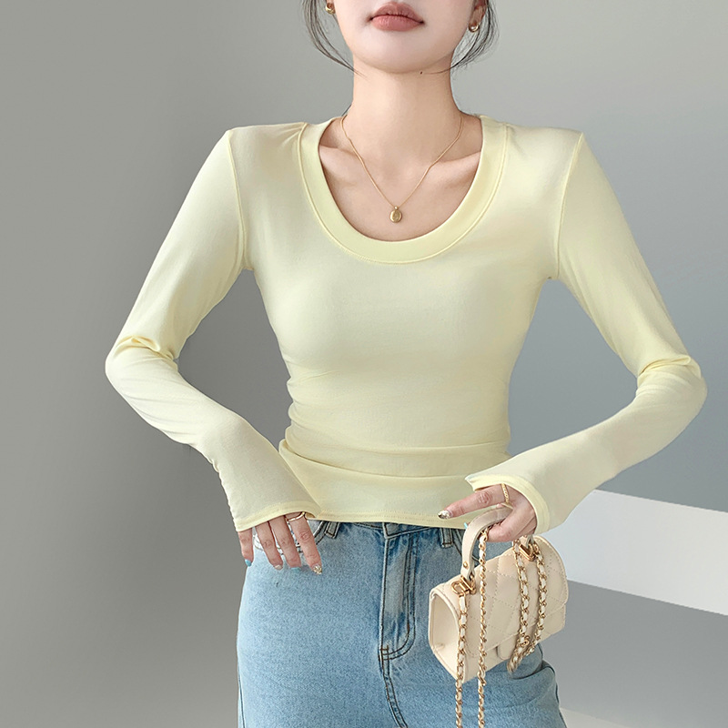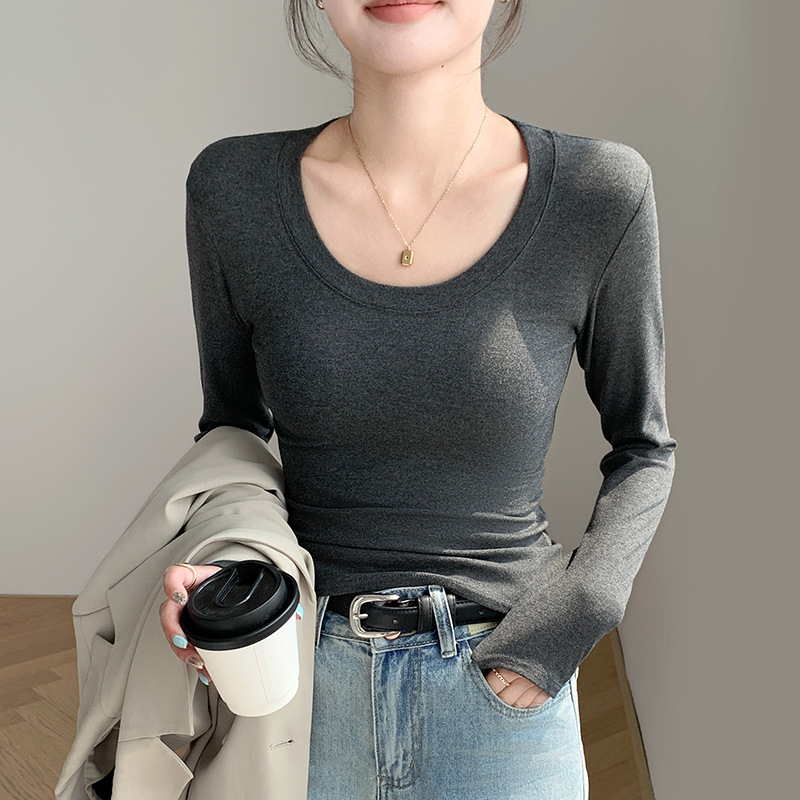 H256圆领打底衫女春秋冬款内搭外穿修身显瘦百搭纯色长袖T恤上衣