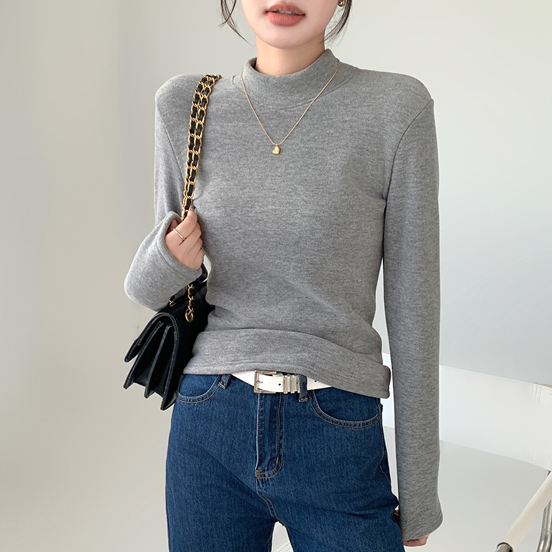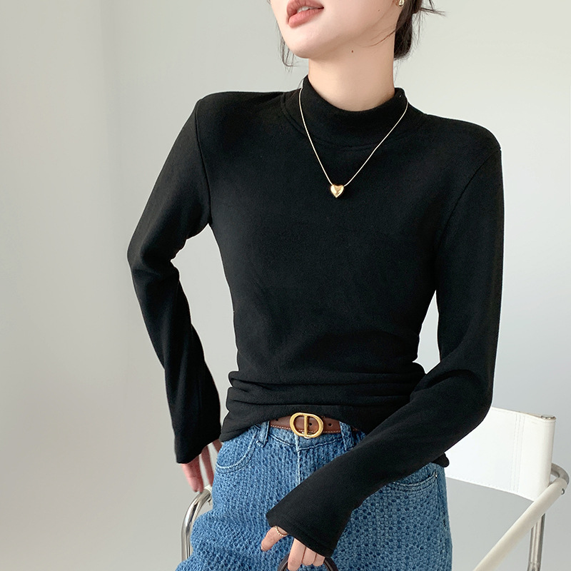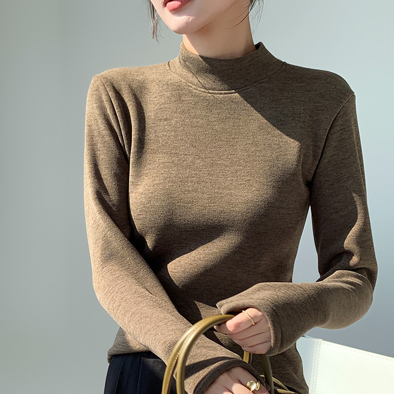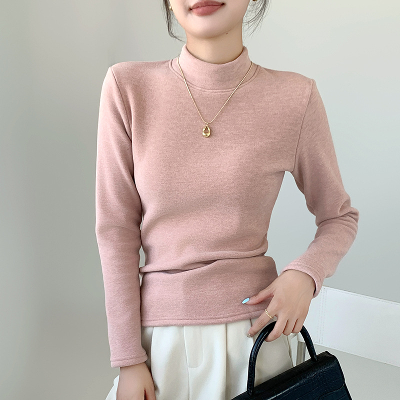 H252椰绒半高领打底衫女秋冬季内搭修身加绒加厚防风保暖长袖上衣