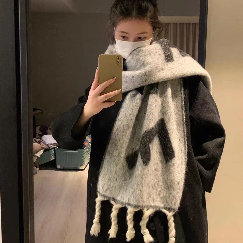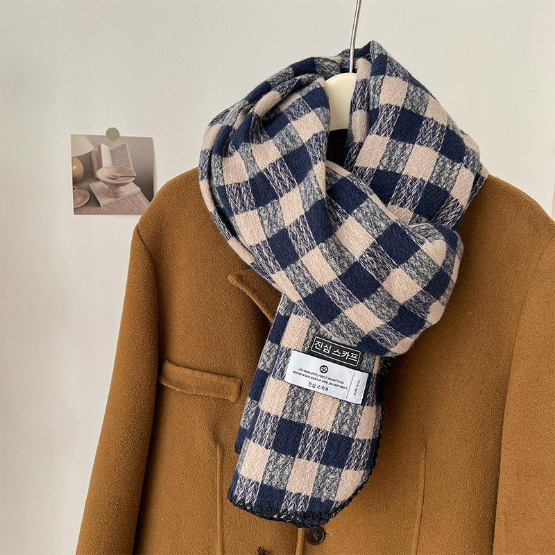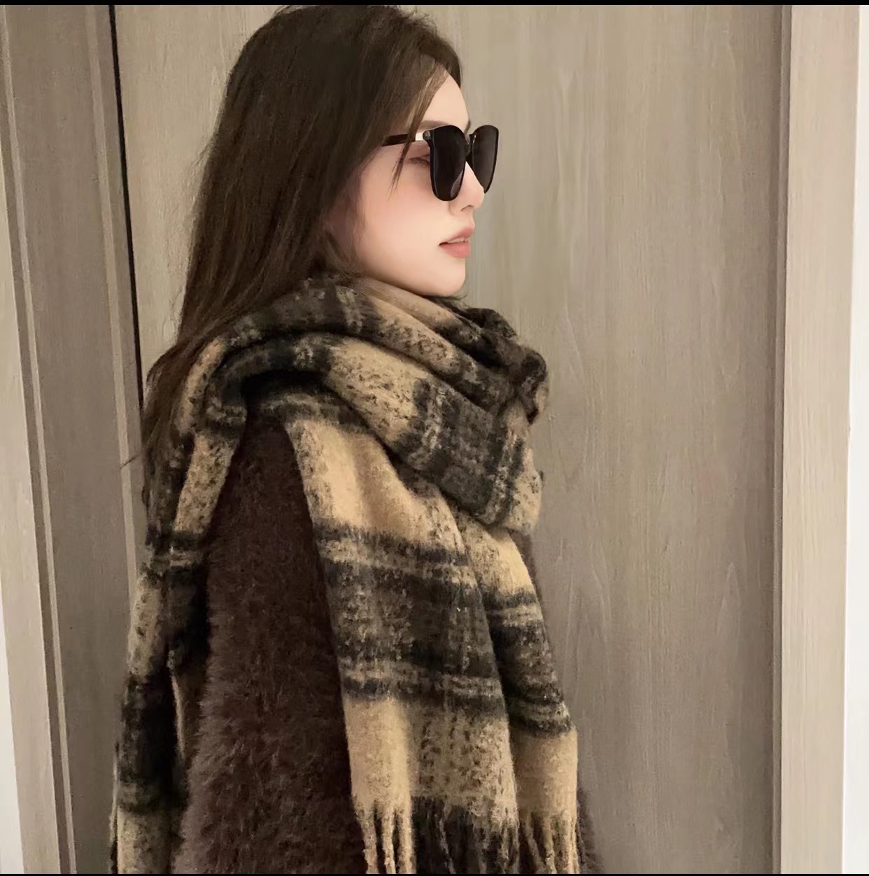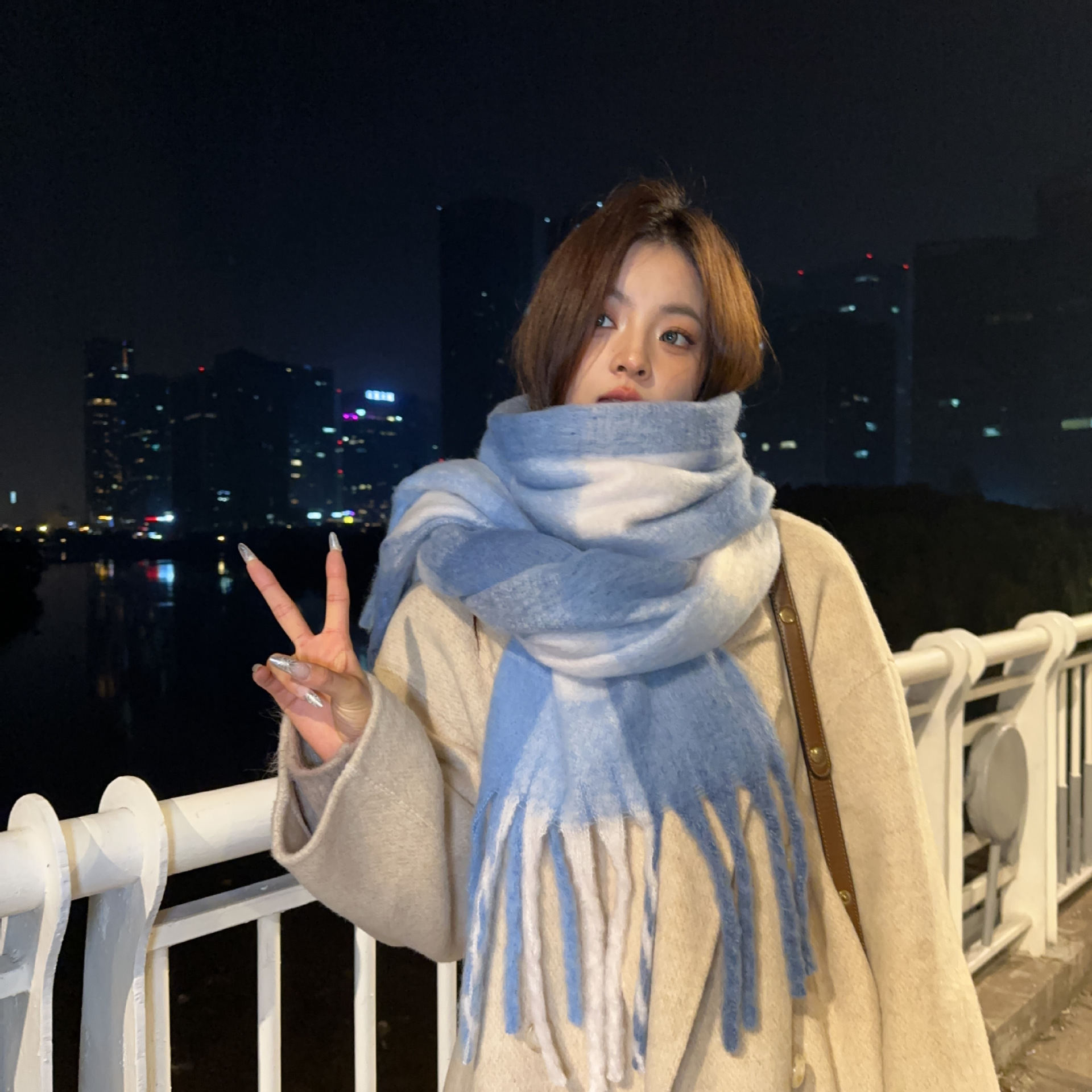 韩版彩虹格子仿羊绒围巾女秋冬季学生情侣马海毛保暖围脖长款披肩