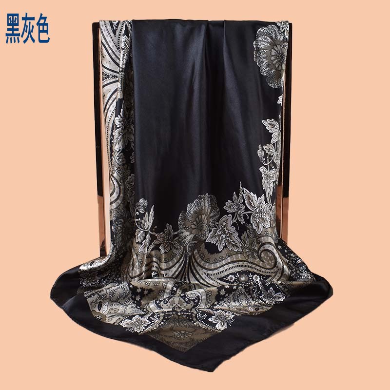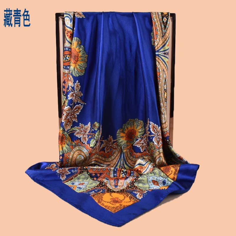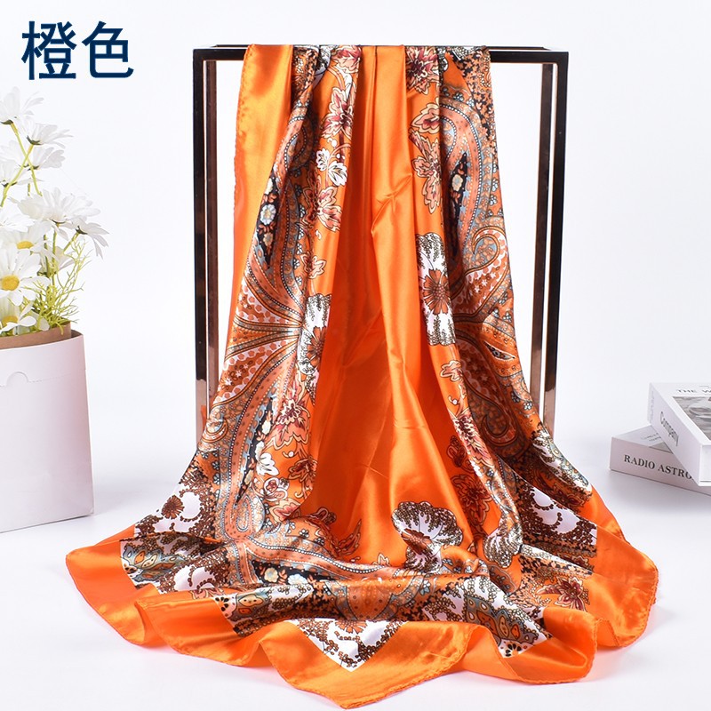春季新款百搭大腰果90大方巾丝巾批发 经典复古印花围巾scarf