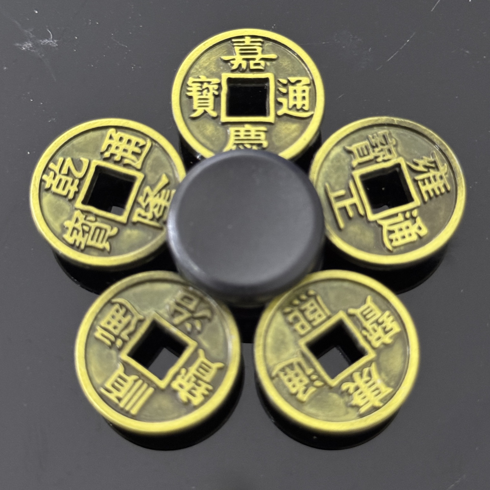 国潮陀螺 五帝赚赚钱小把件 铜钱陀螺 地摊 文创