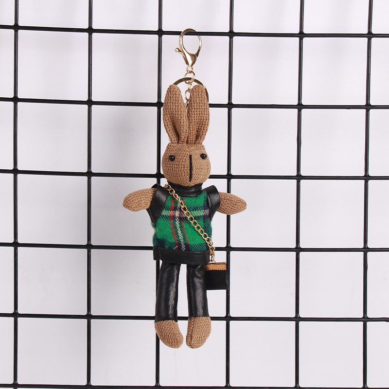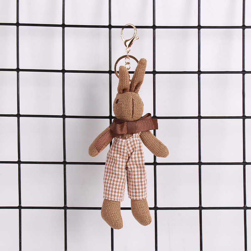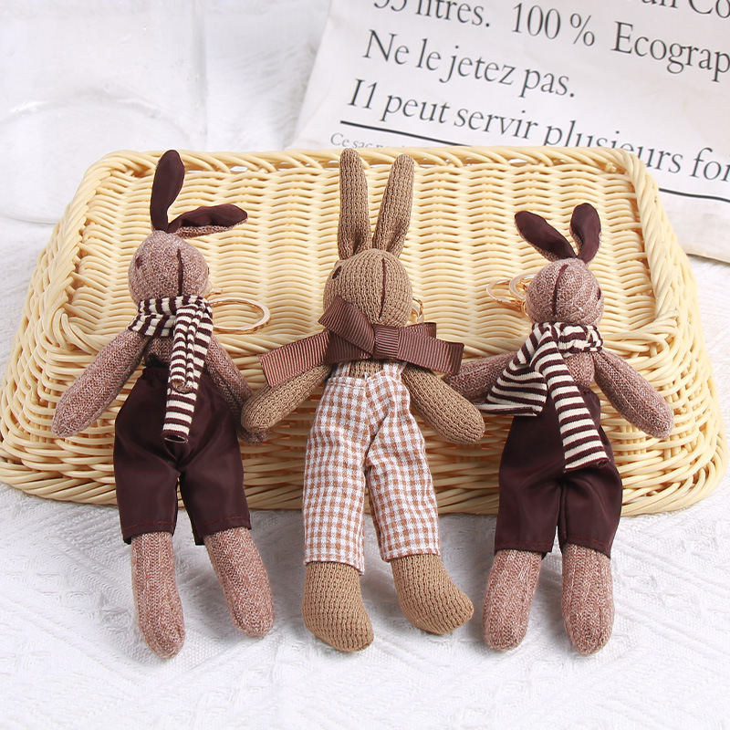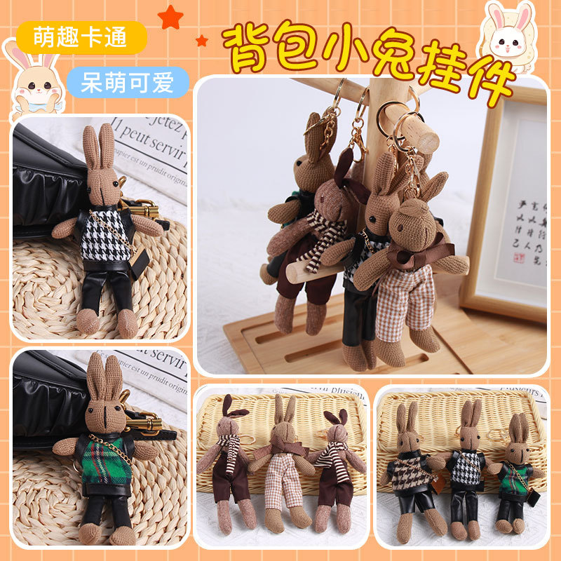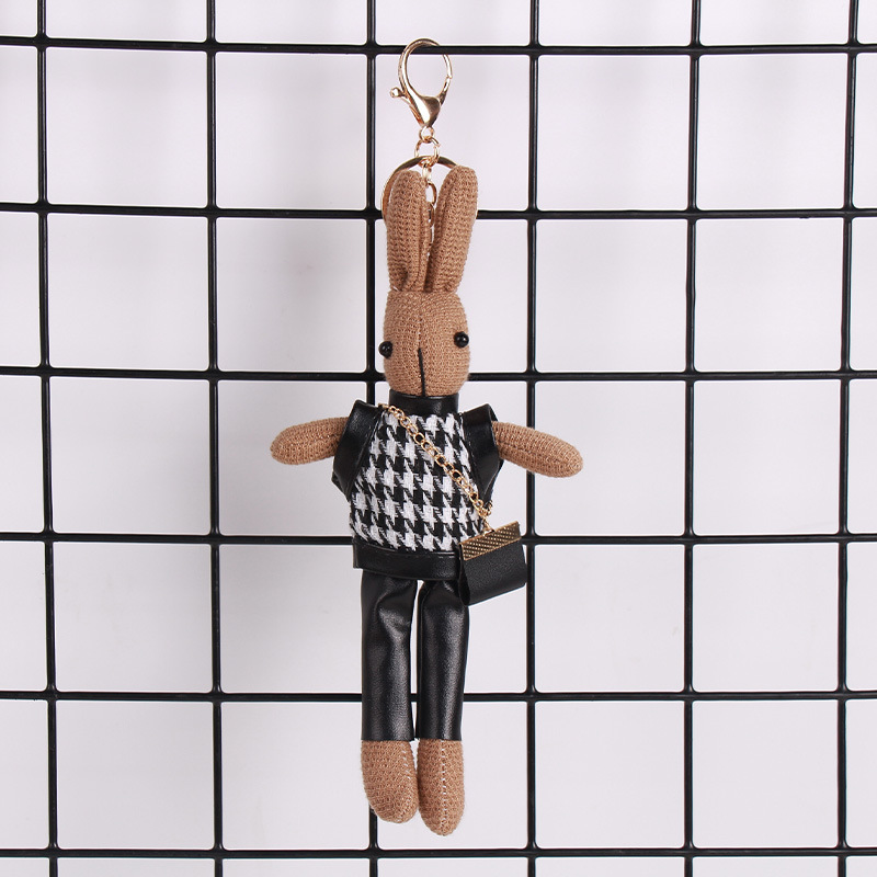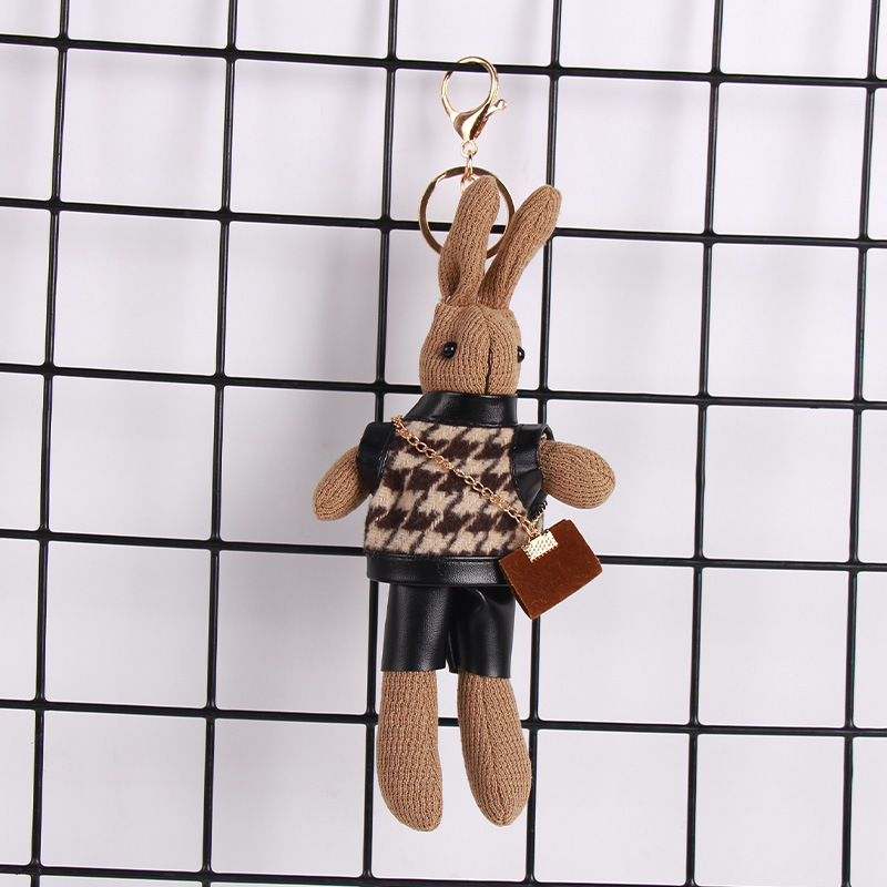 厂家批发千鸟格兔子可爱卡通公仔钥匙扣创意包包挂件围巾兔子挂饰