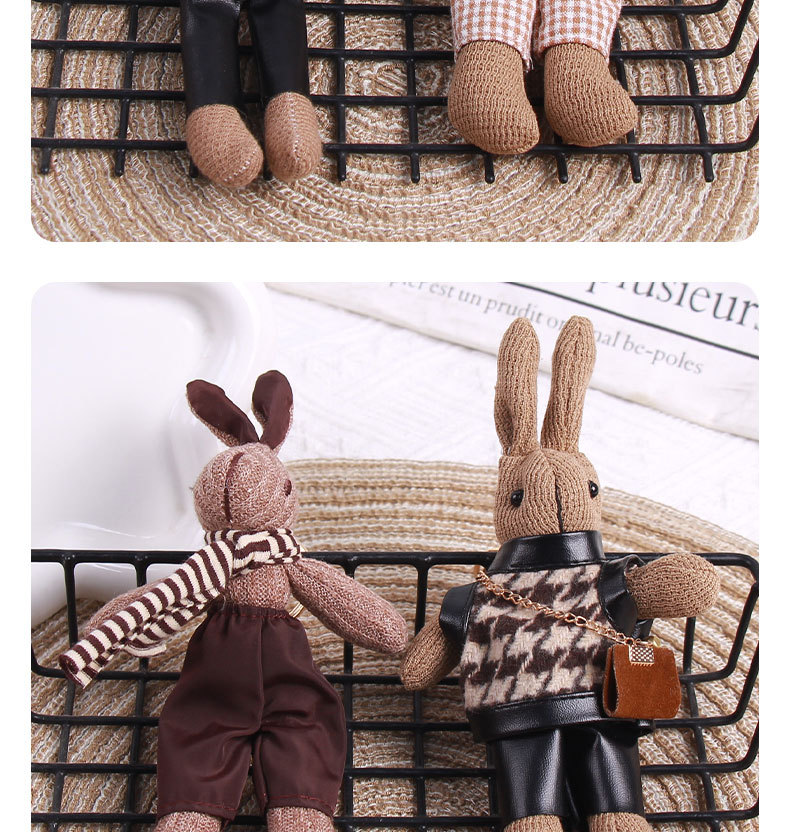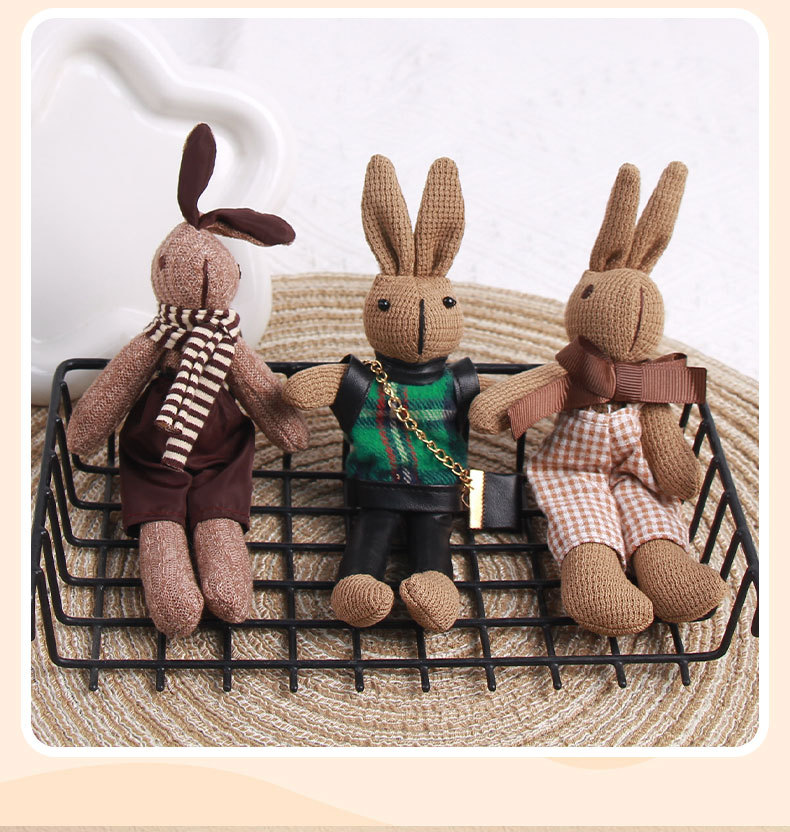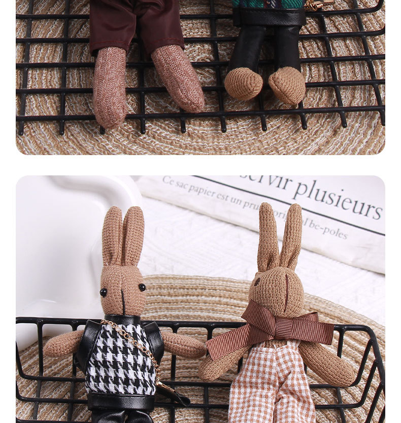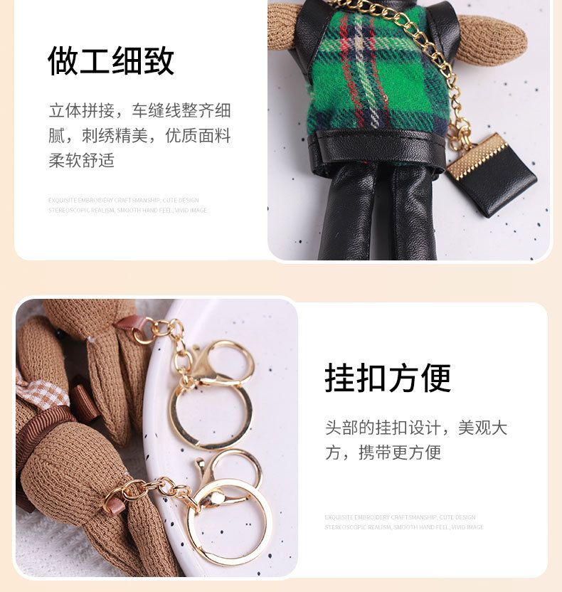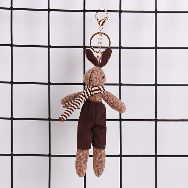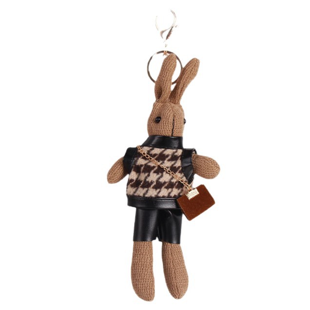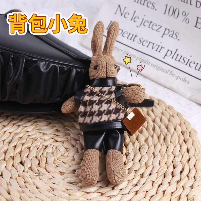 厂家批发千鸟格兔子可爱卡通公仔钥匙扣创意包包挂件围巾兔子挂饰