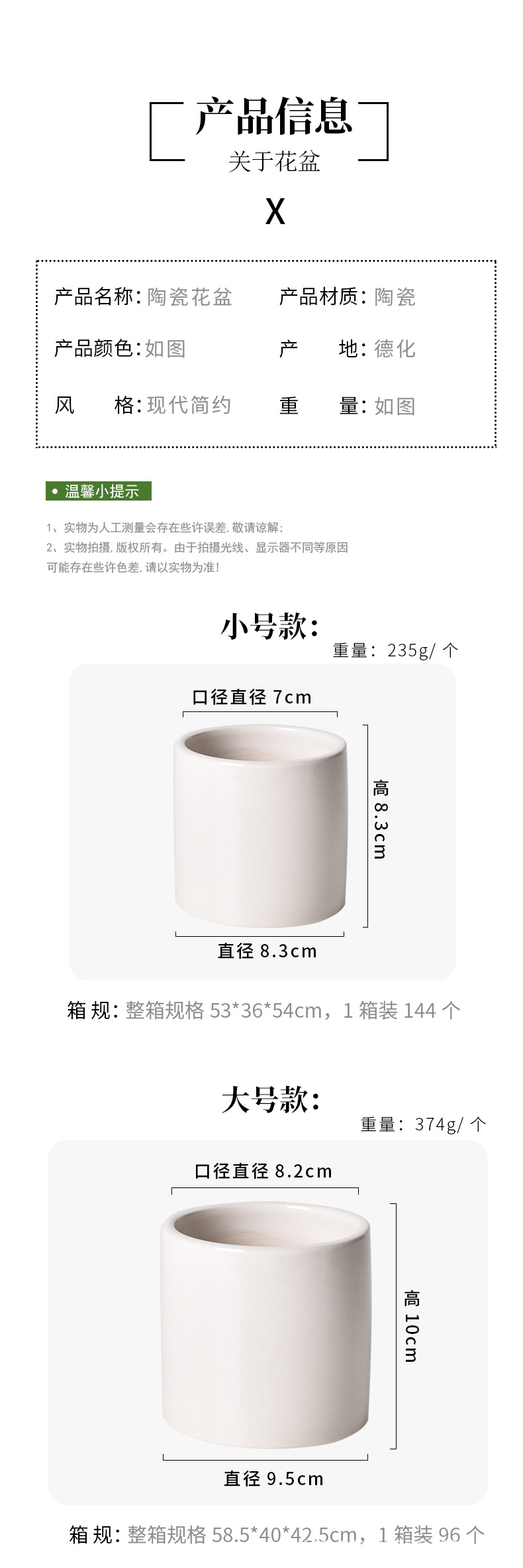 白瓷多肉花盆圆柱盆创意陶瓷家居园艺盆跨境出口白绿植陶瓷盆